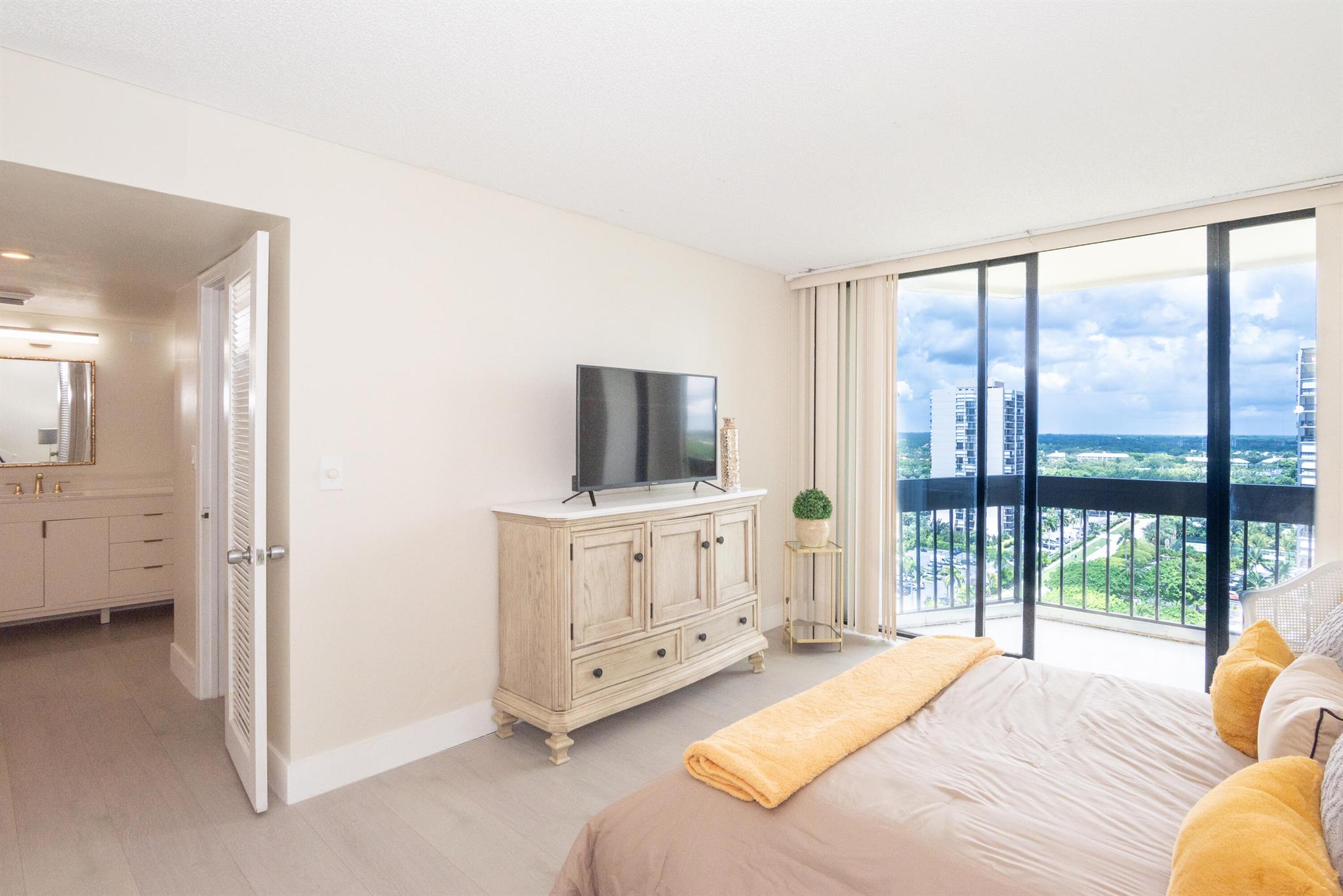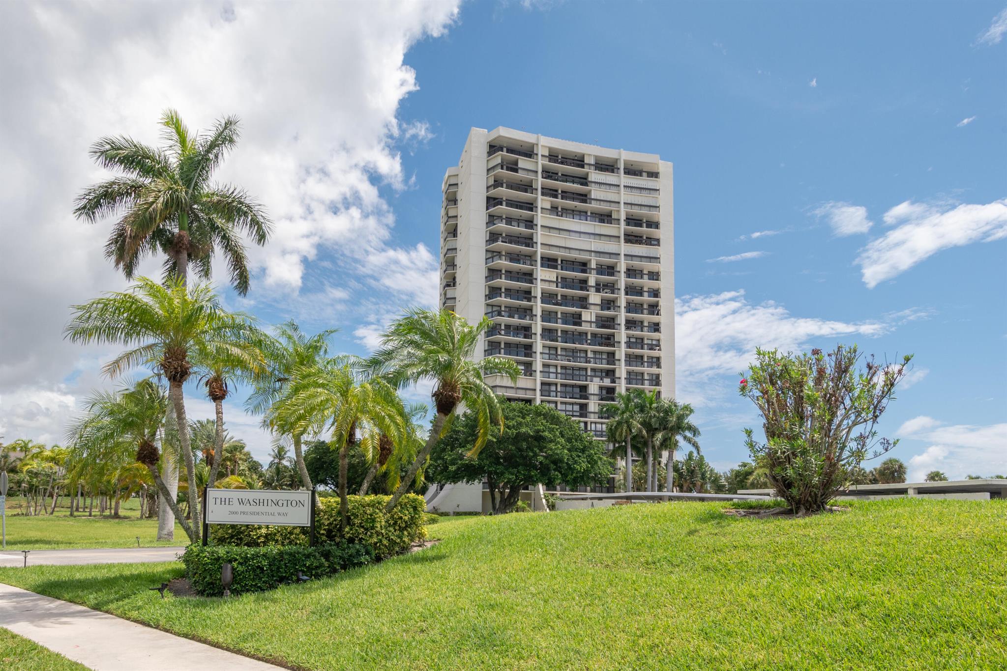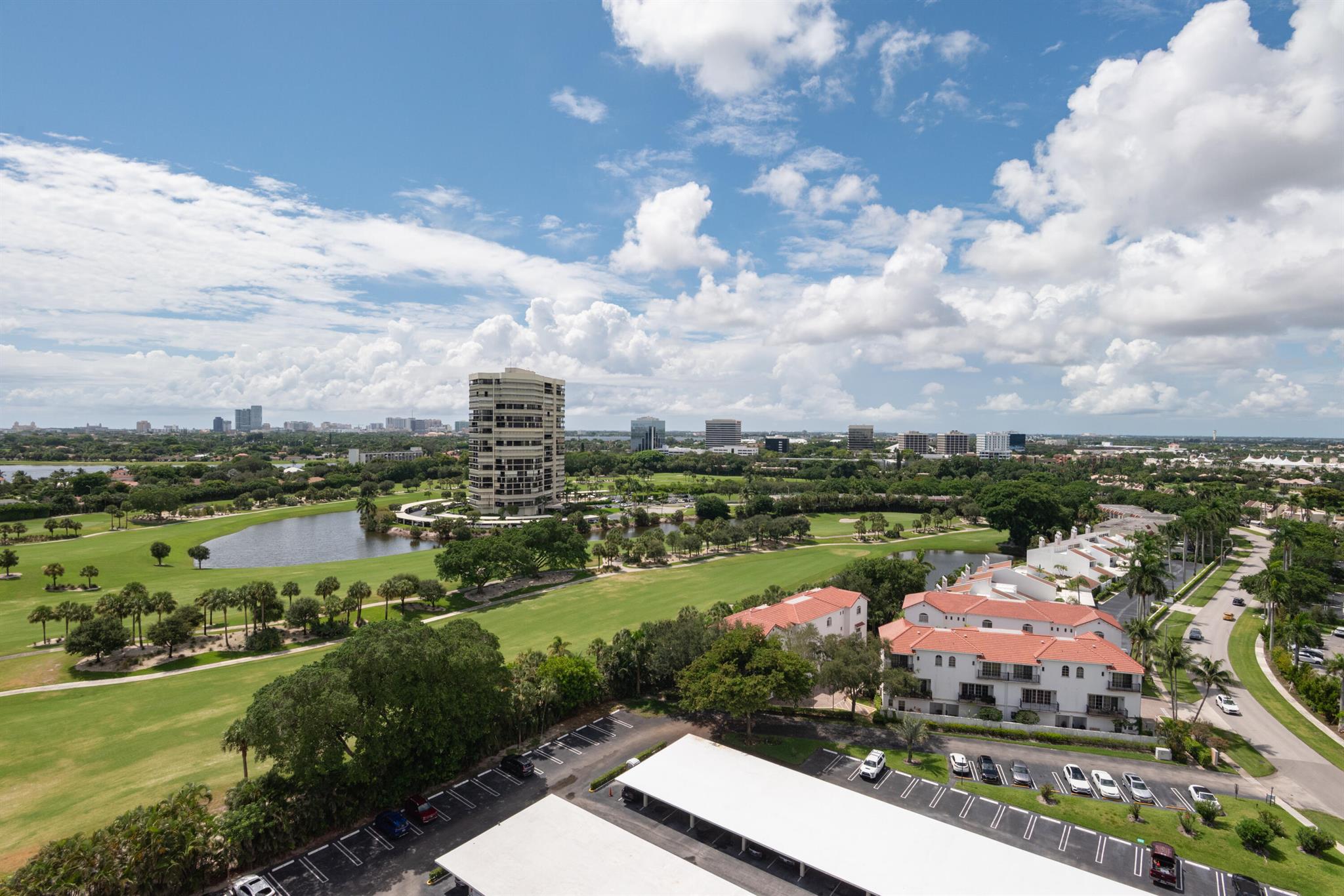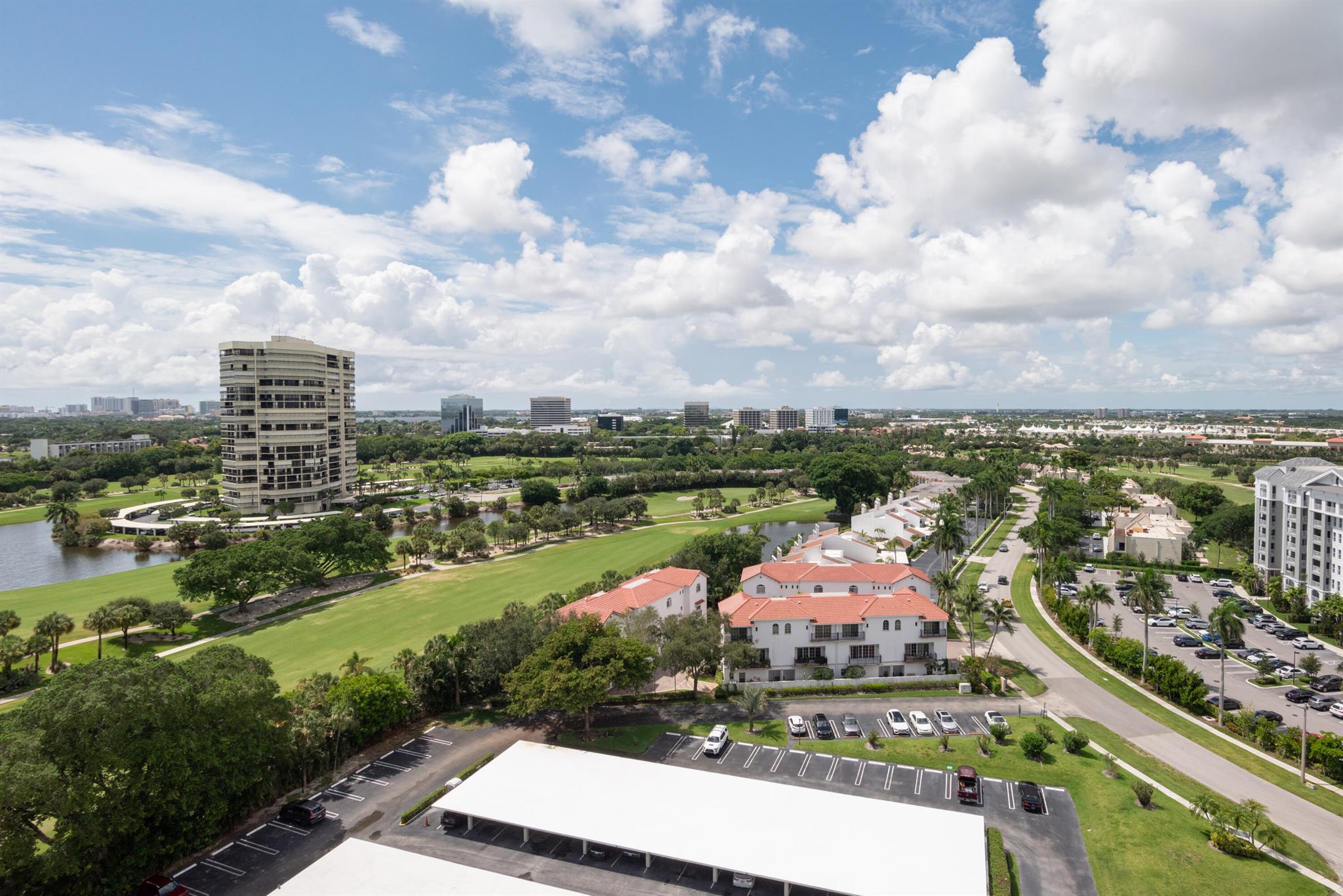 Enjoy the Magnificent panoramic views of the Golf Course in this beautiful open 2 bedroom 2 bath corner unit located in the prestigious gated community of Lands of the President. Views are great day and night as at night you'll get the beautiful lights from the city & Outlets. This condo is move in ready & has floor to ceiling sliding doors, hurricane shutters & has 2 balconies for plenty of outdoor living. Newer air conditioner, Granite counter tops, beautiful laminate flooring & freshly painted. Unit has 2 parking spaces 1 covered & 1 uncovered. Doorman building with manager on site in gated community. HOA fee Includes Cable, water, Fitness center, party room and beautiful pool. Great location near I-95, Tanger outlets, Beaches, Palm beach airport, City place & downtown West Palm Beach