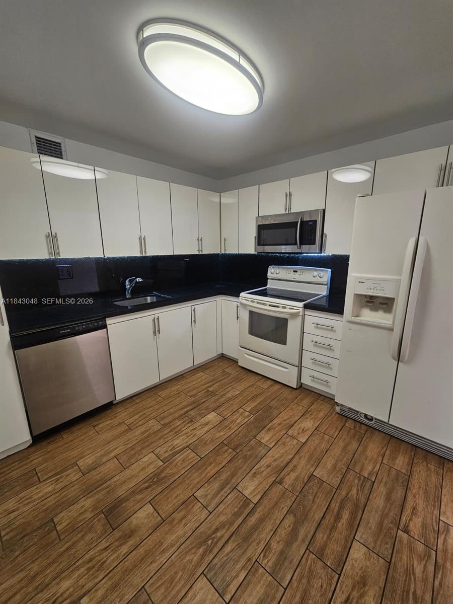 Beautiful 2/2 in desirable Biscayne Cove Clipper.Granite counters top, a lot of white gloss kitchen cabinets.Remodeled bathrooms. Tile similar to wood. Cover Parking assigned. The view is great!!. The building offers numerous amenities, including a bayfront pool, gym, meeting room, and additional features. Close to great shopping, good schools, and houses of worship.