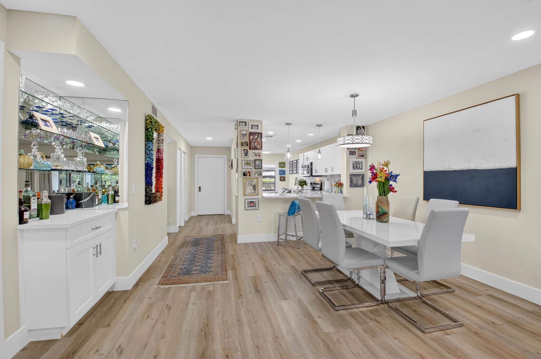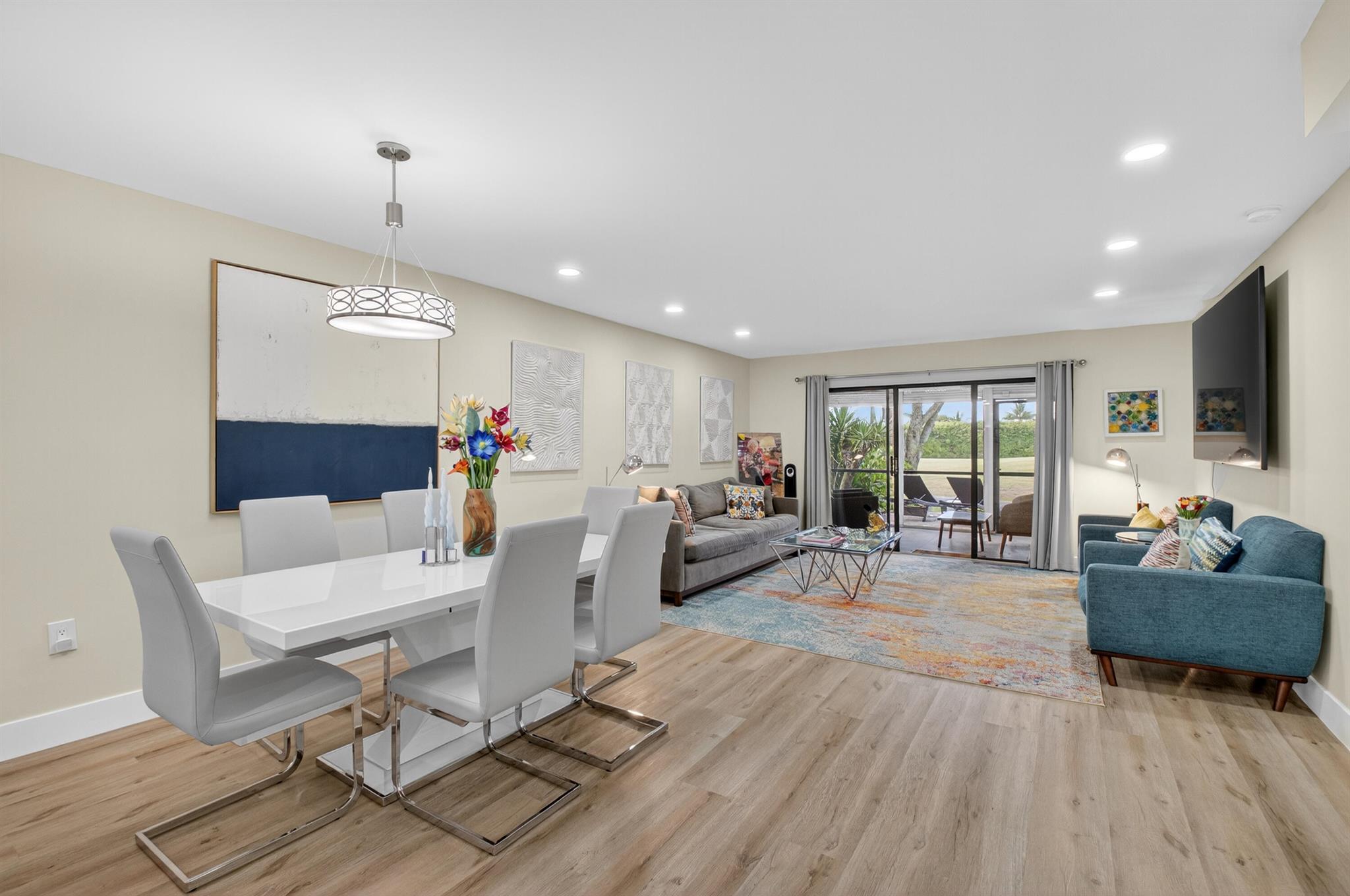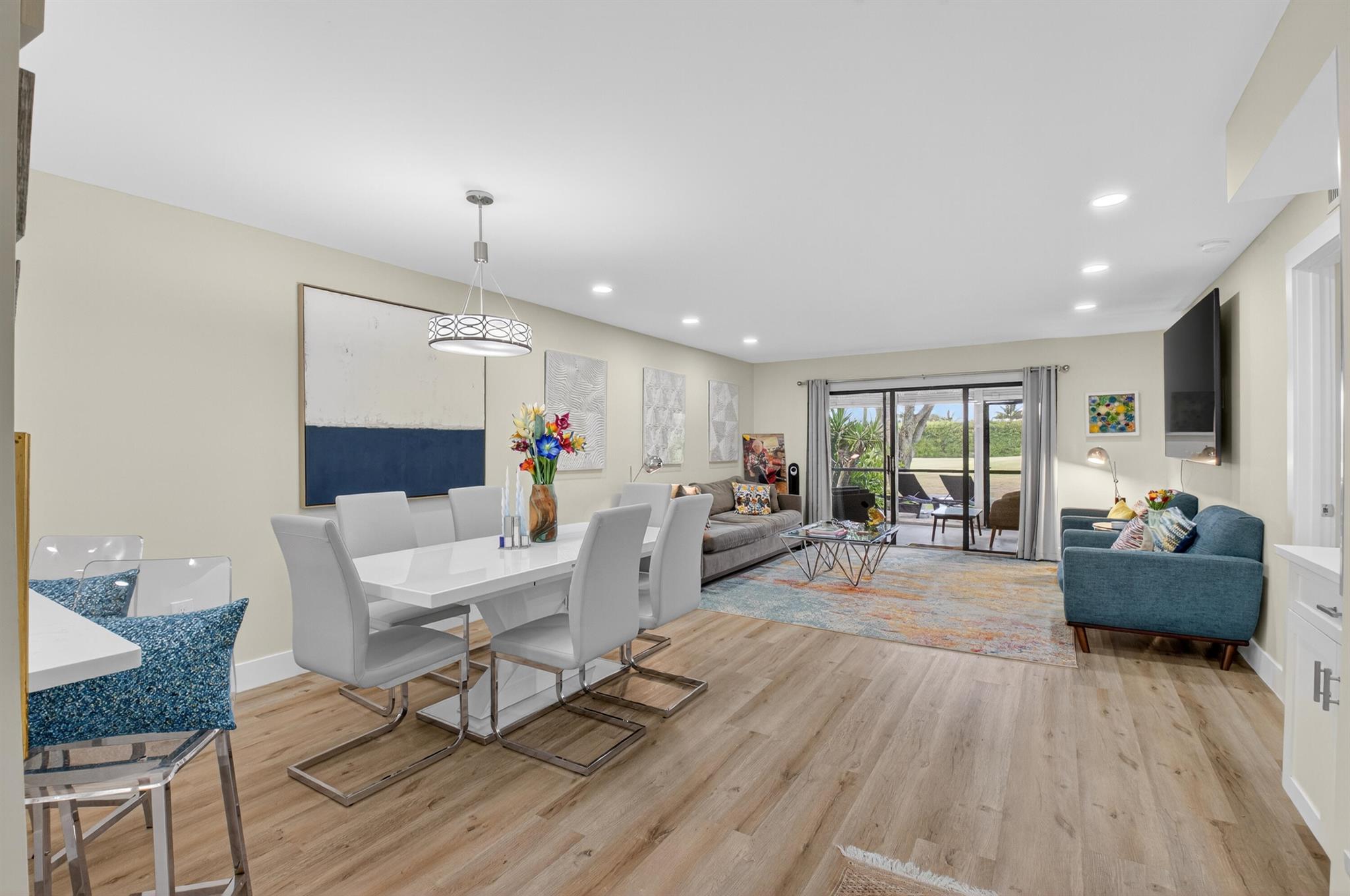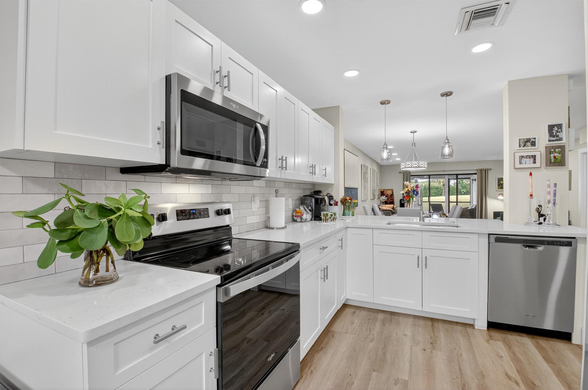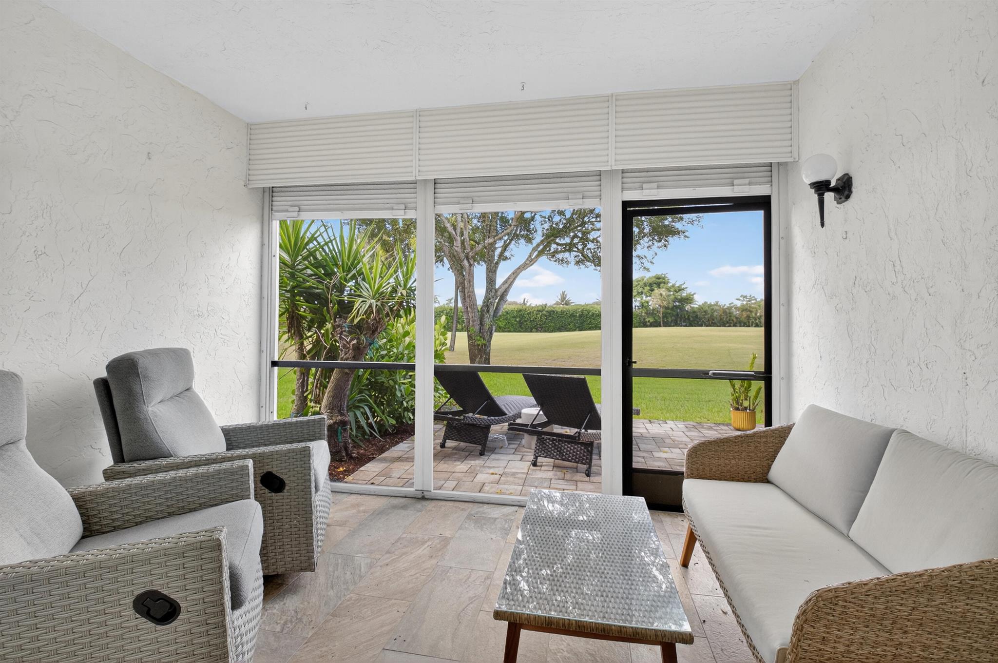 Discover this inviting TOTALLY RENOVATED 2-bedroom, 2-bath condo located in the desirable Hunters Run Country Club. Open Floor Plan, Quartz Counters, Stainless Appliances. LED Lighting Throughout. This light-filled residence offers an open living and dining area, a spacious primary suite, and a screened-in balcony with serene golf and lake views. Custom Pavered Patio For Outdoor Entertaining. Perfect for year-round living or a seasonal retreat, this home provides access to world-class amenities including three championship golf courses, tennis and pickleball courts, resort-style pools, fitness center, spa, and multiple dining venues. Experience the best of South Florida country club living in this beautifully maintained community.