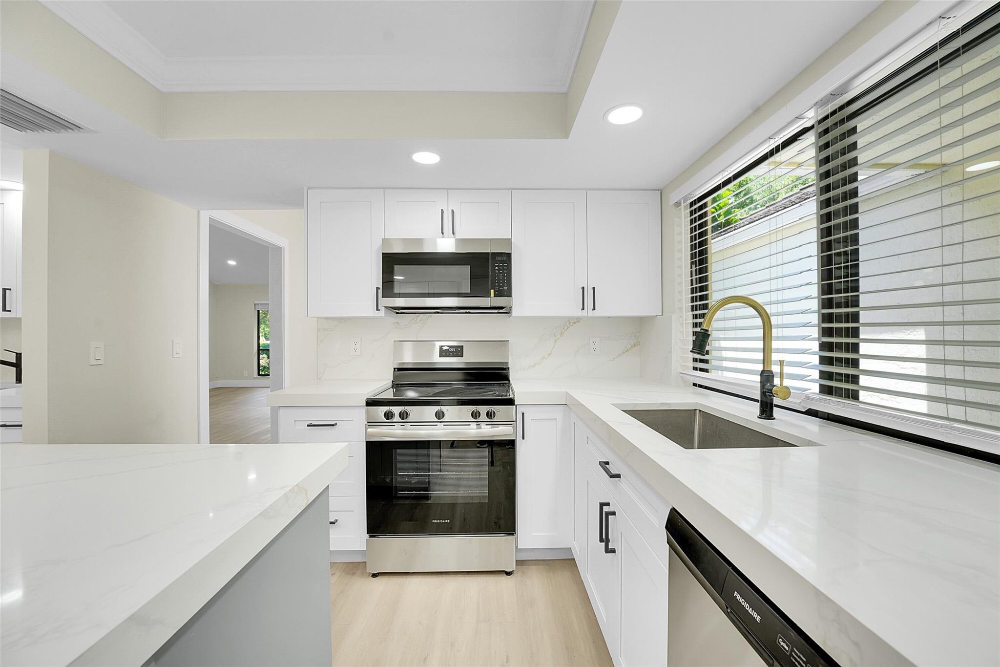 An exceptionally remodeled 2 bedroom 2 bathroom villa in the coveted Twelve Oaks community. The home has over 1900 sq ft of living space featuring luxury vinyl flooring throughout, renovated kitchen with high-end appliances, renovated bathrooms, vaulted living room and a 1 car garage. Outdoor living is abundant with an open back patio and walk to the docks less than 2 minutes. Comprehensive HOA that includes insurance and roof. Just steps away from onsite marina with multiple pools, a clubhouse and tennis/pickleball courts...it's the perfect Florida oasis. Must see to appreciate!