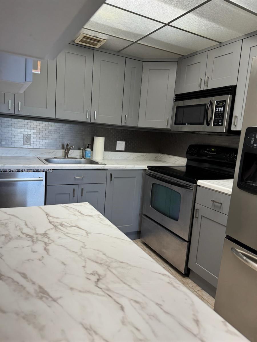 Amazing first floor 2/2 condo in Century Village! Your parking space is right in front of this beautiful unit. It is truly in move-in condition and has just been freshly painted. The kitchen has been updated with newer stainless steel appliances, cabinets, and countertops. The AC is only one-year new and still under warranty. There is ceramic tile in all high traffic areas and brand new carpet in the living room and both bedrooms. The second bathroom has been updated, and the master bathroom and bedroom have wide doors that can accommodate a wheelchair. The enclosed back patio overlooks a peaceful lake, and the master bedroom has a walk-in closet. It is close to the main entrance, the multi-million $ clubhouse, on-site pharmacy, and place of worship. **EZ show -- click Show Assist**