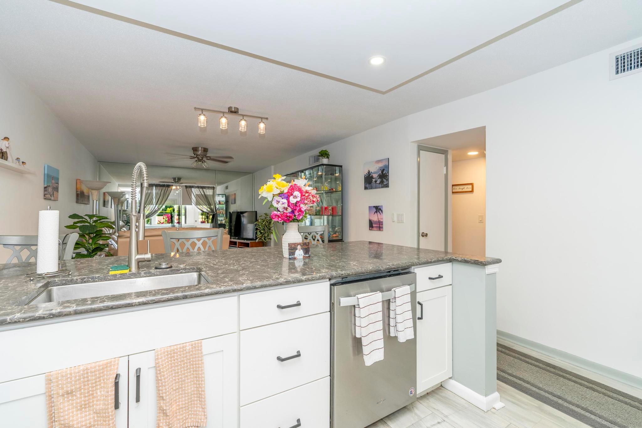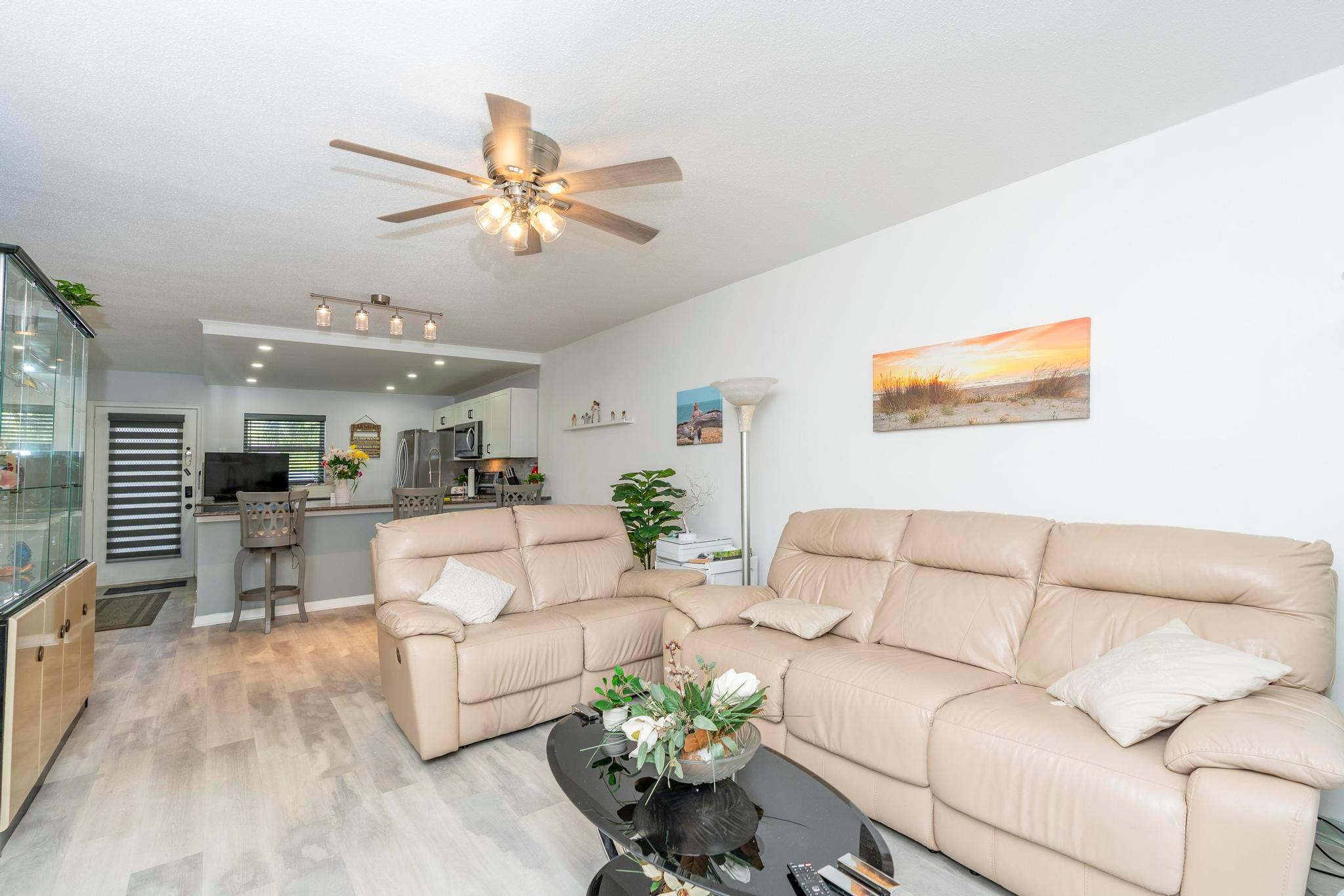COMPLETELY UPDATED, TURNKEY 55+, 2/2 condo with Florida Room. Renovated top to bottom in 2024--including new electric & panel--HVAC & water heater in 2025! ALllNew Floors throughout this open floor plan with adjustable LED kitchen lighting, new stainless steel appliances, and a sleek, contemporary design.A bright Florida room with built in storage, opens to a private, beautifully manicured, back patio. Relax in the primary suite with a walk-in shower and Adjustable King size bed. Rare unit with in-unit laundry, and easy access with an assigned spot right in front of the unit. HOA covers everything but electric.Offered fully turnkey, this home is move-in ready with every detail thoughtfully curated. Seconds from 95, and 5 minutes from the beach and downtown. All milestones completed.