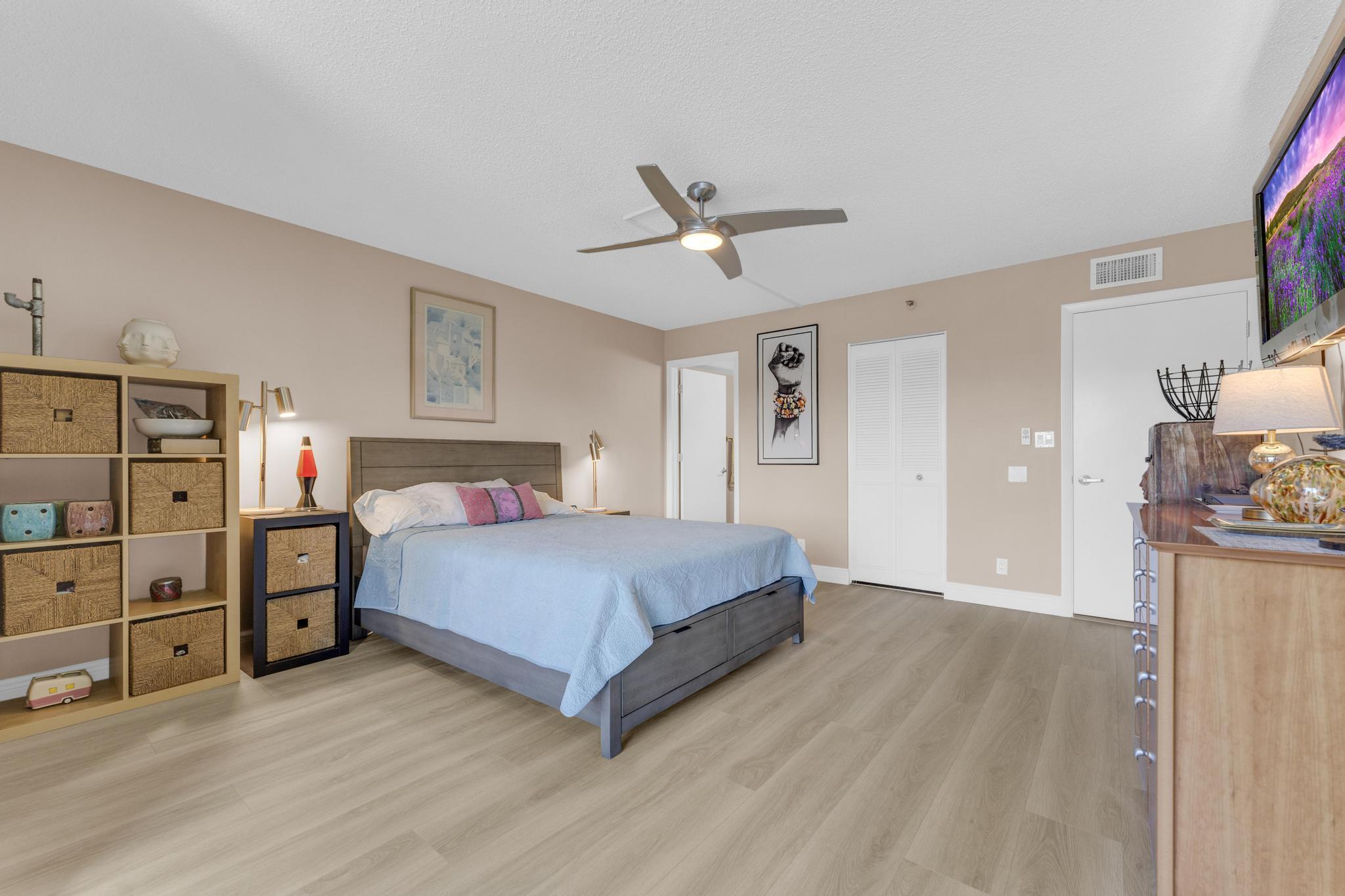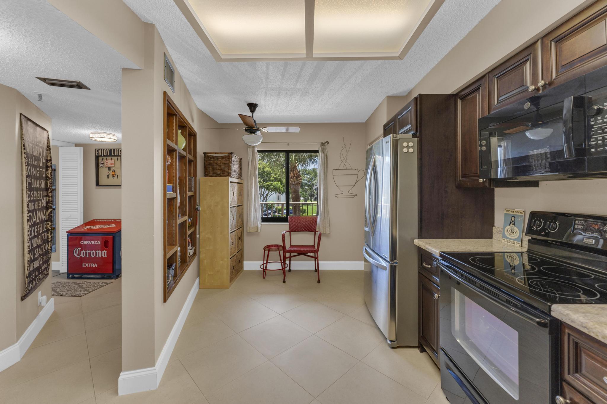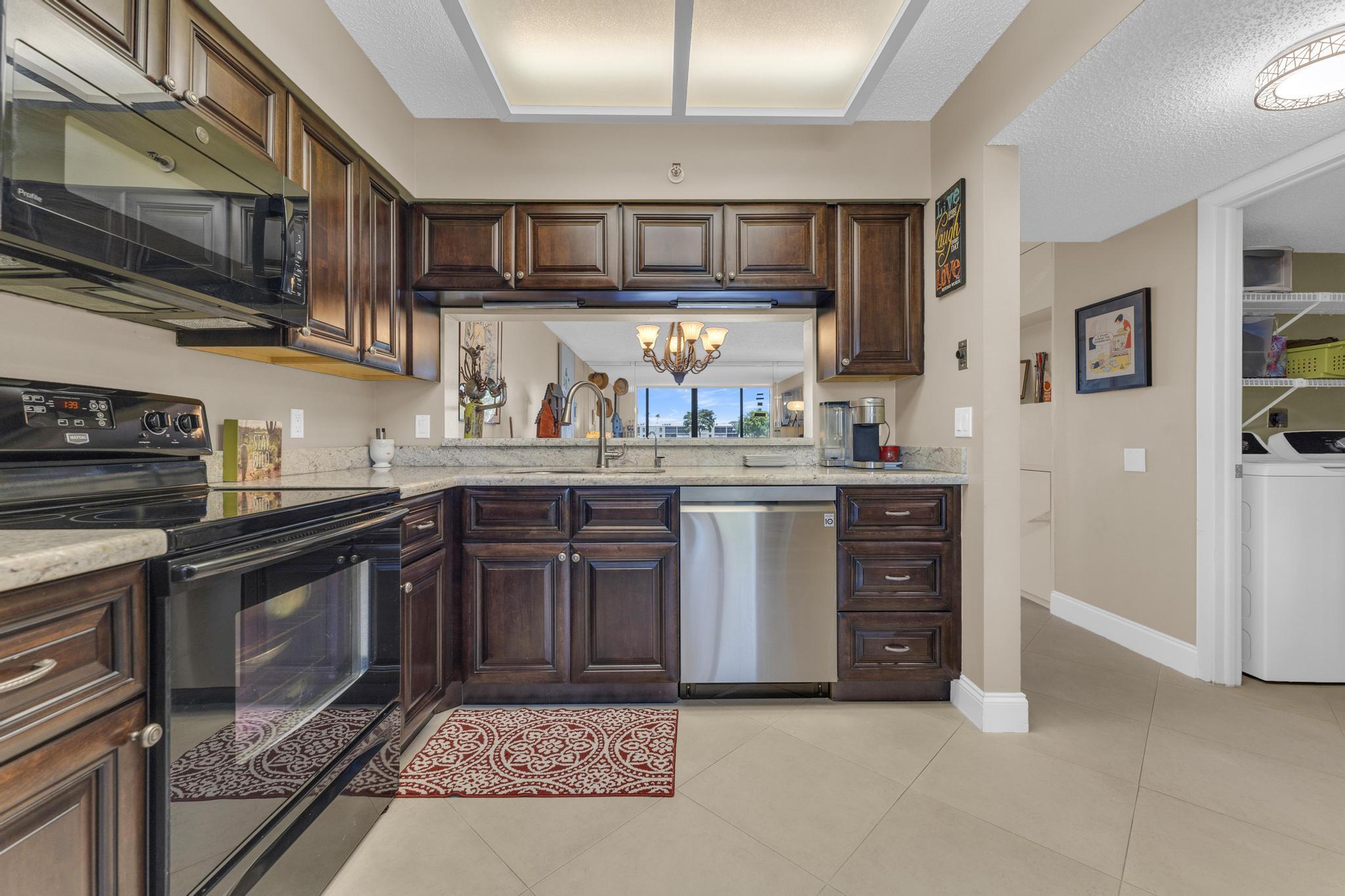 Beautiful condo PRICE DROP TO SELL!!! This is the Buckingham model. Largest in the community. Stunning, updated unit in mint condition. Direct center lake view. Warm and inviting colors. Shows like a model. Freshly painted! HURRICANE IMPACT windows and sliding doors The balcony has been totally opened to be a part of the living area. Sliding doors are gone!!! Large lovely diagonal rectified tile in the living area. High end vinyl flooring through the bedrooms. Beautifully renovated eat-in kitchen w/ high end wood cabinetry and granite countertops. Open and bright living, dining area w/ wet bar. X-large main bedroom w/ sitting area, 2 large walk-in closets, and tastefully updated bathroom. Large guest bedroom. Updated bathroom w/ shower and double sink vanity. Separate laundryroom.
