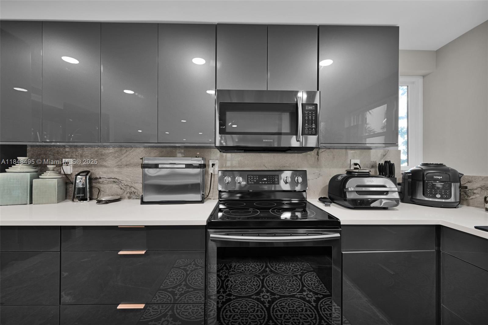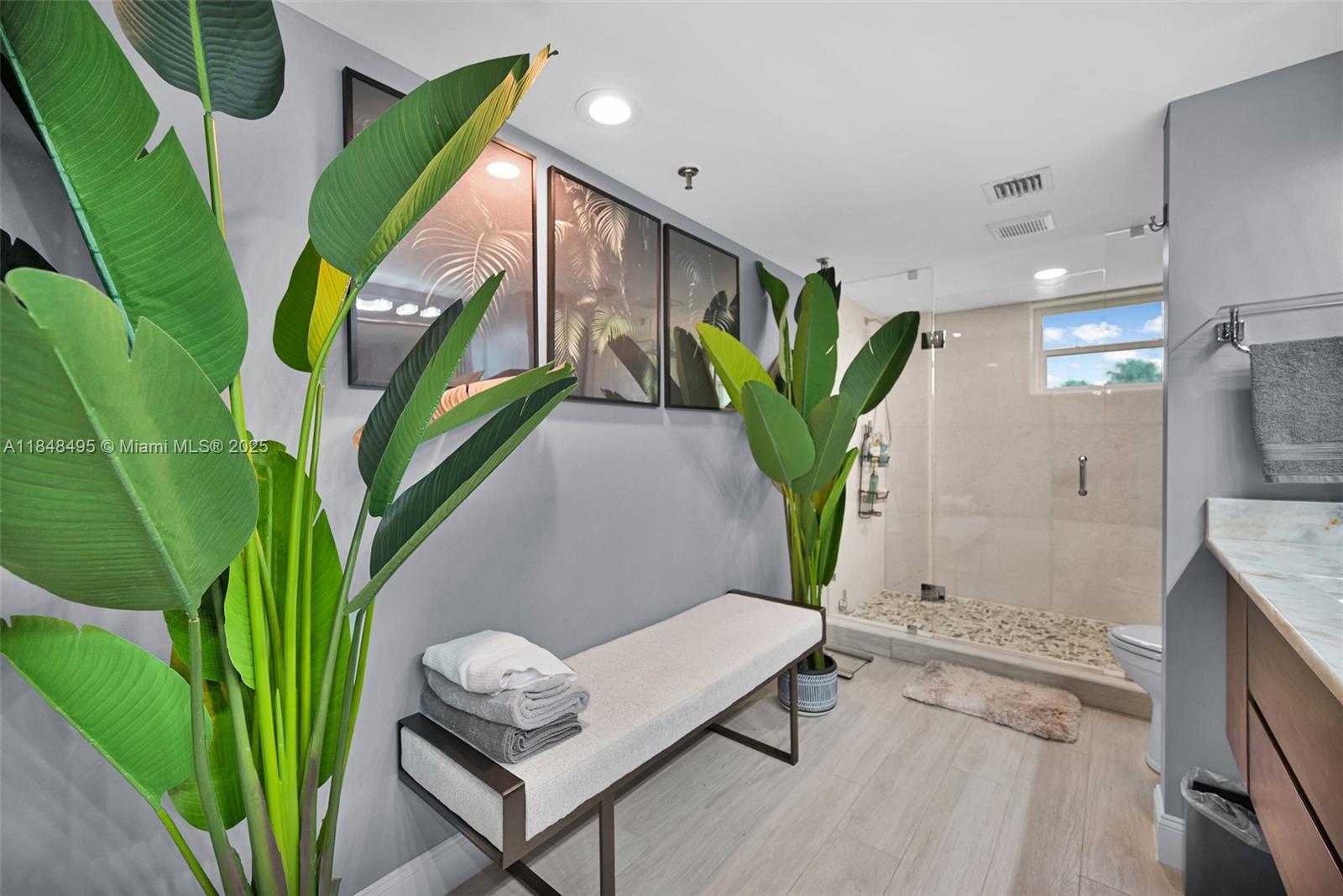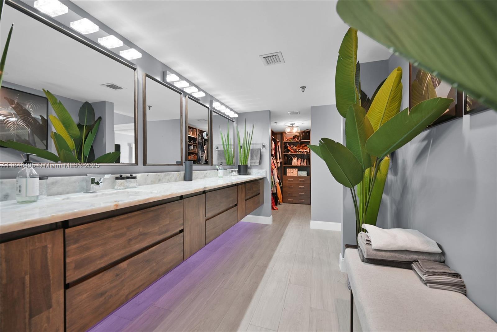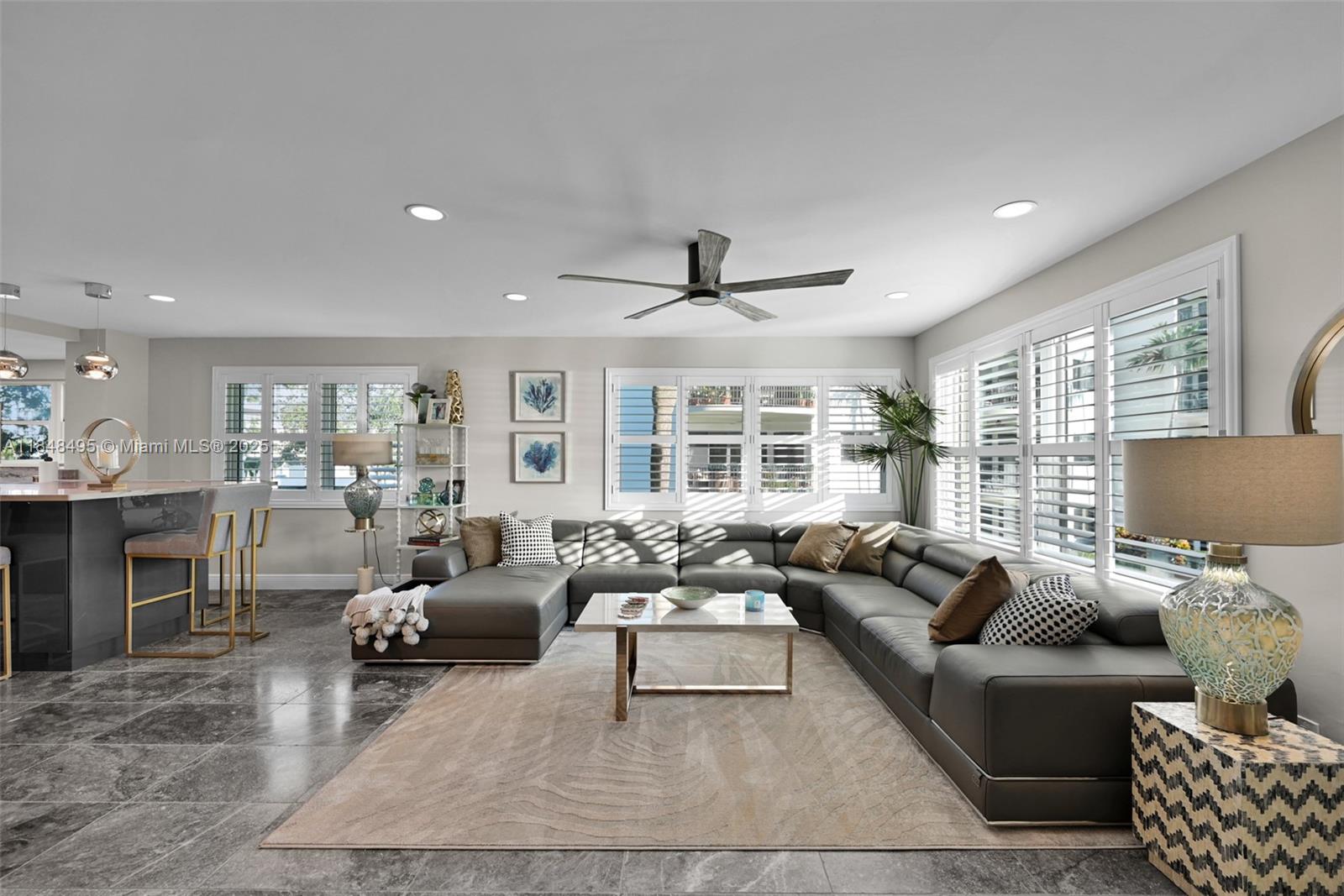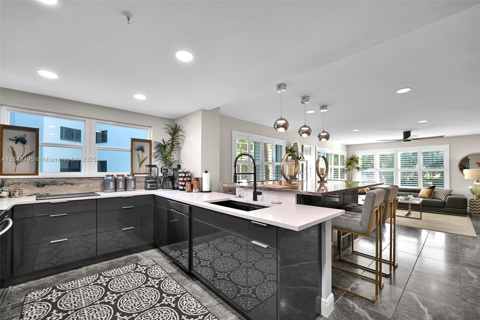 This beautifully remodeled 3-bedroom, 2-bathroom condo offers an exquisite blend of luxury and comfort. The open-concept floor plan creates a seamless flow throughout the home, featuring a stunning waterfall wet bar and a large wine fridge, perfect for both relaxation and entertaining. The kitchen is a true highlight, offering ample cabinetry and a generous space designed for cooking and hosting with ease.Large impact windows, The master bedroom is a serene retreat, complete with spacious his and hers walk-in closets, a dual sink vanity, a luxurious shower with dual showerheads, and a cozy sit-down area. The additional bedrooms are equally impressive, offering ample space and sizable closets.The unit is fully furnished and move-in ready—just bring your suitcase and settle in!