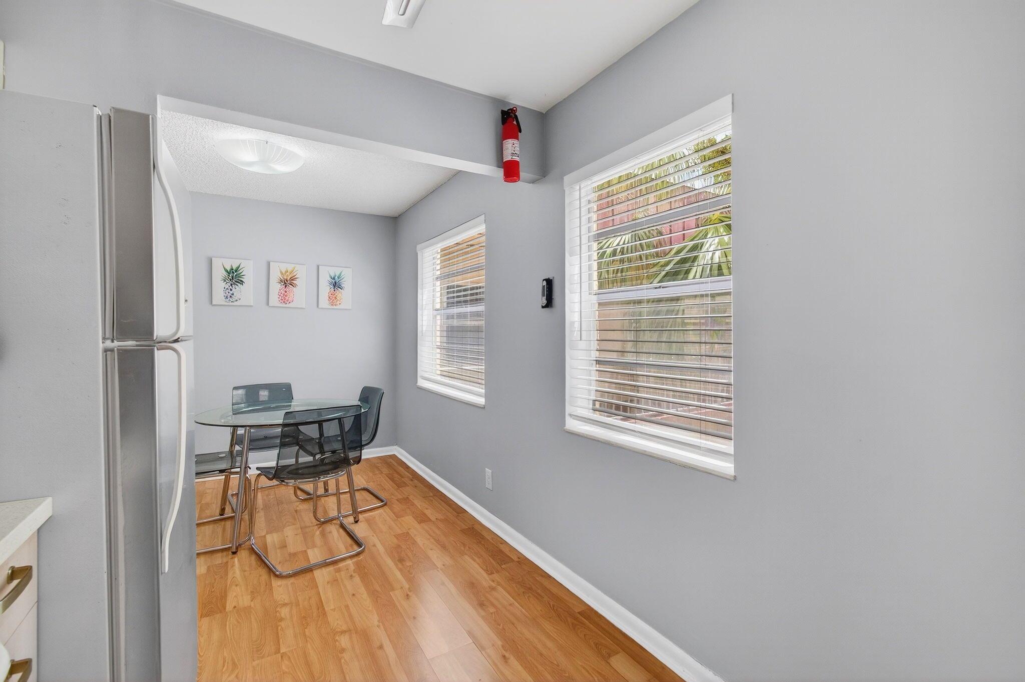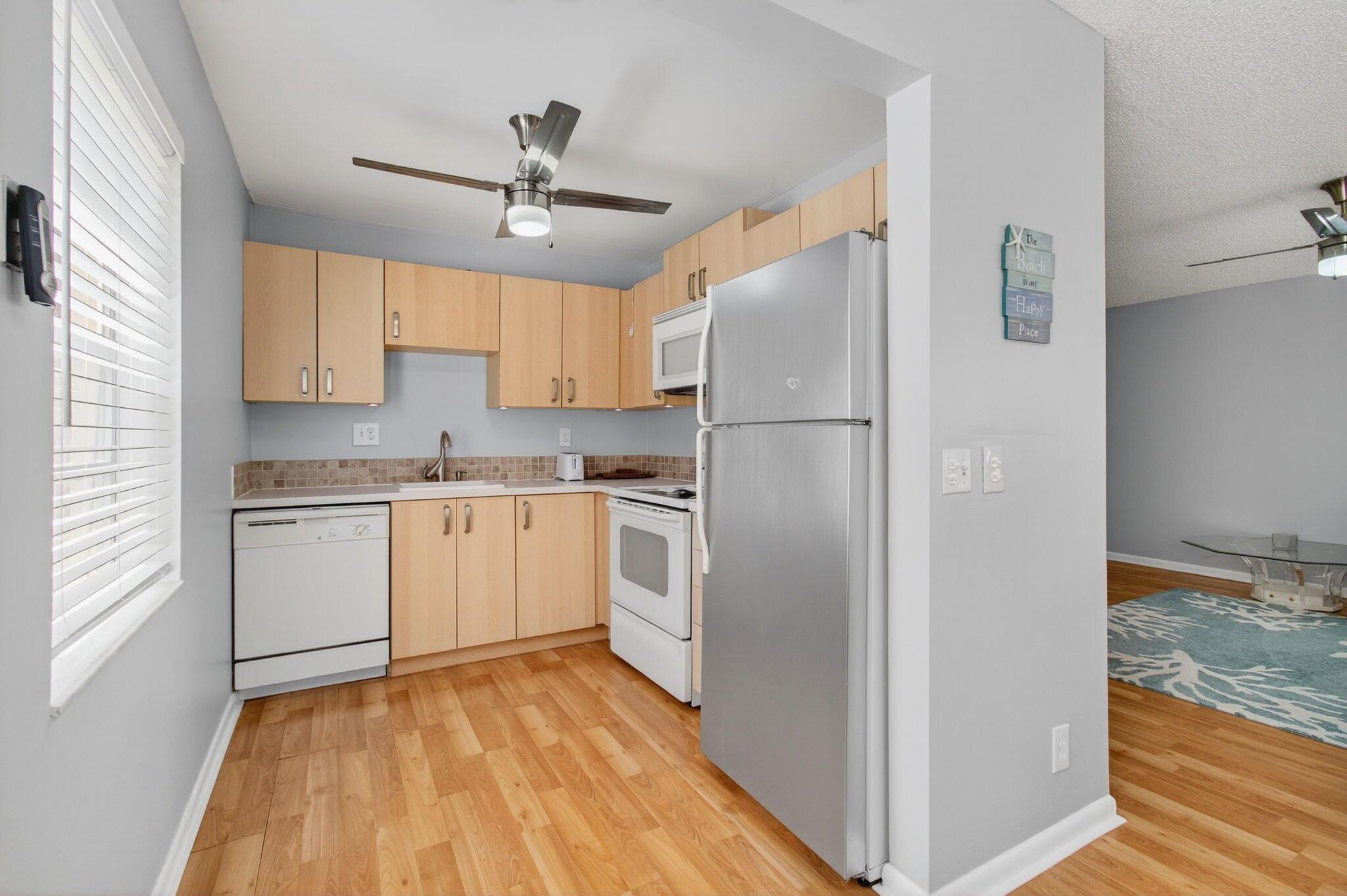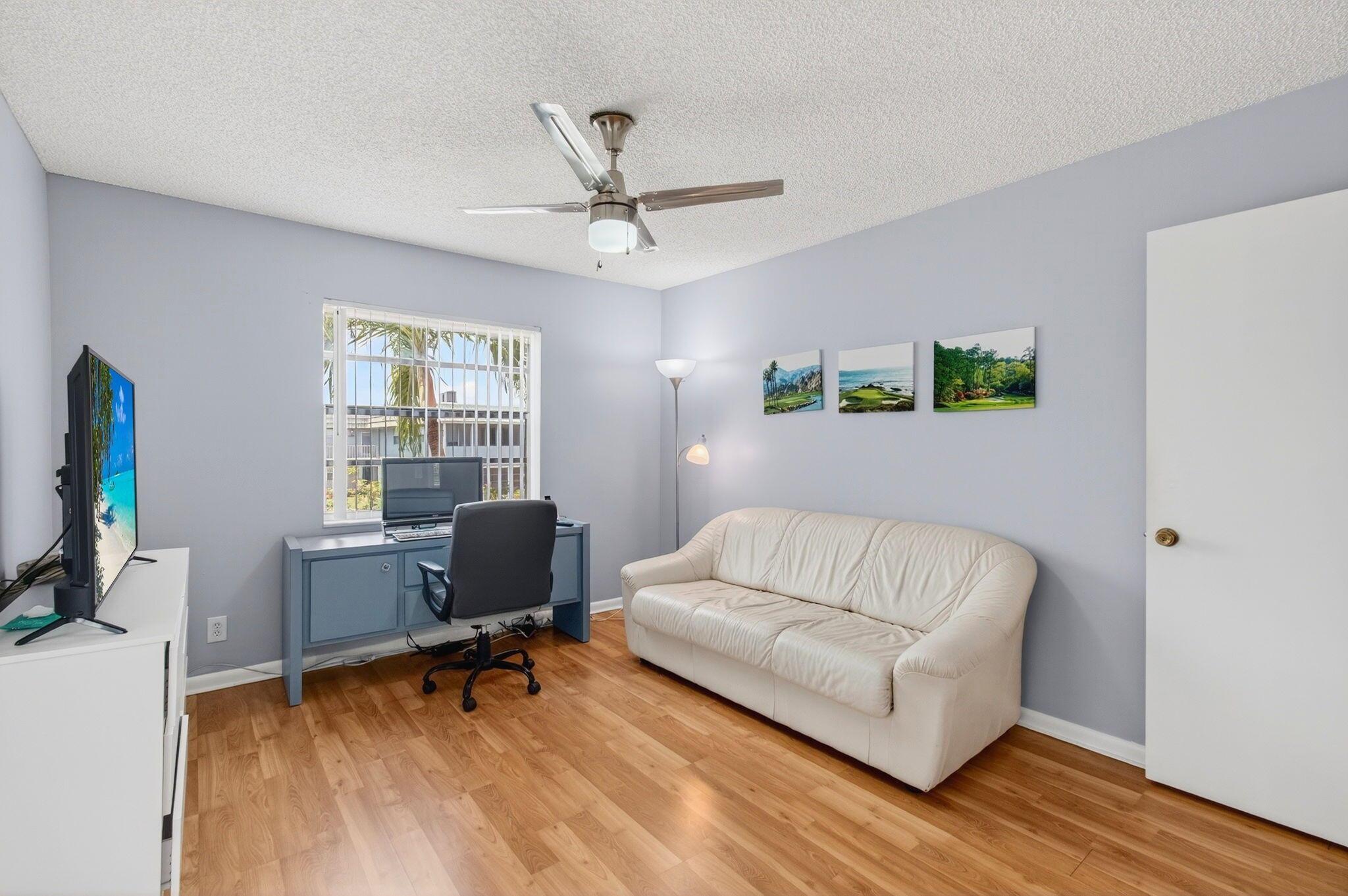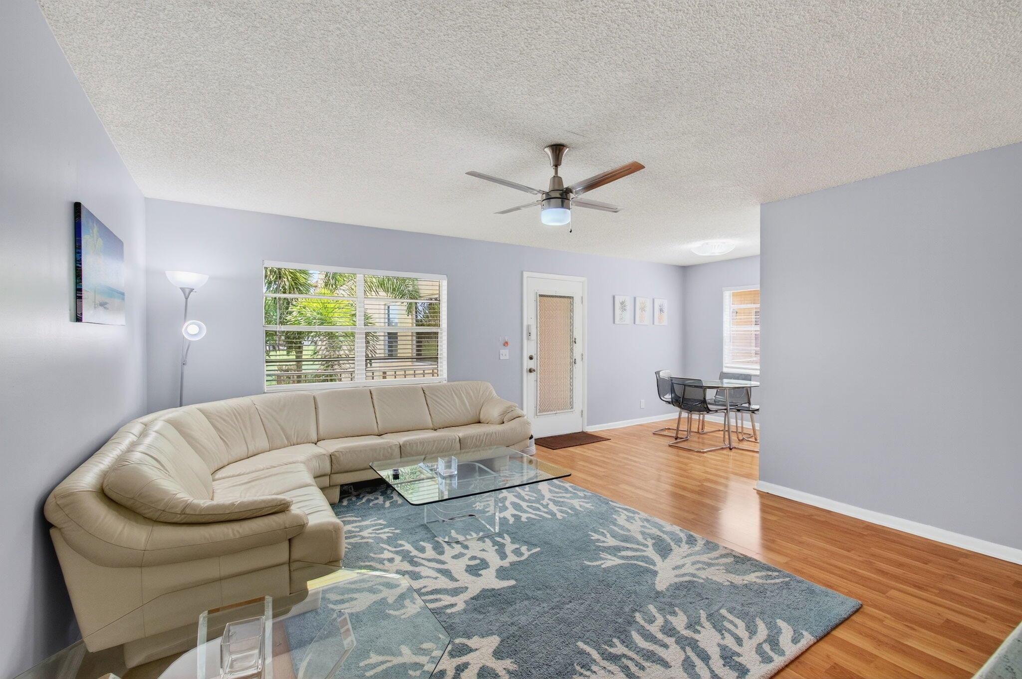 Embrace the captivating charm and modern convenience of this second-floor unit situated in the prestigious 55+ Kings Point Golf and Country Club. Perched majestically amidst the verdant expanse of a well-maintained golf course, this Flanders M Model invites you to revel in undisturbed views and invigorating Florida breezes from the comfort of your living room.Solid CBS construction ensures sturdiness and longevity that pairs seamlessly with the contemporary aesthetics of the interior. As you step inside, you'll immediately notice the warmth of bristling laminate flooring underfoot, harmonizing with the updated design of the kitchen. Modern appliances, recent A/C (2021) and water heater (2023), only serve to complement the unit's ambiance of convenience and comfort.