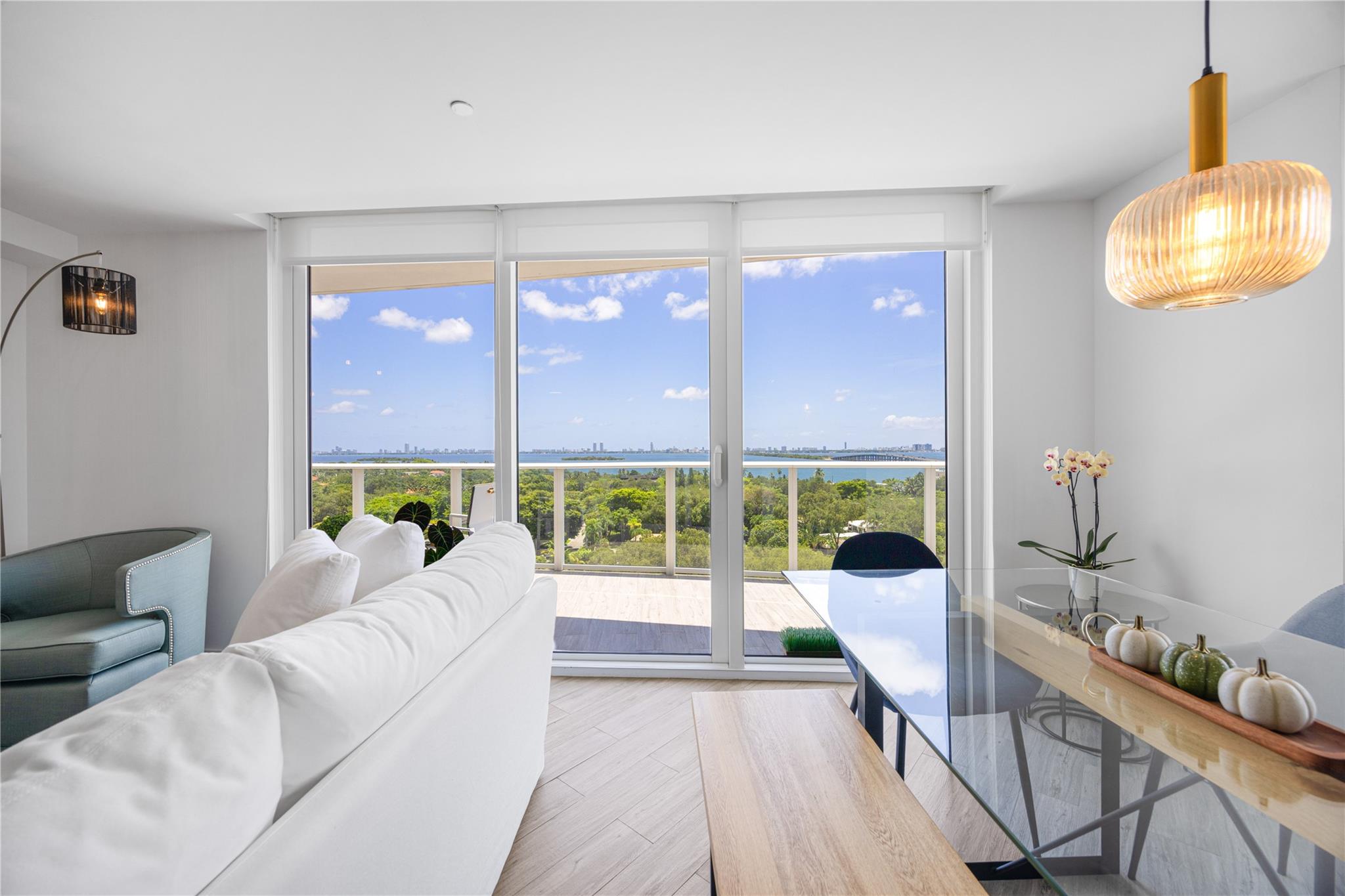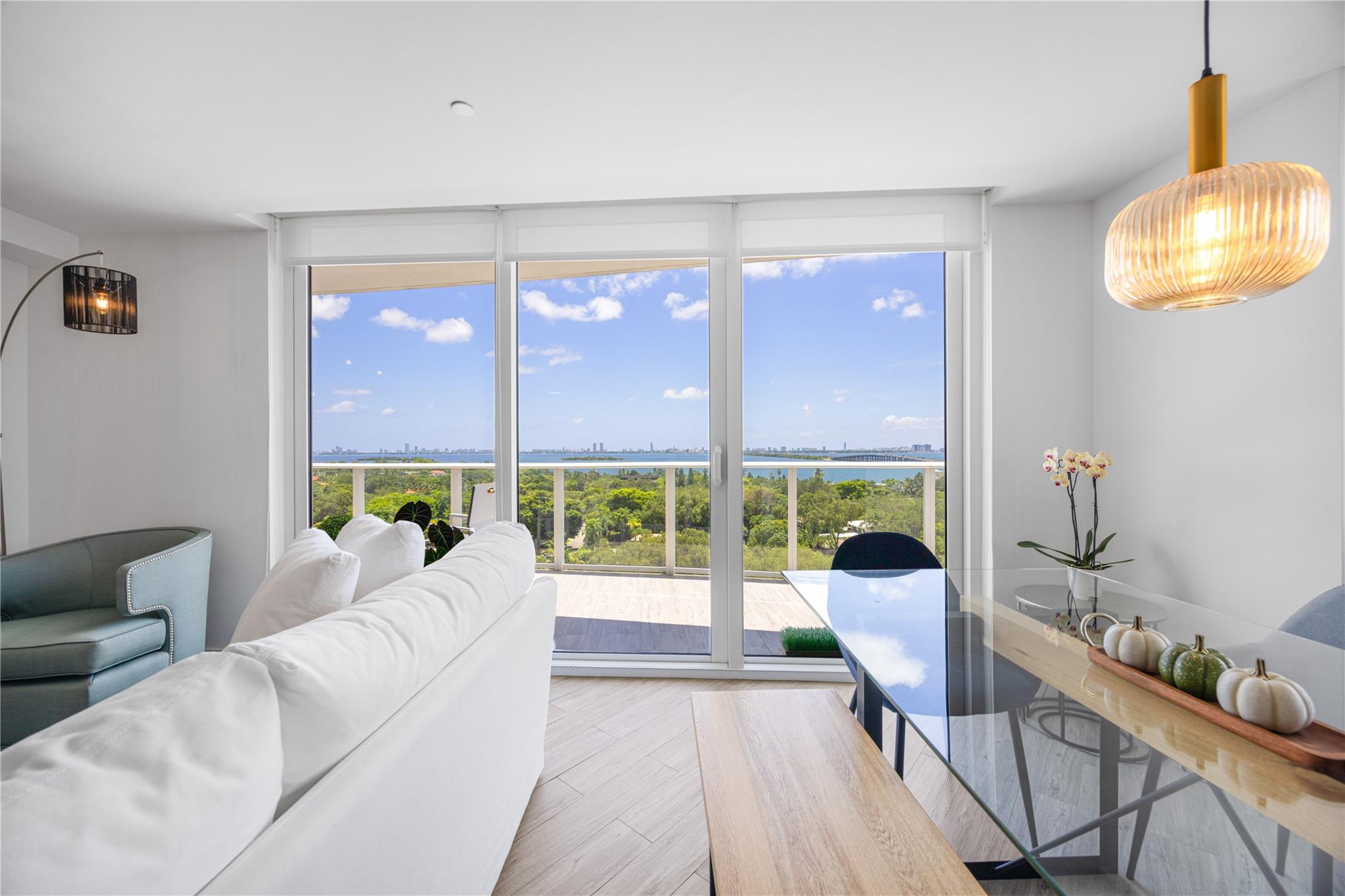 This stunning 2-bed, 2-bath residence sits on the 11th floor of a luxury high-rise and offers unobstructed views of Biscayne Bay and Miami Beach. Enjoy spectacular sunrises and moonlit evenings from the expansive wraparound balcony-terrace. Floor-to-ceiling, high-impact glass doors and windows flood the space with natural light and offer unmatched vistas from every room. Includes 2 covered parking spaces and is located in a strictly residential building featuring top-tier amenities: state-of-the-art gym, resort-style pool, rooftop jacuzzi, entertainment lounge, 24-hour security, and excellent maintenance and cleaning services. A rare opportunity to live in a peaceful, well-maintained community close to Design District, Midtown, and Miami Beach. Only 10 mins from Miami Int’l Airport.