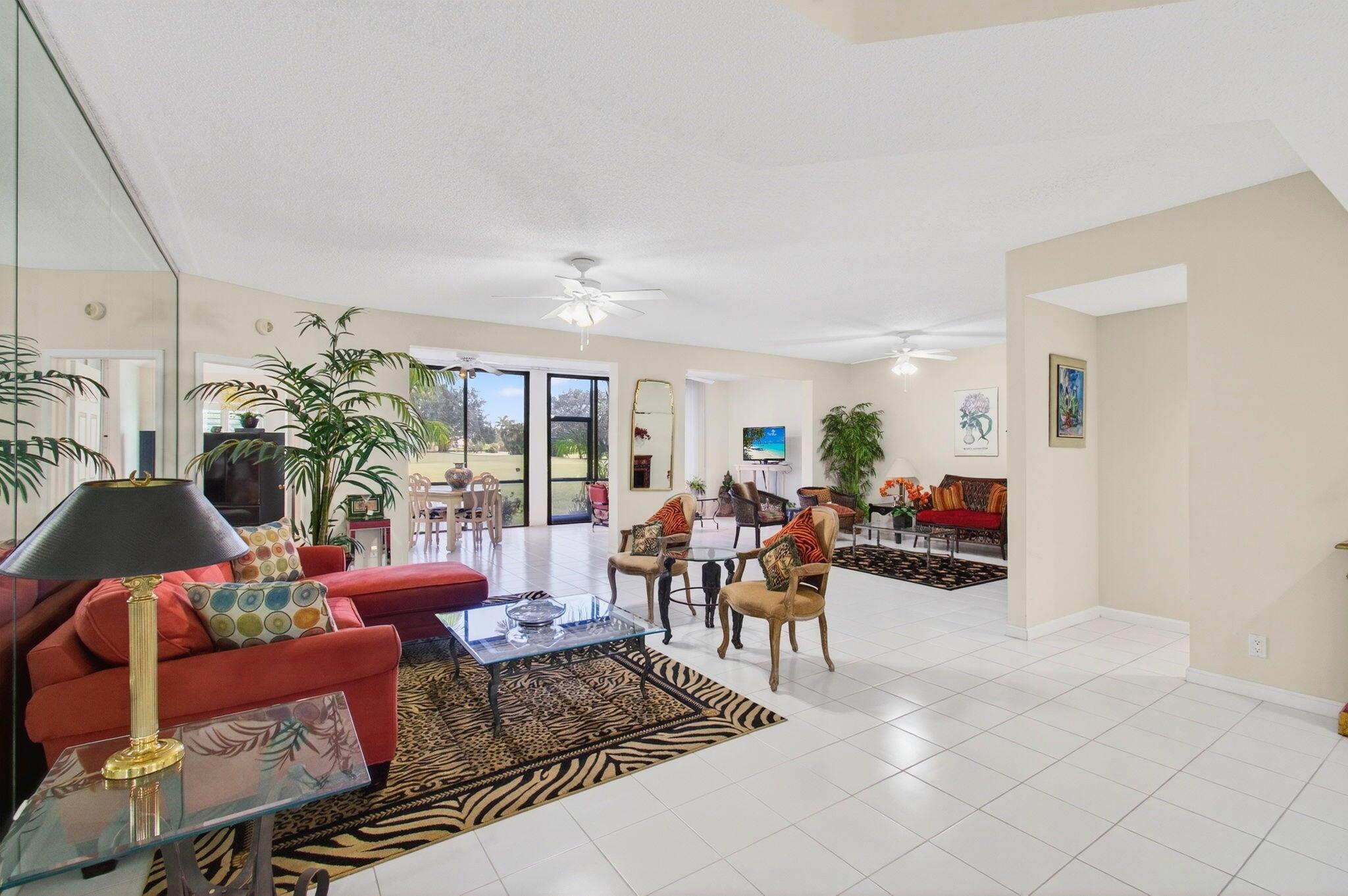 Beautiful 1st floor corner condo with a golf course view. Open and spacious. Very open Living room, dining area, den and Florida room Tiled living areas and brand new carpet in both bedrooms. Kitchen has beautiful cabinets and granite counter tops with a breakfast bar, eating area and sliders to a side patio. The Primary bedroom is spacious and has a large walk in closet. Master bath has a separate tub and shower. Briarwood is part of the Indian Spring country club community. Membership is optional