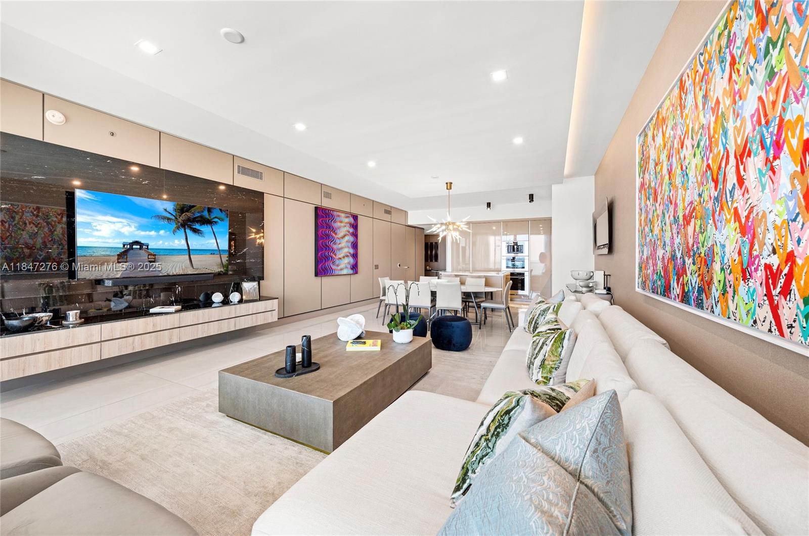 Brand new, fully upgraded residence. Flow-thru unit with 2 extensive terraces, one facing the ocean / white sand, the 2nd is facing the canal, city skyline / sunset. Designed by prestigious Design firm in an elegant, modern, flawless style. Wooden panels throughout, TV console in stone, larger floor tiles, personalized furniture for master bed, living room and guest suites. Top of the line appliances, Armani Casa kitchen & bathroom fixtures. Italian furniture. Costumized closets with lightning. Dropped ceiling. Ready to be occupied this impressive turn-key fully decorated oceanfront condo. Price includes everything except 2 art pieces (as value is considerably high), can be negotiated. Foyer also is upgraded/finished. 3 full beds, Studio can be turned into a 4th bedroom with a Jack/Jill.