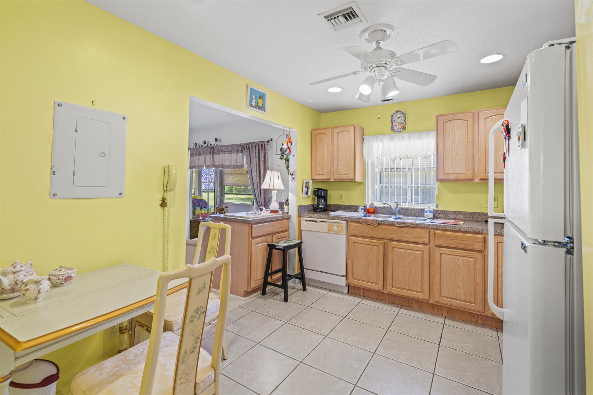 Charming 2BR/2BA condo in the desirable 55+ community of High Point in Fort Pierce. This well-kept unit offers vaulted ceilings, a spacious open layout, split bedrooms for privacy, and a screened-in patio perfect for relaxing. The primary suite features a walk-in closet and en-suite bath. Enjoy a low-maintenance lifestyle--HOA includes water, sewer, WiFi, exterior maintenance, and access to a heated pool, clubhouse, and walking trails. Pet-friendly and ideally located near beaches, shopping, golf, and medical facilities. Perfect for seasonal or year-round living in a secure and active adult community.