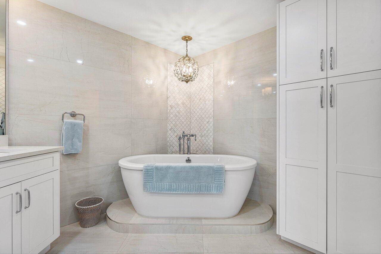 Your 2 pets are welcome at this newly Renovated Direct Oceanfront wraparound 2 Bedroom - 2.5 Bath corner residence in the exclusive Palm Beach Hampton. This light bright and airy contemporary home offers a coastal feel with open spaces & forever ocean views. Every room is beautifully detailed with porcelain tile, custom lighting & built-ins. The oceanfront master suite features floor to ceiling glass, custom closets, a stunning bath with dual sinks, marble shower & soaking tub. The guest suite has 4 custom bunk-beds that can accommodate all your children & grandchildren. The newly designed kitchen is an epicure's delight with Wolf & Subzero appliances and island seating for 6. There is a beautifully designed workplace with custom built-ins and separate powder room with elegant cabinetry &