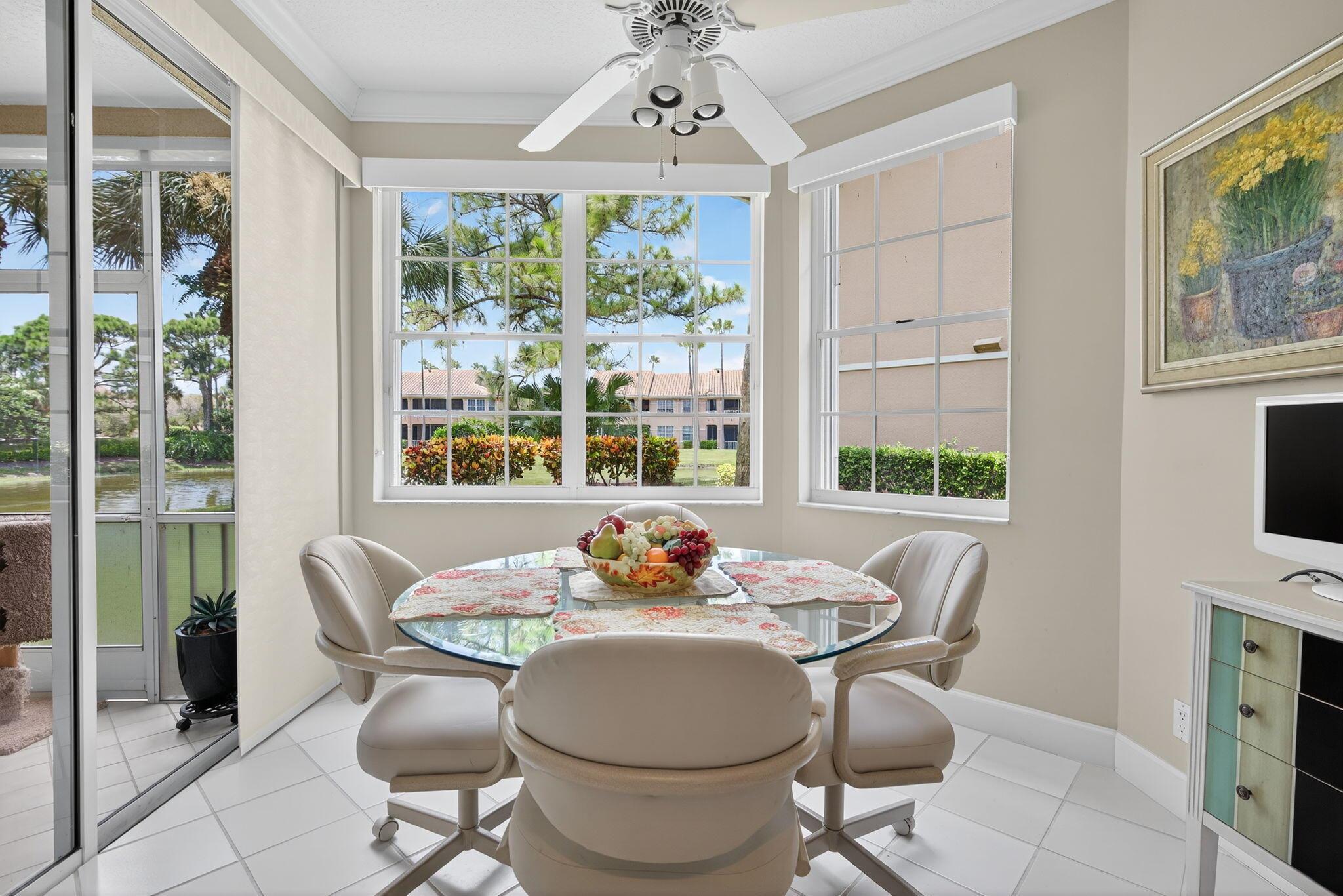 Highly desirable first floor Legends Condo. The entry is adjacent to a peaceful green space. As you enter you are welcomed in with lovely furnishings with the cool modern look of today. Totally remodeled, warm caramel wood kitchen cabinets. luxurious primary suite, sitting area, spacious closet, and sliders to the patio. Views of lovely lake, and warm sunsets. Guest bedroom is situated separately from main living and adjacent to the guest bath. Convertible Den features warm wooden cabinetry, with built in desk and closet. The Legends has always been known for the pleasant atmosphere for full time residents and seasonal as well.