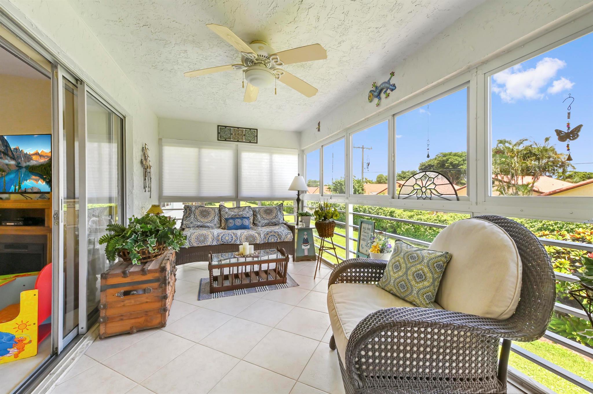 Welcome to Bridgeview Condominums, a vibrant 55+ community offering comfort and convenience in a prime location. This well-maintained corner unit condo features 1,220 sq ft of living space with 2 bedrooms and 2 bath. Enjoy natural light throughout with elegant plantation shutters on all windows and impact windows throughout. The kitchen comes equipped with appliances and ample cabinetry for storage. Interior finishes include a mix of tile and laminate flooring for easy maintenance. The spacious master bedroom includes a sitting area and direct access to the bath. Relax and unwind on your covered enclosed porch with sliding windows and screens, perfect for morning coffee or evening breezes.