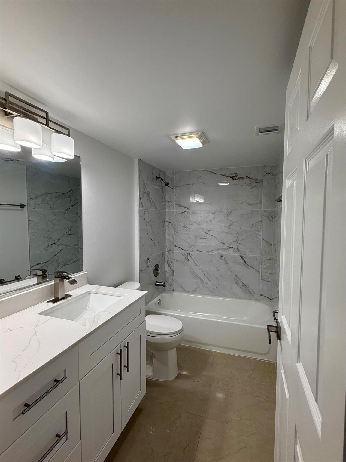 Fully remodeled 2BR + Office/Den + Full laundry room!This beautifully updated 2BD/2BA first-floor condo features a brand-new kitchen with quartz countertops, custom cabinetry, and stainless steel appliances. Both bathrooms have been completely remodeled, and the spacious open-concept layout offers large bedrooms and new flooring throughout.Enjoy resort-style amenities with 4 community pools (including one just steps from your back door), a full fitness center, and landscaped common areas. The HOA covers water, trash removal, cable, pest control, building insurance, landscaping, and full maintenance of the pools and fitness center making for truly no worry living.Ideally located near I-95, top shopping and dining, and just a short drive to the beach,