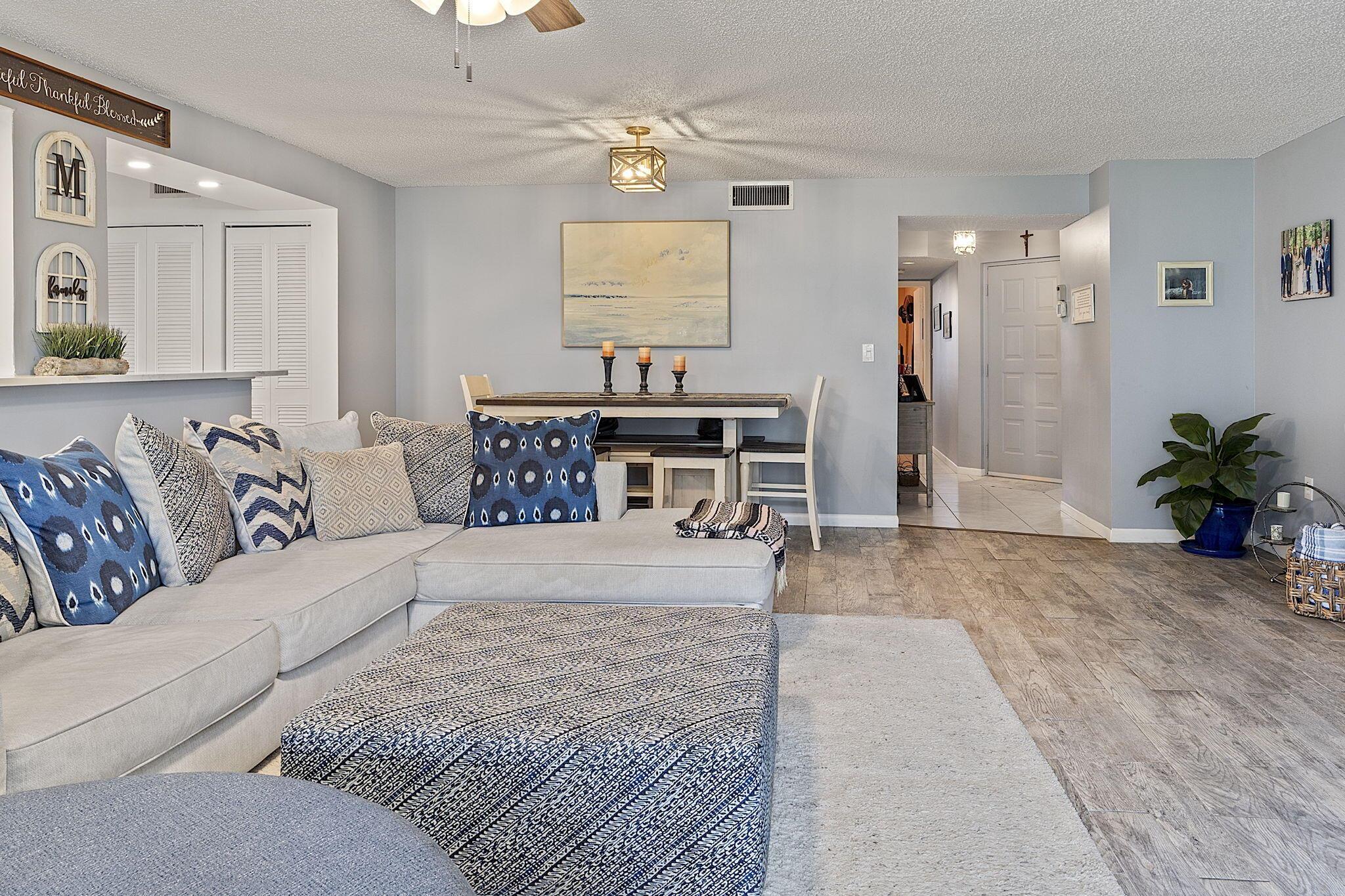 Beautifully updated 2 bedroom and 2 bathroom condo in the popular community of Half Moon Bay. This first-floor unit with an open floor plan is move-in ready and has the square footage you desire in a condo. Features include updated flooring, kitchen, and appliances. The patio has been enclosed with hurricane-impact sliding glass doors adding more living space to enjoy the amazing intercoastal view. Both bedrooms have walk-in closets and both bathrooms include a shower and tub. Close to I-95, the beach, shopping, and restaurants. Everything you need is just minutes away!