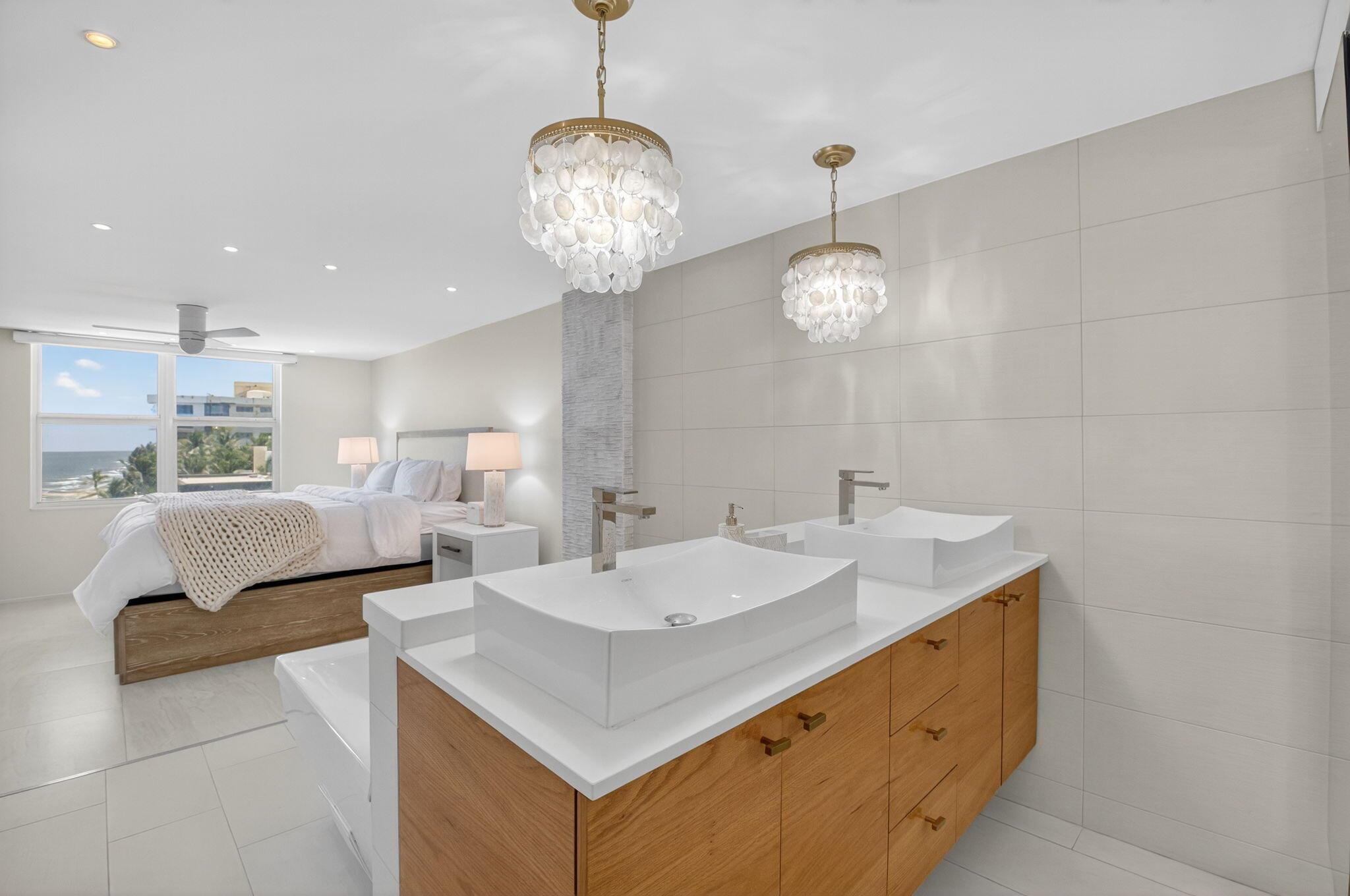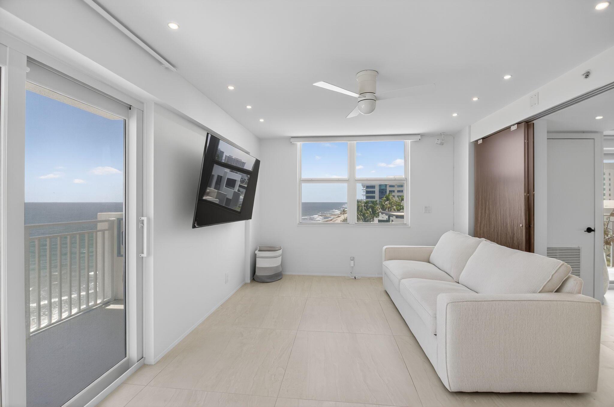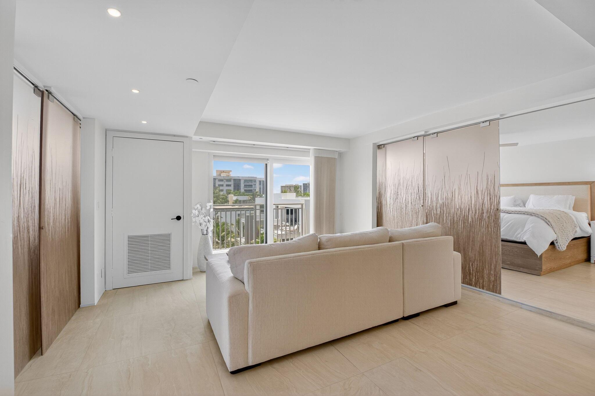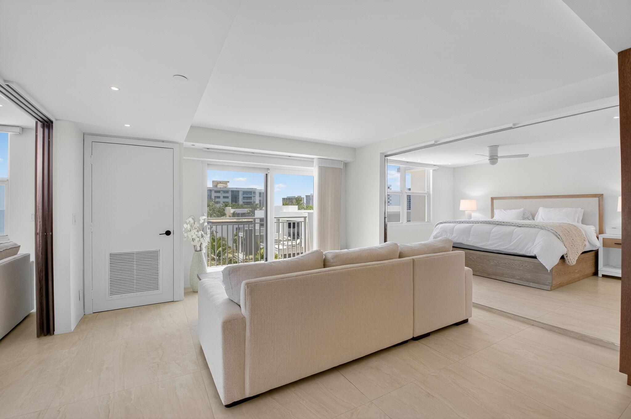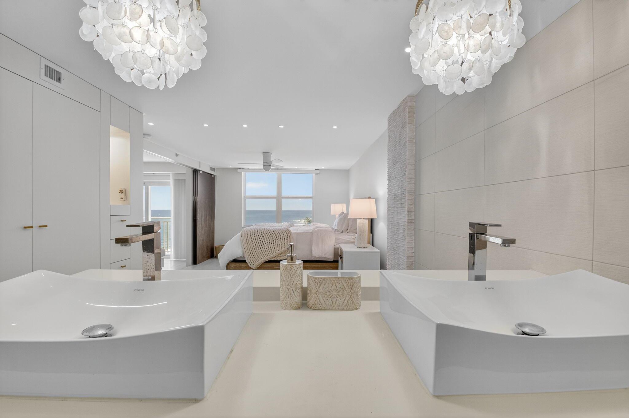 Coastal Luxury Living Redefined. Situated directly on the oceanfront, Residence 507 offers sophisticated living with uninterrupted ocean views from every room, including the primary bath. This fully integrated smart home captures the essence of coastal elegance, with two private balconies perfectly positioned for sunrise and sunset.The custom kitchen is the true centerpiece, designed for both function and entertaining, and appointed with Miele, Bosch, and Sub-Zero appliances, bespoke wood cabinetry, and an oversized island with seating for ten. Floor-to-ceiling glass doors frame the living space, creating a seamless connection between polished interiors and the breathtaking beauty of the ocean.