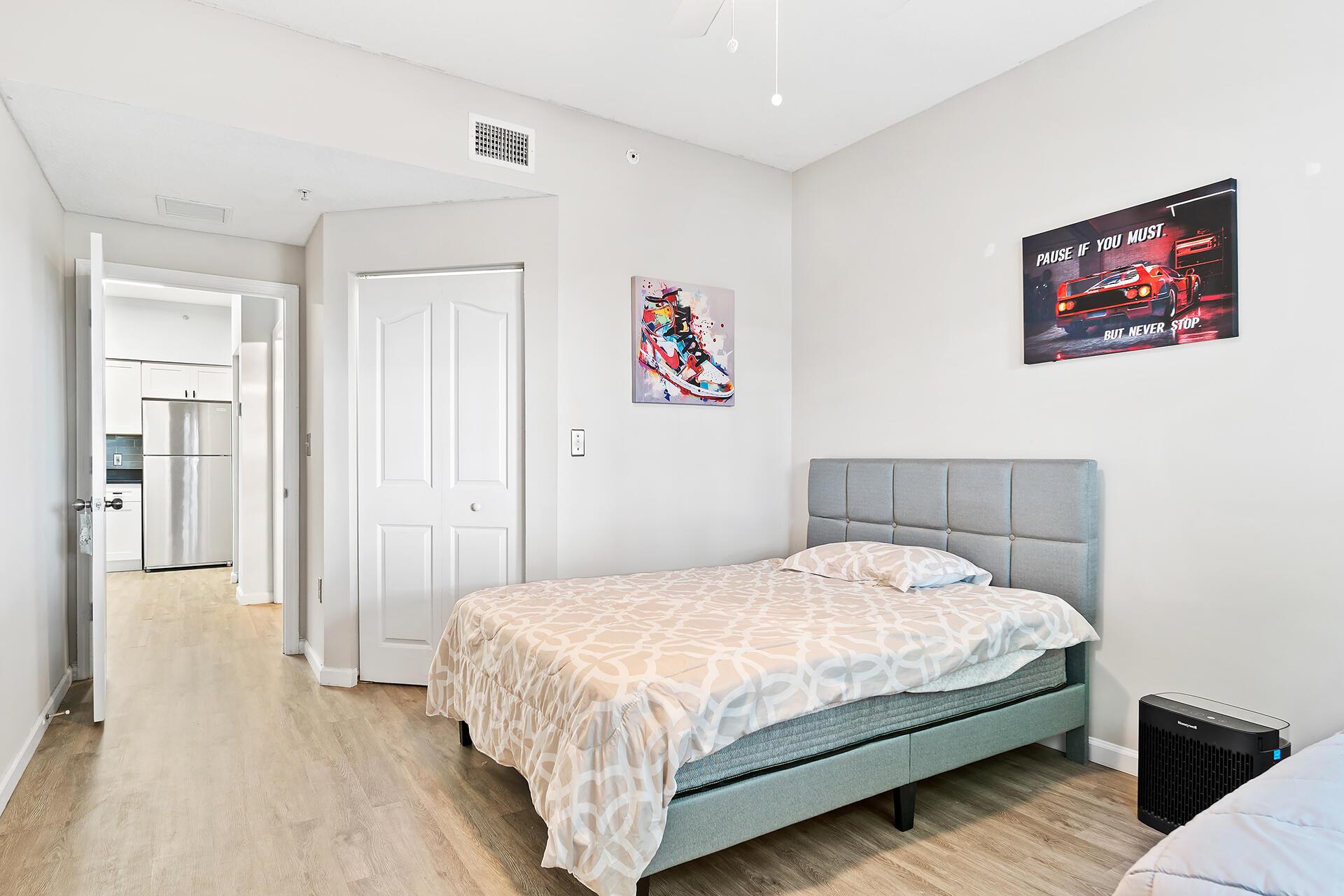 INVESTORS! 1ST TIME HOME BUYERS!! Lowest HOA fee for 1 bed condo in Palm Beach County! Year built 2004, roof 2021, AC 2021, impact glass, no waiting period to rent! Beautiful upgraded 2nd floor apartment in gated Mezzano; all ages welcome. Open floorplan A-1 model with high ceilings, crown moldings and modern finishes. White cabinets and sleek black granite countertops. Large bedroom with walk in closet. Breezy balcony for a breath of fresh air in this quiet amenity rich community, featuring gorgeous pool, fitness center, sand volleyball court, playground, clubhouse and cafe. Close to everything with quick access to the freeway. It's time; leave the stress, decompress, and LOVE WHERE YOU LIVE