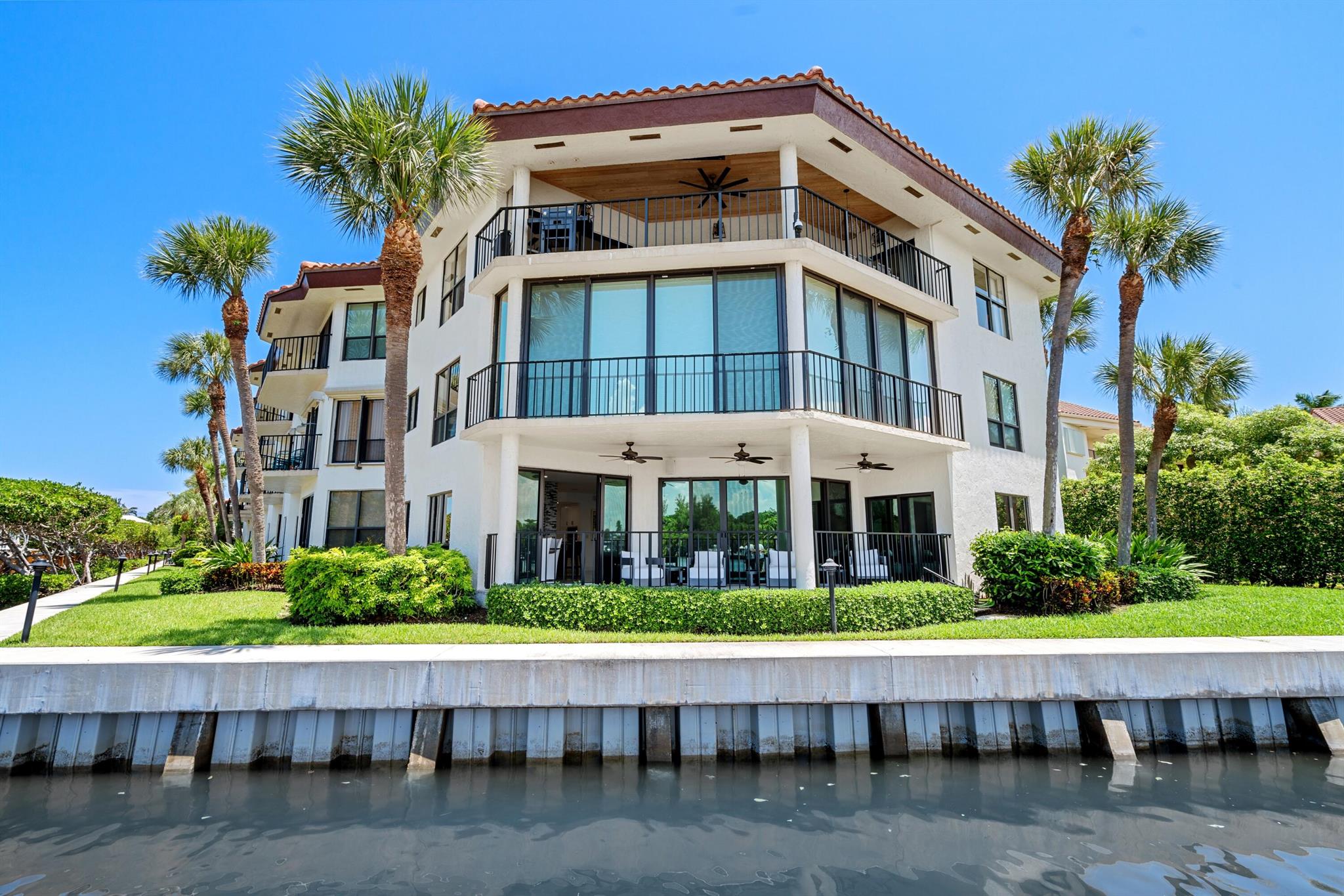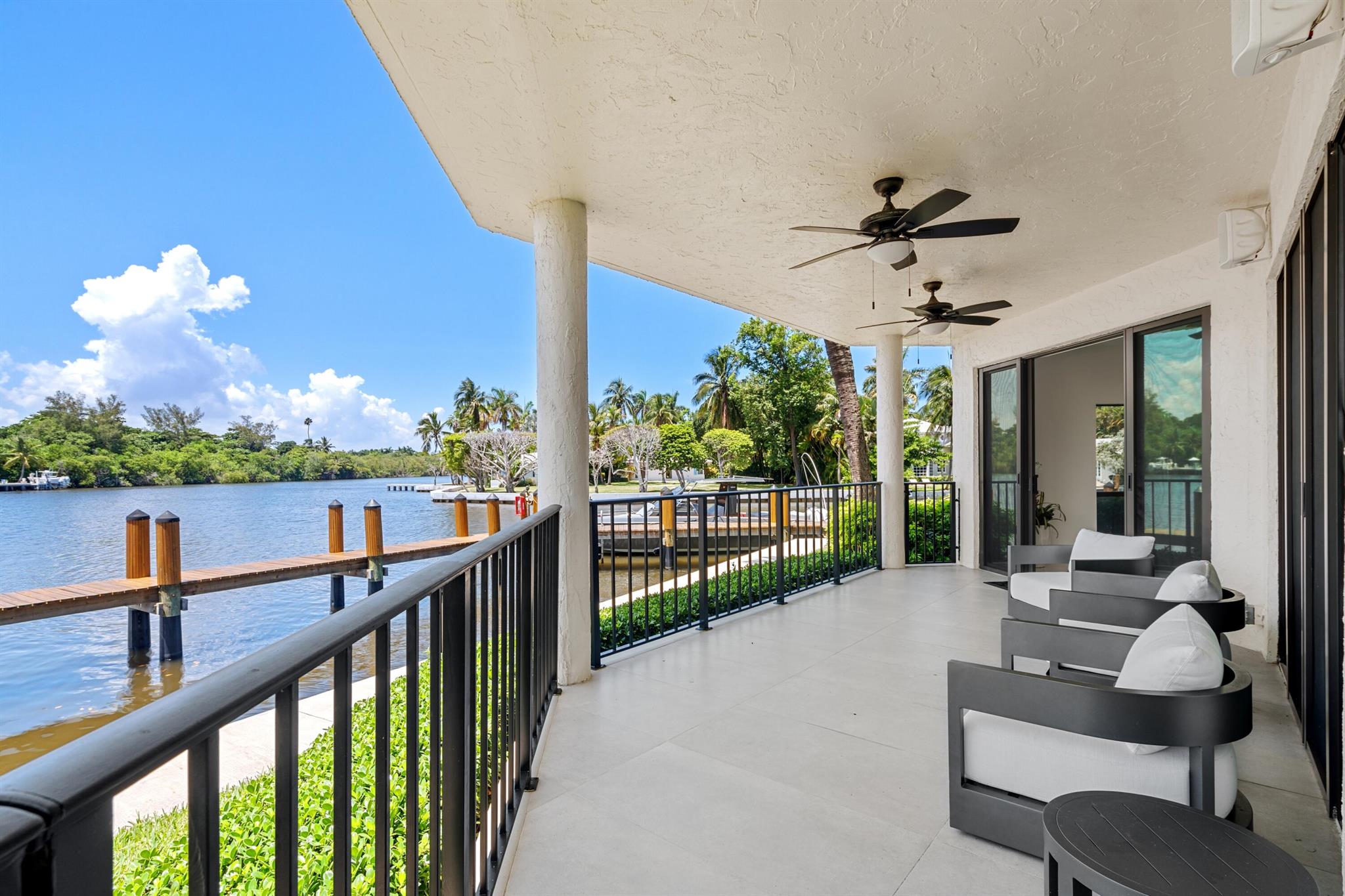 The crown jewel of Waterway North offering unmatched privacy and the most desirable vistas, this completely renovated first-floor residence is the only one uniquely situated on the complex's end point, it's own 38 foot dock. It directly fronts the Intracoastal Waterway with main rooms opening to the loggia offering easy access to the yard and waters edge with its own 38 foot dock private dock.