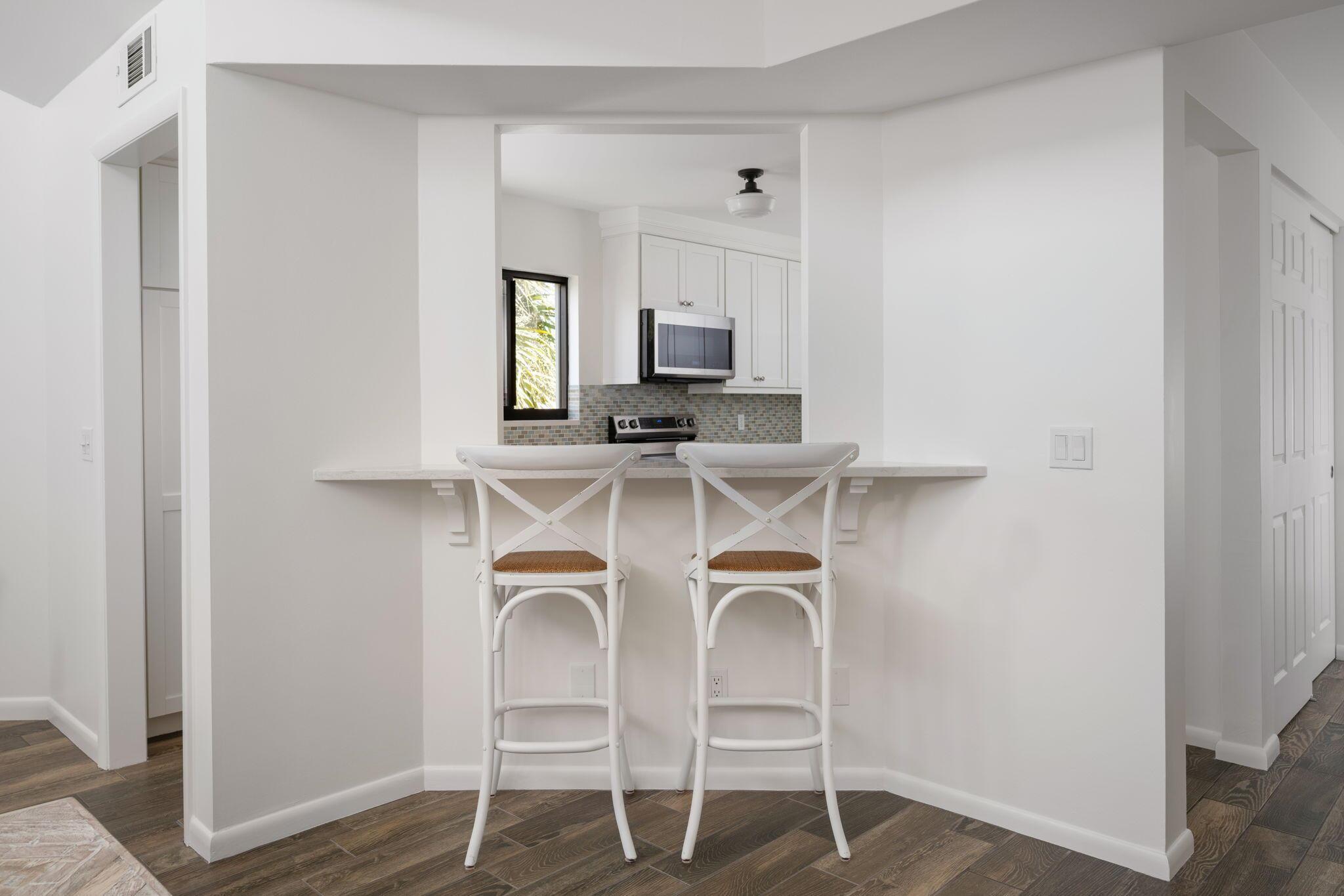 Discover coastal luxury in this renovated 2 bed, 2 bath, 1,657 SF condo east of A1A in Vero Beach. Vaulted ceilings, transom windows, and open living spaces create a bright, airy feel. Features include a built-in bar, fresh paint, and elegant designer finishes. Relax on your private screened patio and enjoy the ocean air. A covered carport adds convenience and the community offers a pool & beach access. This unit is perfectly located just steps from the beach, offering the ultimate blend of coastal charm and modern comfort!