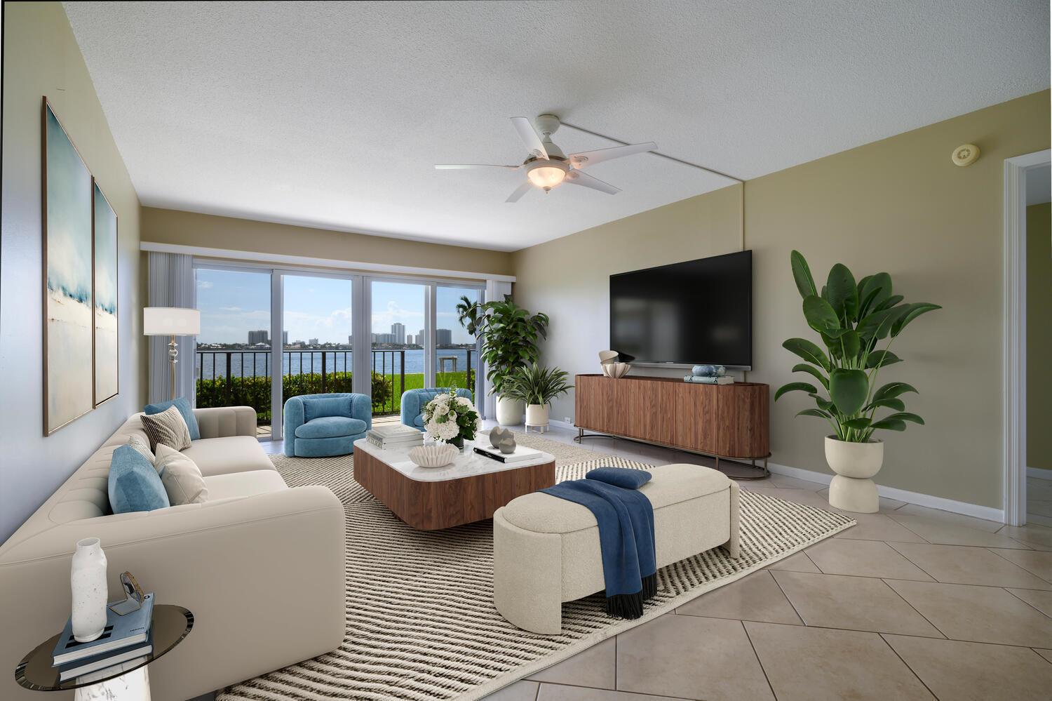 Imagine stepping into a serene waterfront condo where you're greeted by sweeping views of our glistening intracoastal that instantly sets a resort-like tone for everyday living. Wall to wall sliding doors and generously sized windows with a spacious patio frame these vistas, providing both relaxation and natural light. The building boasts two inviting swimming pools, one of which is heated, surrounded by sun loungers and cabana style shaded canopies. It's the perfect setting whether you're diving in for morning fitness or unwinding in the sun with a good book! Want a bit of playful competition? A dedicated putting green, pool table or life-size shuffleboard right on the grounds encourage casual practice and friendly challenges, giving the community resort feel. Coming into the condo, you