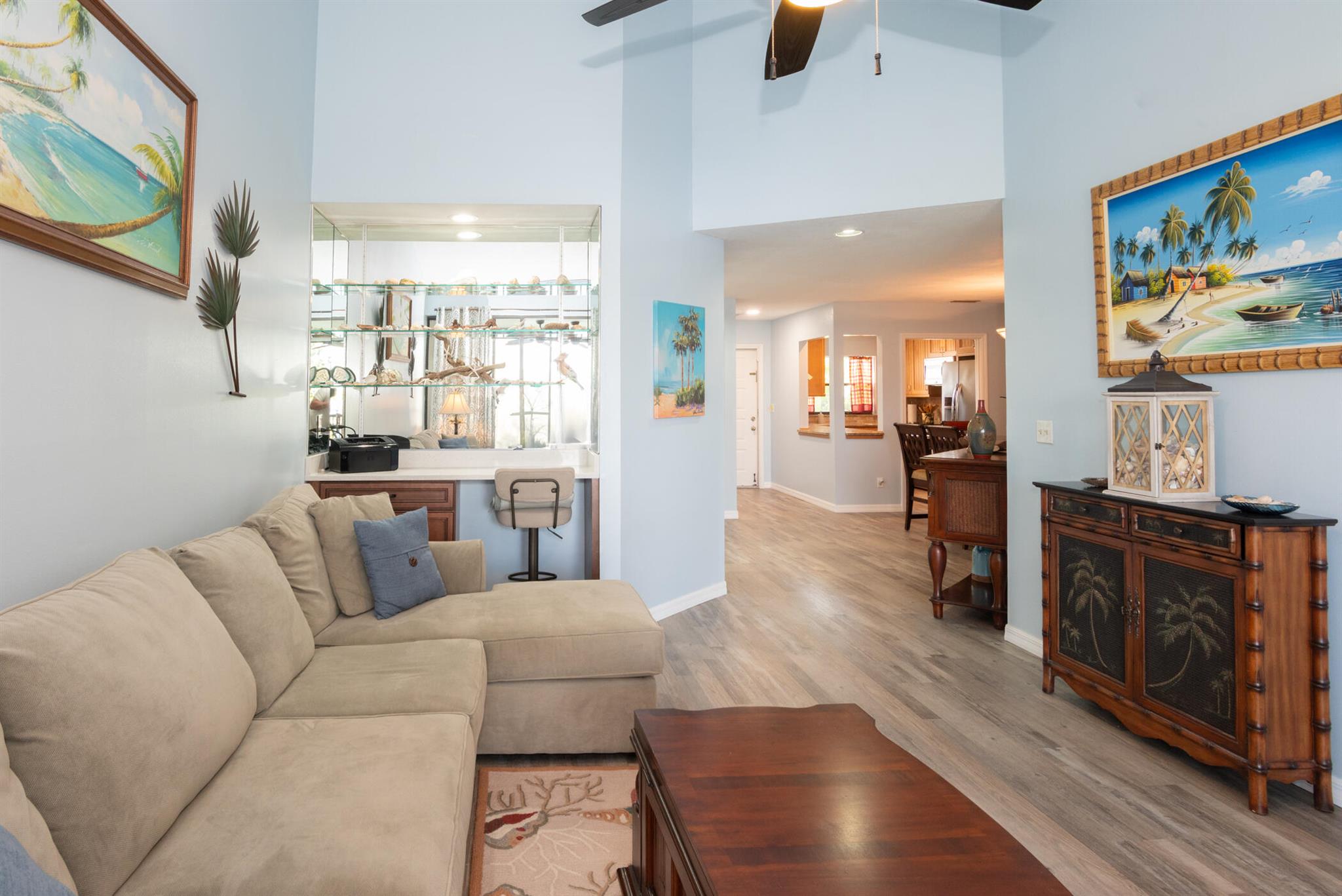 Just listed, Hanson's Landing 2/2 renovated Condo with new Luxury Vinyl flooring and 2 updated Bathrooms and newer kitchen cabinets. This Condo has vaulted ceilings, walk in closet, dual sinks in Primary bath and a beautiful screened in balcony overlooking the lake and steps to the community pool! Unit has full size washer/dryer, plenty of storage, covered parking and additional storage for your outside living and sports gear! Furniture included in purchase.Desirable location close to the pool and the Manatee Pocket. Close to Stuart Town - great restaurants and shopping. Season is shortly approaching, don't miss out because this Condo won't last!