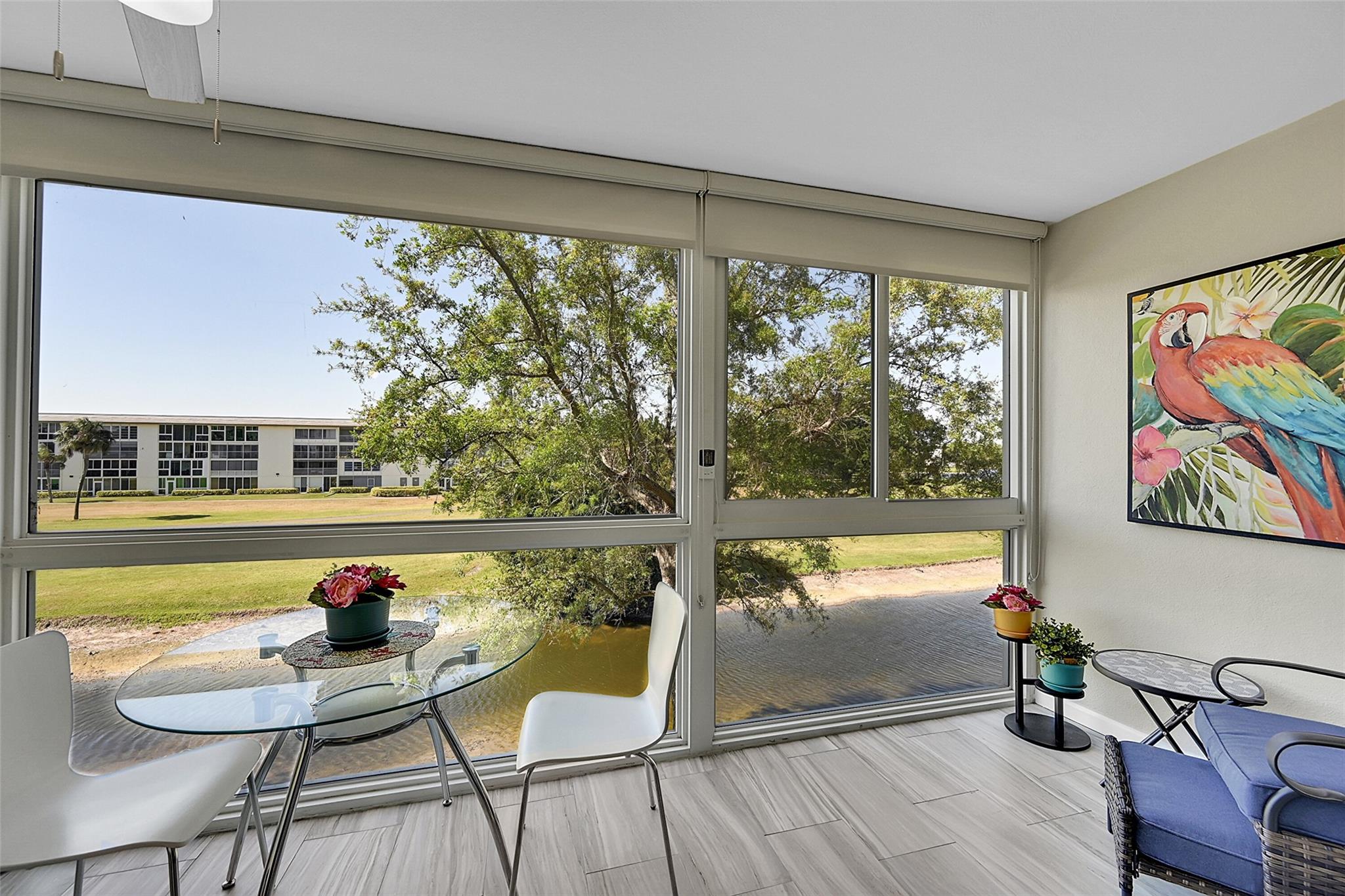 Step into this turn-key, fully furnished, and tastefully decorated 2-bedroom/2-bath condo offering panoramic golf and lake views in the heart of Wynmoor. Beautifully remodeled home features an open-concept kitchen with newer cabinets, stainless steel appliances, and sleek quartz countertops. Enjoy porcelain tile floors throughout, along with modern bathrooms designed with upgraded vanities and showers. Relax on your enclosed lanai with impact windows and custom blinds, the perfect spot to soak in serene views. Additional updates: A/C (2017), water heater (2019), electrical panel (2022). This 55+ community, residents enjoy resort-style amenities including a restaurant, golf, tennis and pickleball courts, clubhouse, theater, etc. Move-in ready. Just bring a suitcase