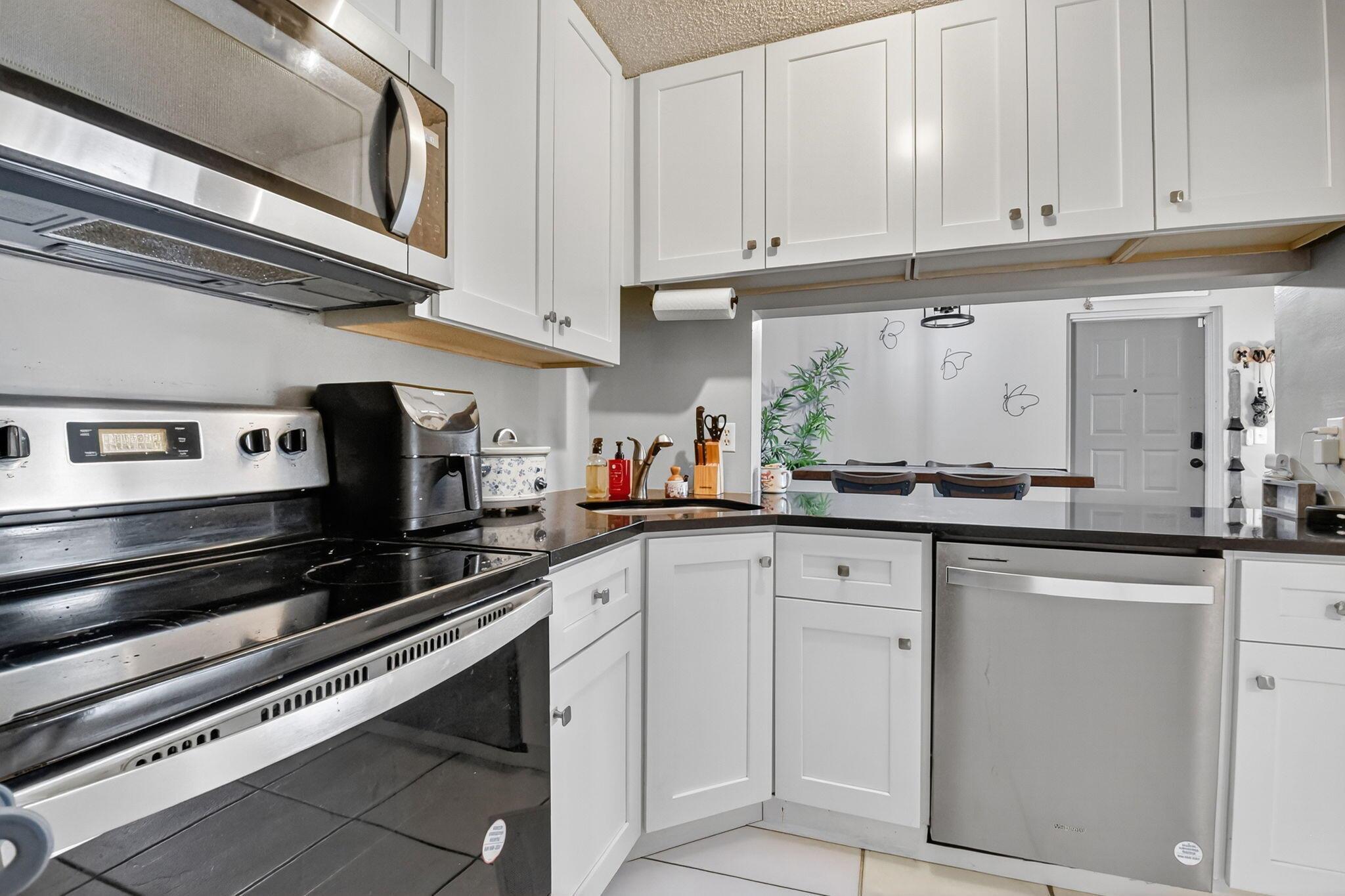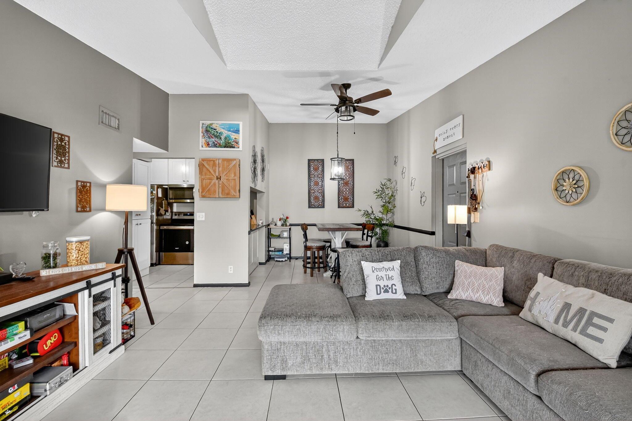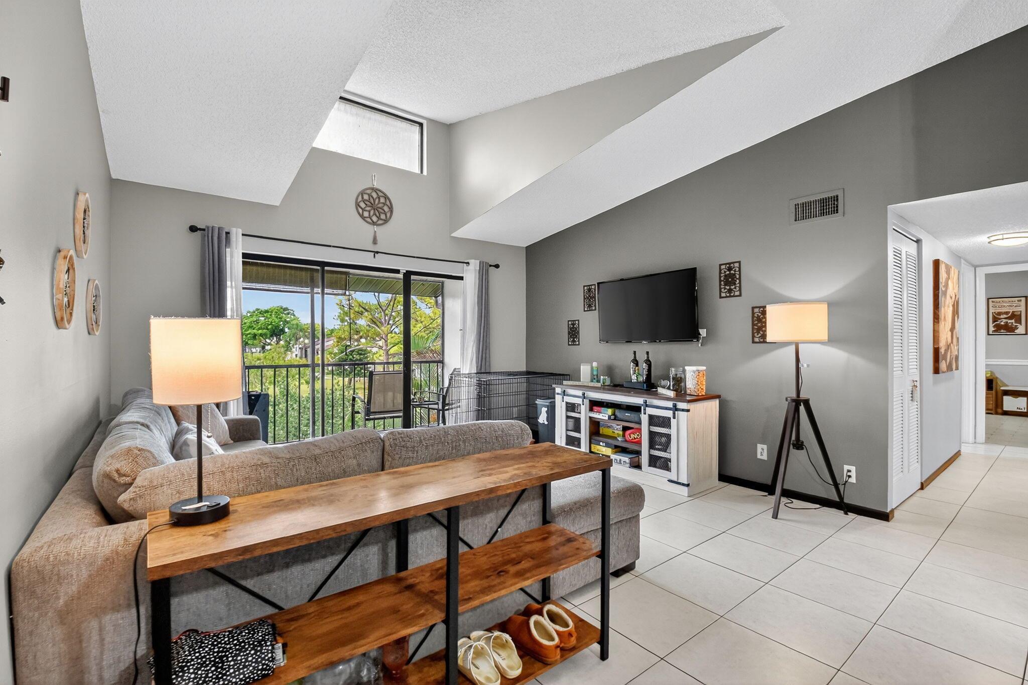 This beautifully updated 3rd-floor 2 bed 2 bath unit offers comfort, style, and convenience all in one. Located in Pine Ridge North Village lll of Greenacres! LOW HOA! This unit features a fully, just remodeled shower with brand-new plumbing throughout. The updated kitchen boasts new, sleek appliances. Other highlights include vaulted ceilings, built-in shelving in the primary closet, newer water heater (Nov. 2022), a new washer and dryer, and accordion hurricane shutters on all windows. Unwind on your private, screened-in balcony--graced with tranquil garden views and the added serenity of being a top-floor residence with no one above you.The community is very well-kept and offers fantastic amenities including a pool, tennis courts, and a clubhouse.