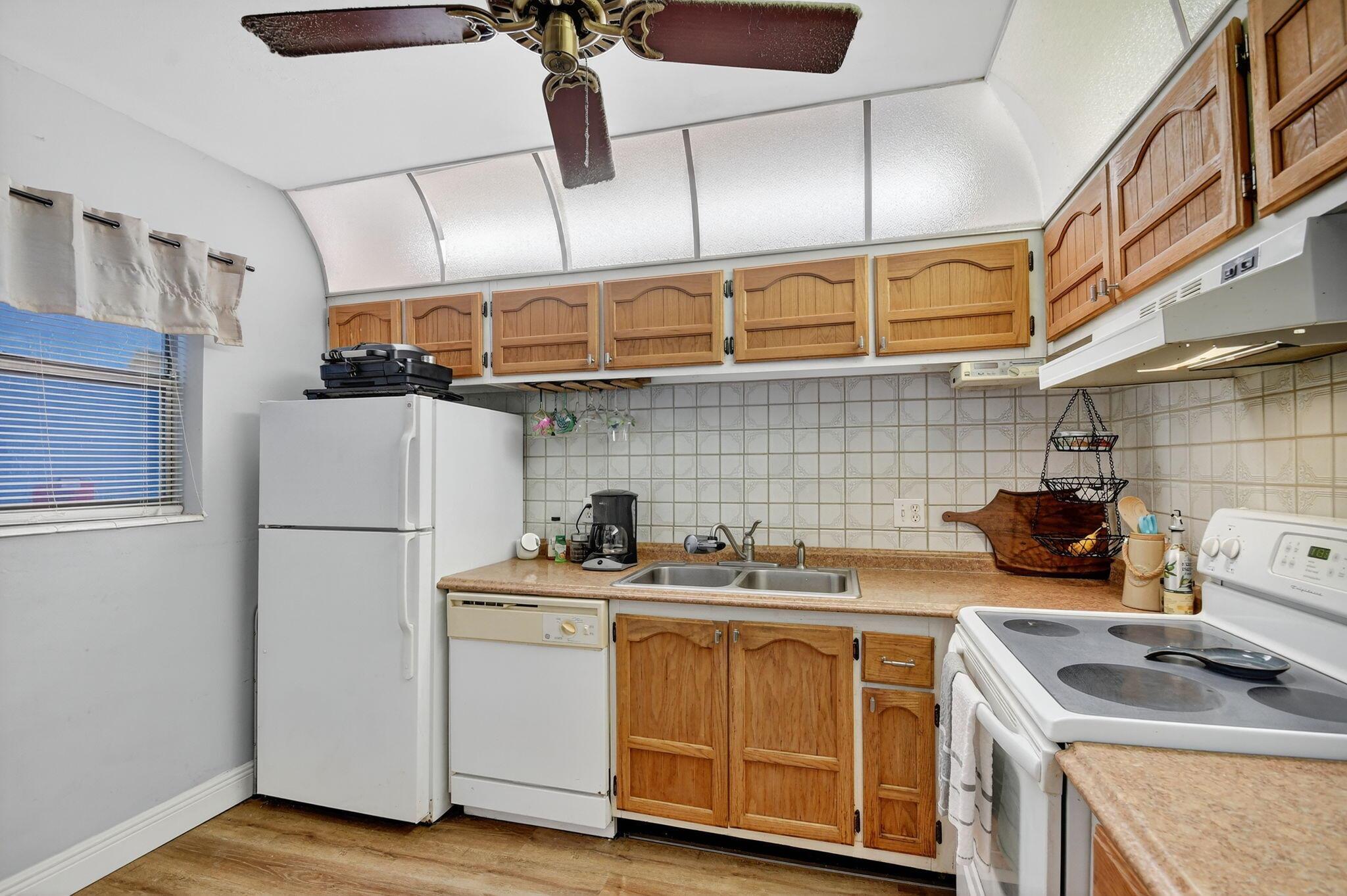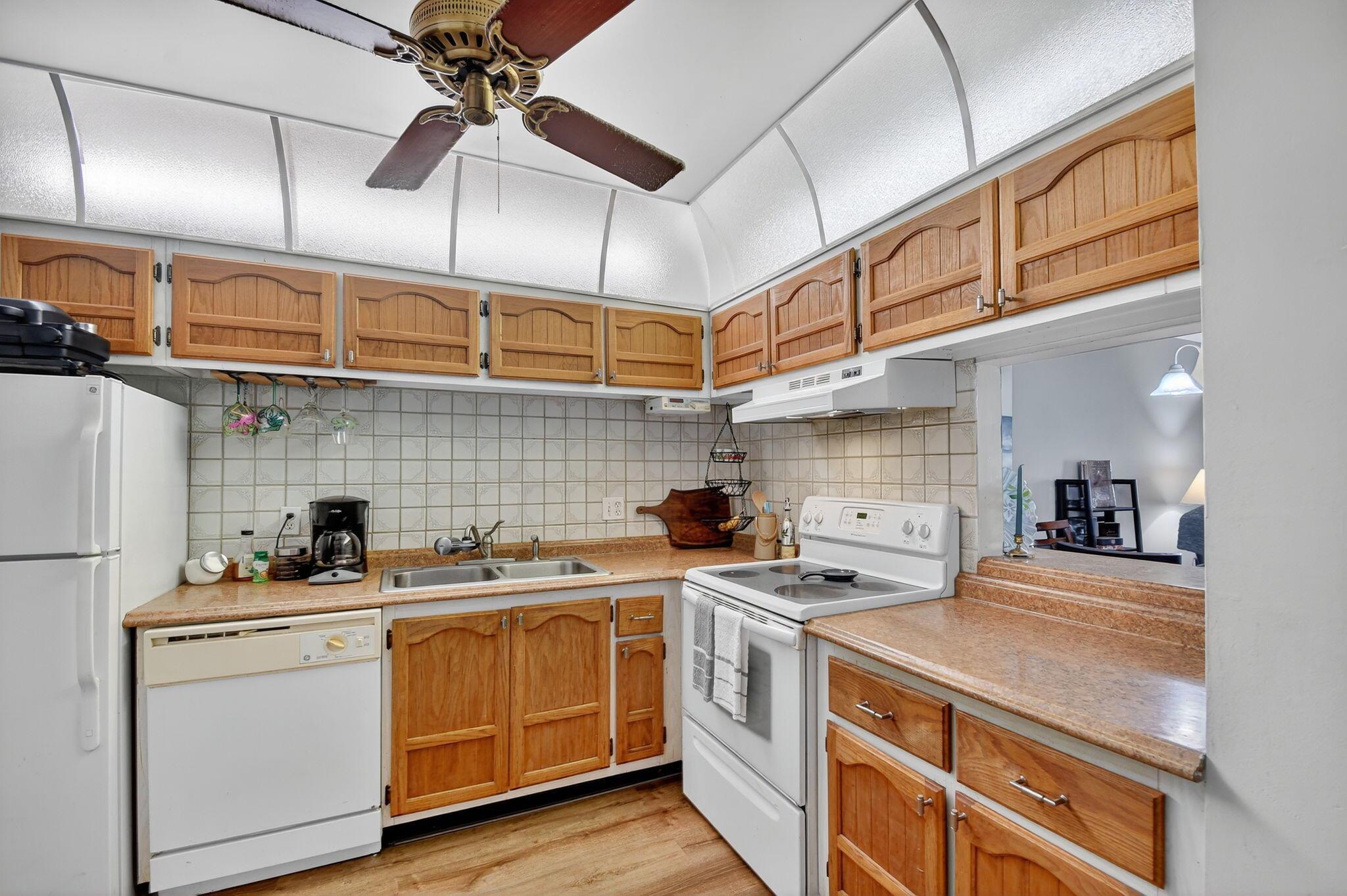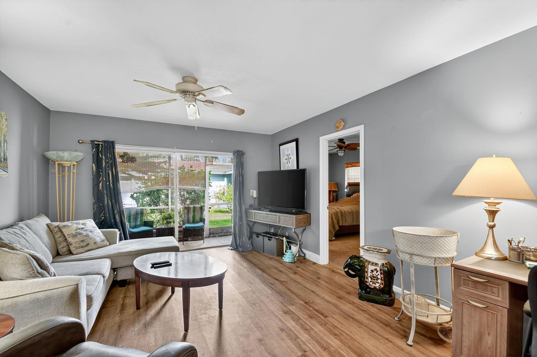 Discover Ken-Lee Gardens--an Intracoastal waterfront community offering resort-style living in Lake Worth Beach. This rarely available 2BR/2BA first-floor home boasts spacious rooms, a walk-in closet, and a bright kitchen with plentiful cabinetry and sunny breakfast area. The open dining/living layout flows to a screened patio with generous storage--just steps from the water. Enjoy a private sandy beach for kayaking, fishing, and dolphin watching, plus a heated pool, clubhouse, BBQ area, and lush tropical landscaping. Pet-friendly, all-age community with on-site management, assigned parking, and a one-year ownership requirement before renting. Quick access to downtown, I-95, and the beach.