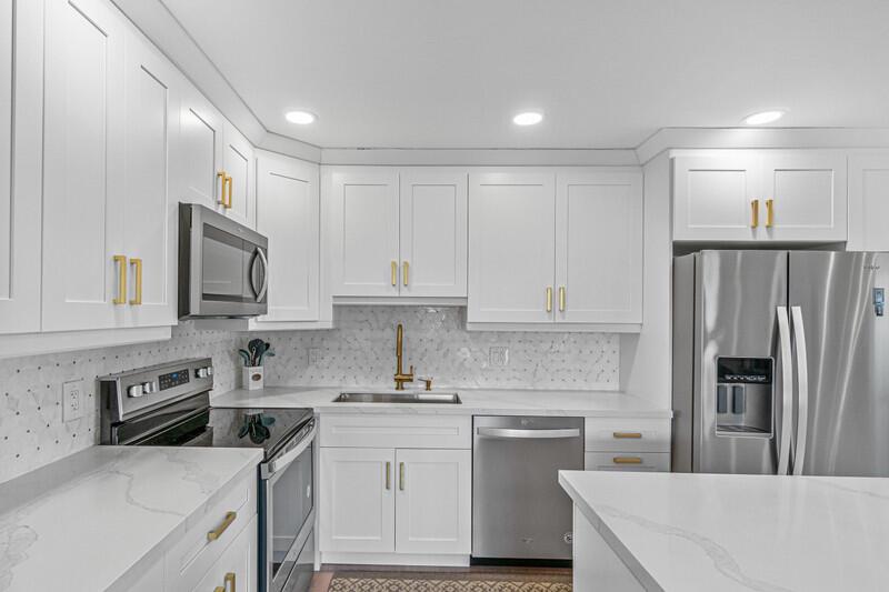 Turnkey and completely renovated 1/1.5 plus enclosed Florida room in Valencia section of Kings Point. This corner apartment shows like a model with a gorgeous white kitchen with large island, quartz countertops, and stainless steel appliances. Luxury vinyl flooring throughout, two renovated bathrooms, smooth ceilings, and lots of windows with natural light. Kings Point is a premier 55+ community with 24/7 gate access and a state of the art clubhouse facility with multiple pools, tennis, clubhouse, fitness center, restaurant, card rooms, and the list goes on.