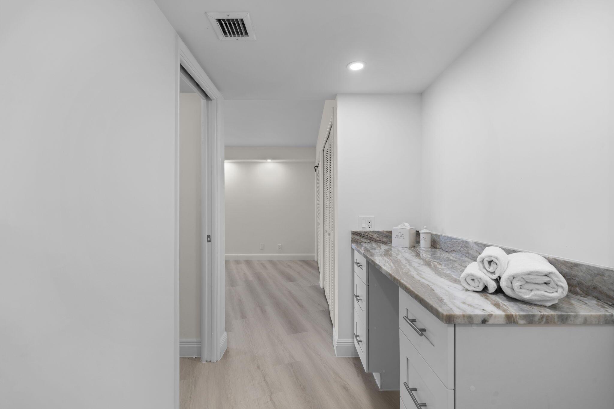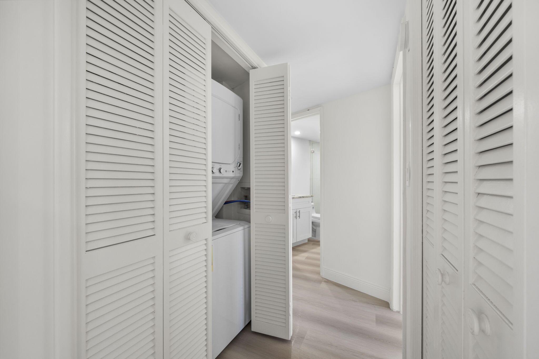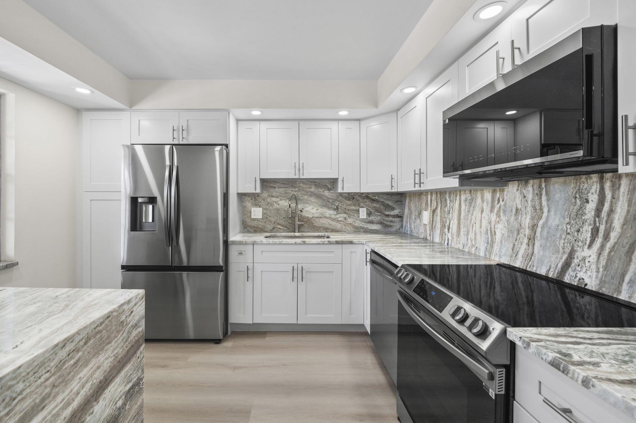 ALL NEW! Completely renovated with permits. Rarely available, oversized 2 bedroom, 2 bathroom King model. The property features New Kitchen and Bathrooms with designer-selected finishes, including granite tops with waterfall sides. Commercial grade LPV Flooring throughout, larger living room (with sitting area /office Niche, and washer & dryer combo in the unit. NEW Electric panel and newer A/C & water heater. This bright and spacious unit offers amazing views. Enjoy sitting on your extra-large screened-in balcony overlooking the golf course. Well-maintained building with NEW ROOF to be installed shortly. HOA includeswater/sewer, cable, internet & building insurancewithin walking distance to Community Park and amenities. Near shops, main highways, and 6 miles away from the Ocean