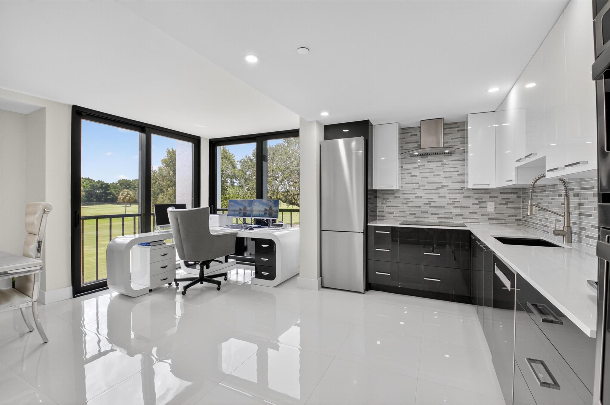 Unique unit, Complete renovation in 2024. Impact glass. New air conditioner. New hot water unit, New kitchen with 36 inch European style cabinets. Bosch Double oven. Bosch refrigerator and dishwasher. Porcellin tile throughout. Golf and pool views, No popcorn. Small patio enclosed providing more air conditioned living space,. Mandatory membership. Golf memberships available. Joining fee $150,000. BUY NOW. ENJOY THE BOCA WEST LIFESTYLE,