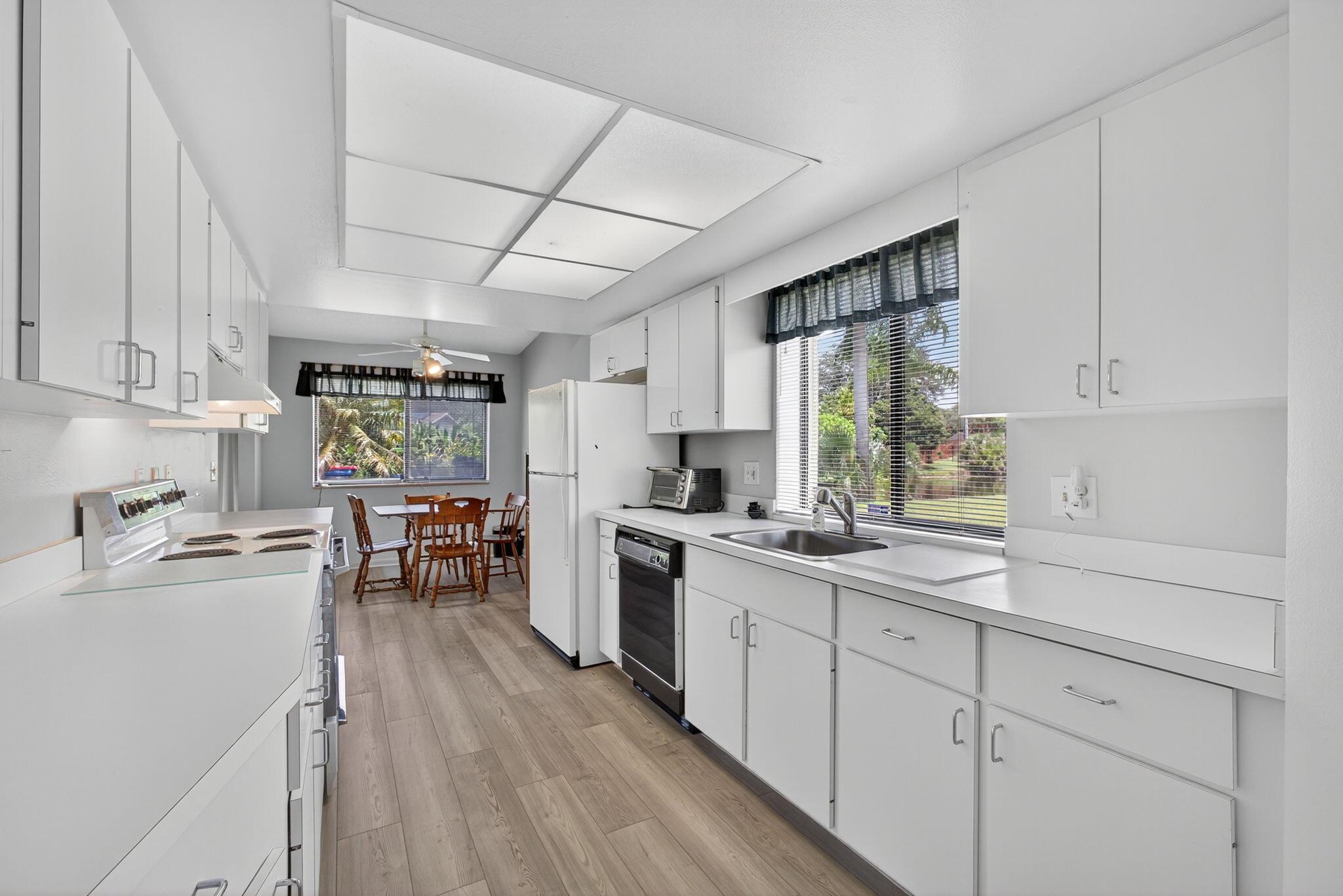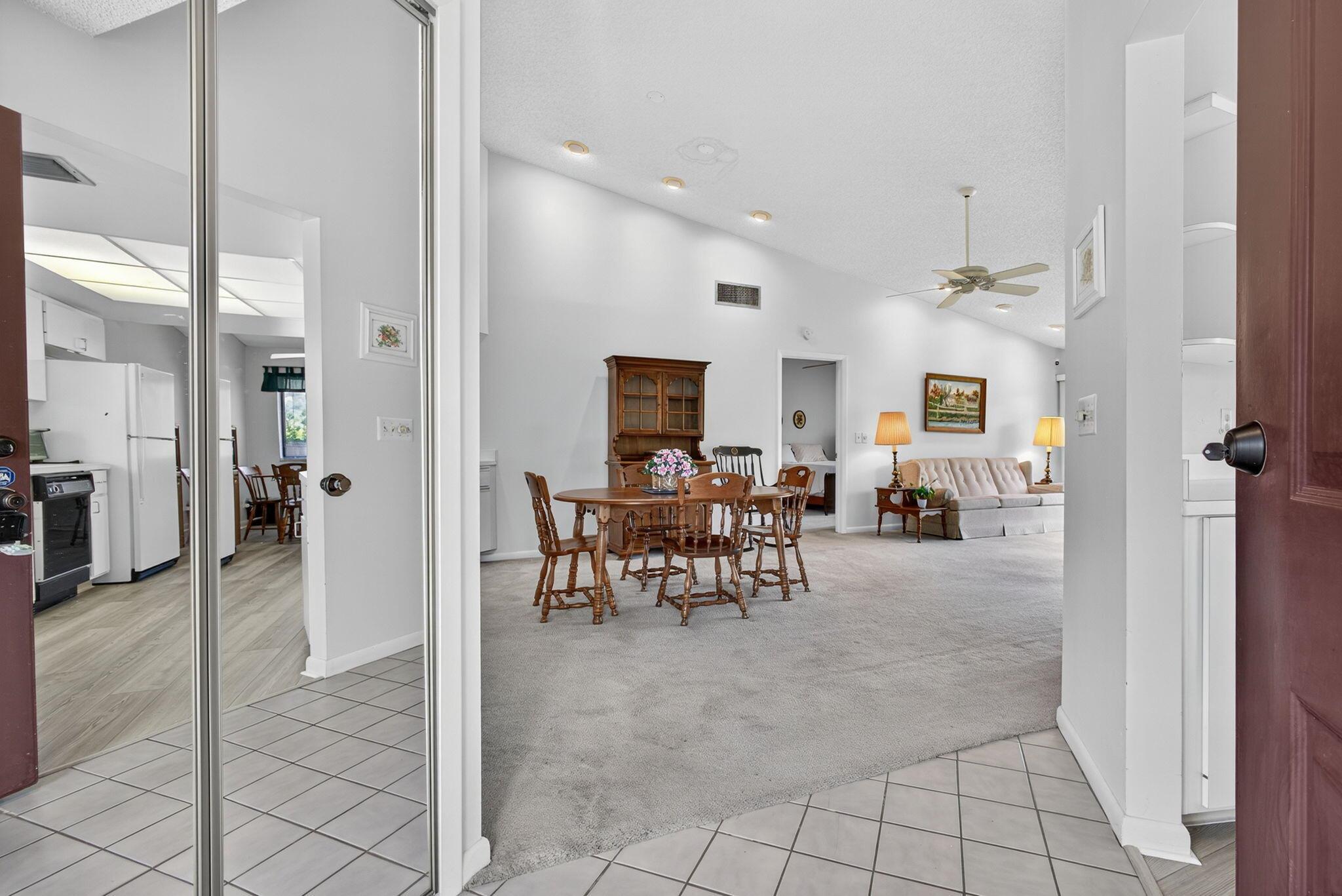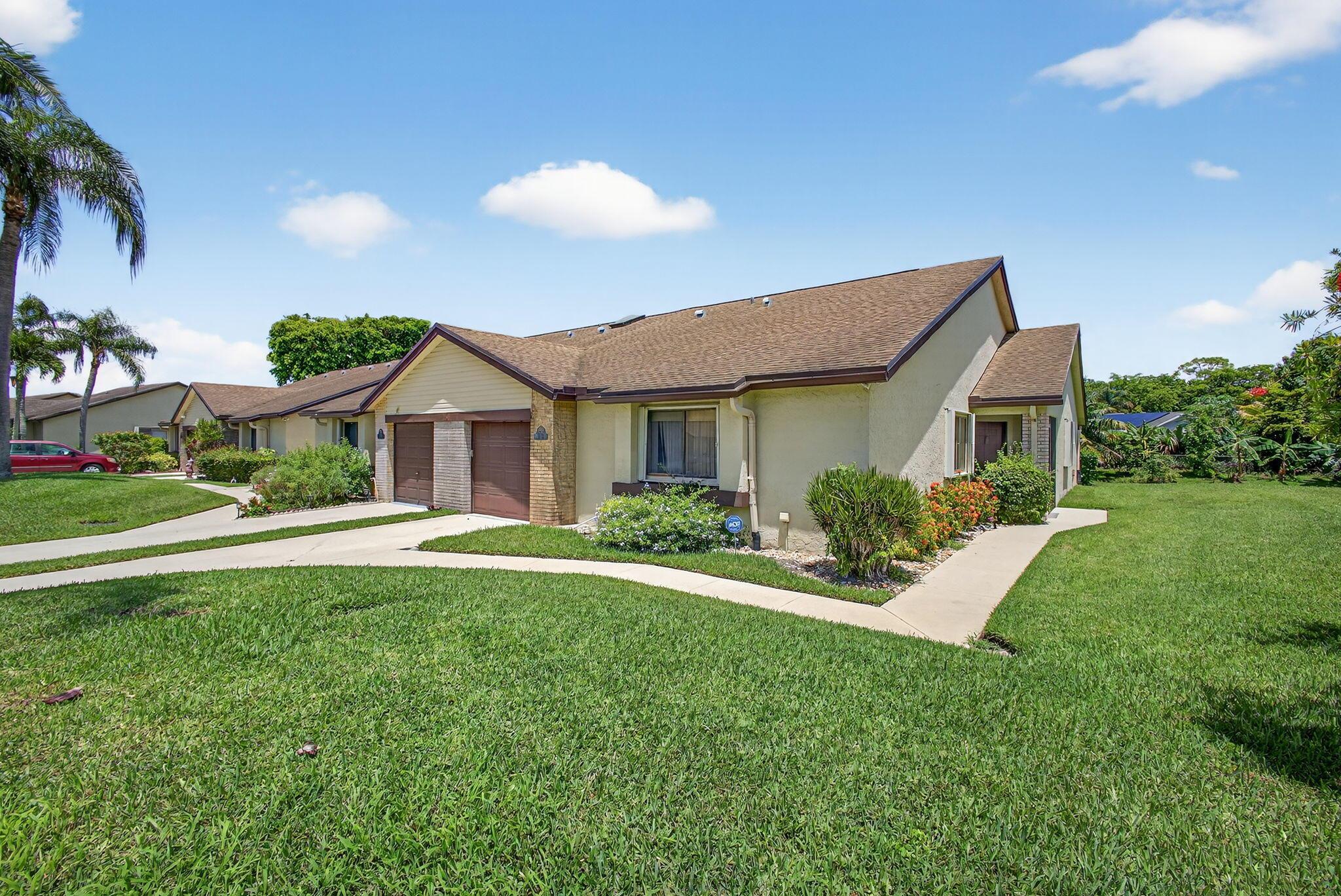 Wonderful corner Villa in the beautiful and quiet Village Walk Community (Royal Palm Beach), relax in your backyard with a lake view in this 3 bed, 2 bath Villa with updates. Roof 2019, A/C completely new 2024. Lovely vaulted living room and family room allowing lots of natural light, kitchen and primary bathroom features newer cabinets & countertops, private laundry room, with plenty of storage space. Well maintained property in great condition, neat & clean. Community pool & hot tub to enjoy and relax. This great home is located just minutes away from fine shopping, dinning and much more: RPB Recreation Center, Veterans Park, Commons Park, and more!