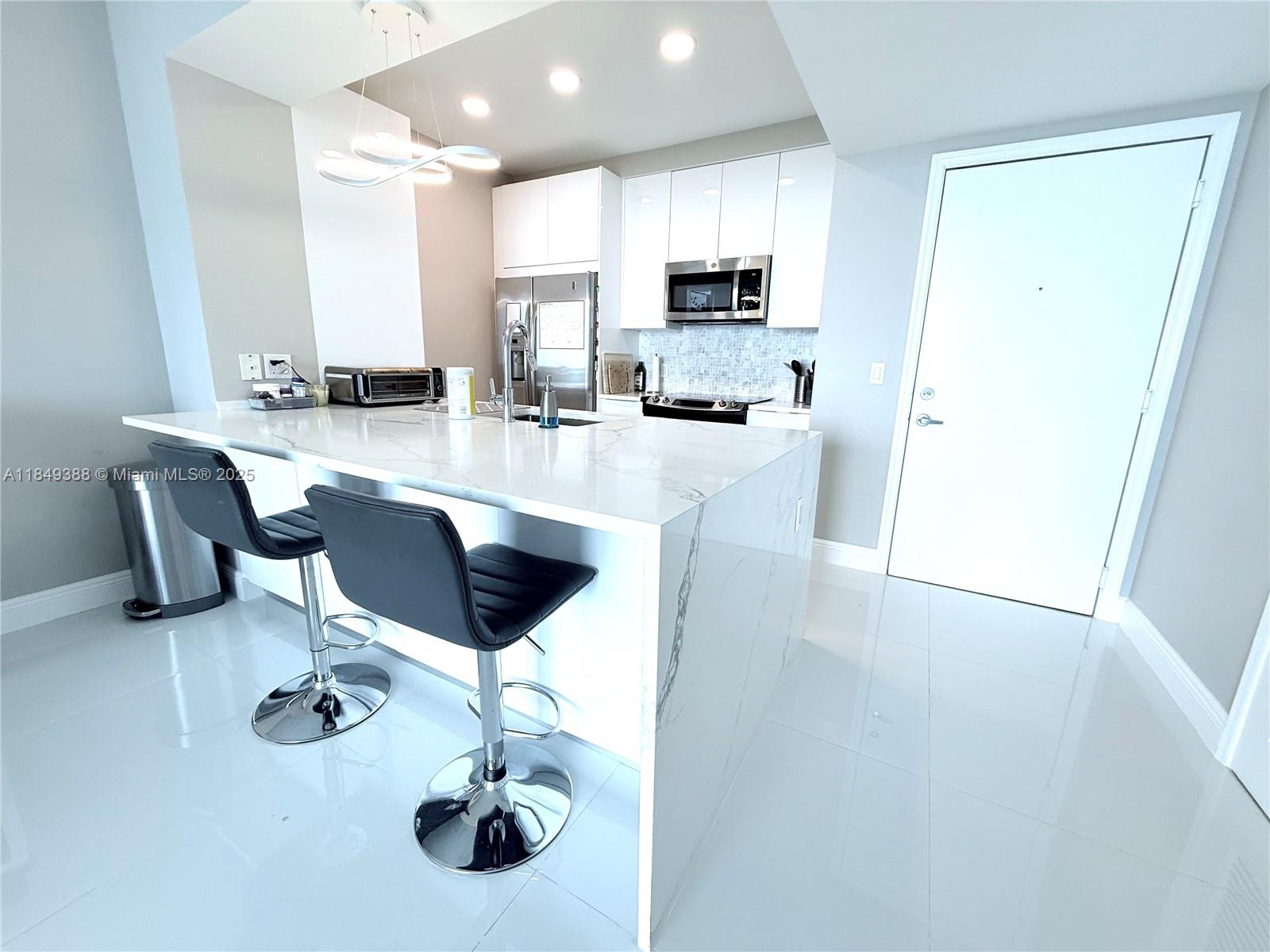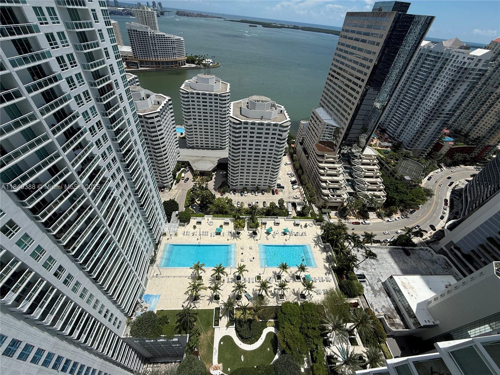 Experience unparalleled luxury in this spectacular 34th-floor, 1-bedroom, 1-bathroom unit offering direct Biscayne Bay views. This residence boasts brand-new flooring and a remodeled kitchen and bathroom featuring modern stainless steel appliances, sleek countertops, and contemporary cabinetry. Enjoy an array of world-class amenities including 24-hour security, concierge, and valet parking, state-of-the-art fitness centers in each tower, two infinity-edge heated pools, a steam room, theater room, business center, party room, and a pool table lounge. Perfectly situated for urban living, you're just a short walk from Mary Brickell Village and Brickell City Centre mall. Water, basic cable, and internet are included, along with one assigned parking space.