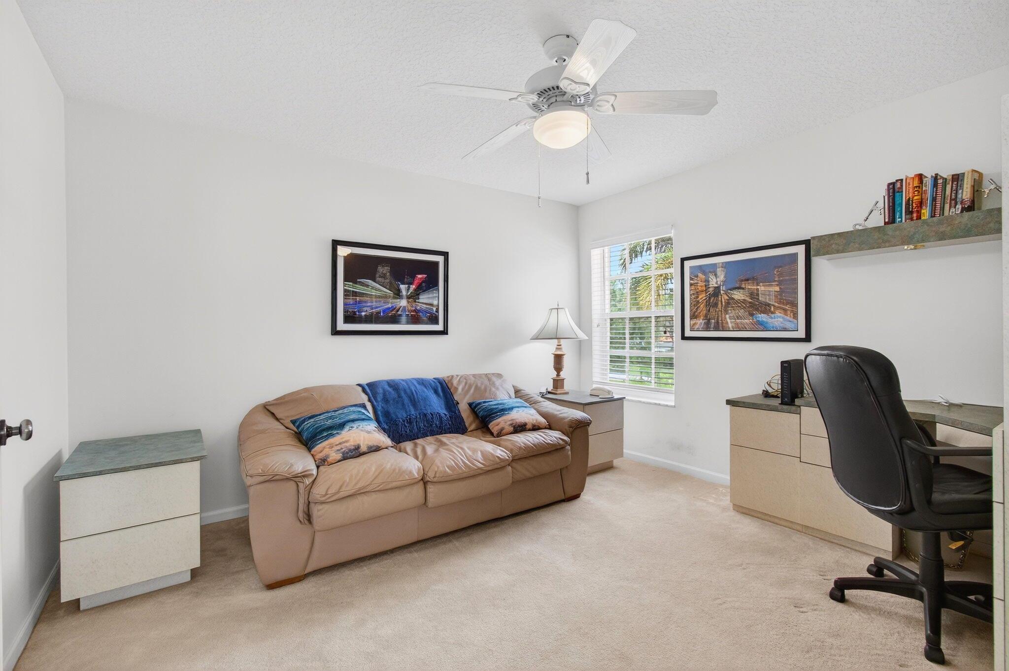 This beautifully maintained abode at 7676 Springwater Place, Boynton Beach, FL beckons those who value quality of life and top-tier amenities. Encased in the heart of the serene Palm Isles community, your future home is designed for comfort and functionality that complements Florida's engaging climate.The exterior attributes of the property envelop you with a sense of safety courtesy of the partial accordion shutters, safeguarding your tranquility especially during Florida's occasional tumultuous weather. The views of the water scene escort you to a realm of peace, a quintessential stance prominent from the screen-enclosed patio.