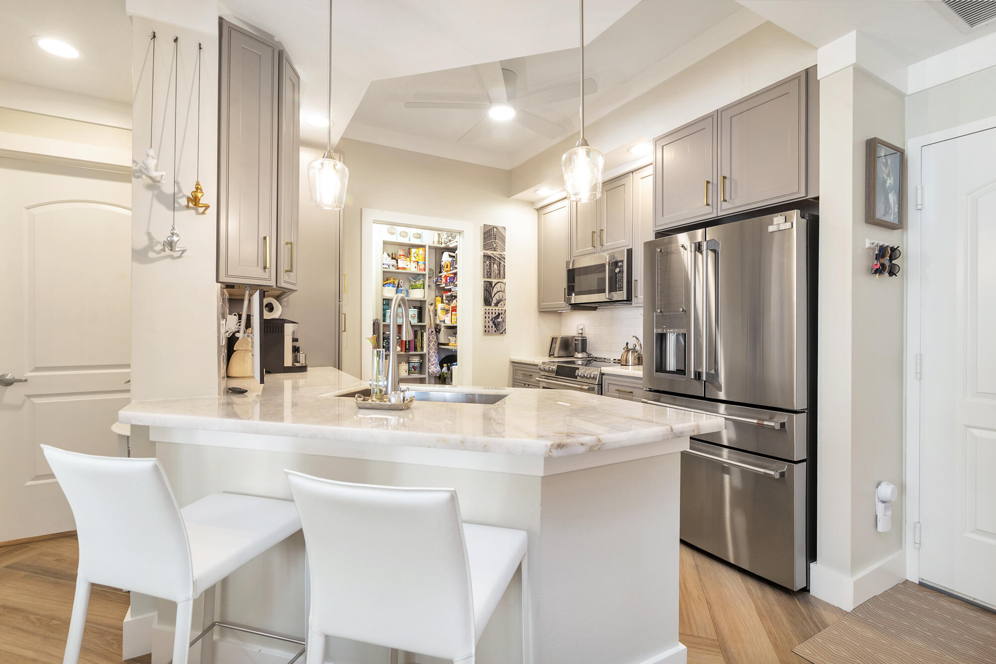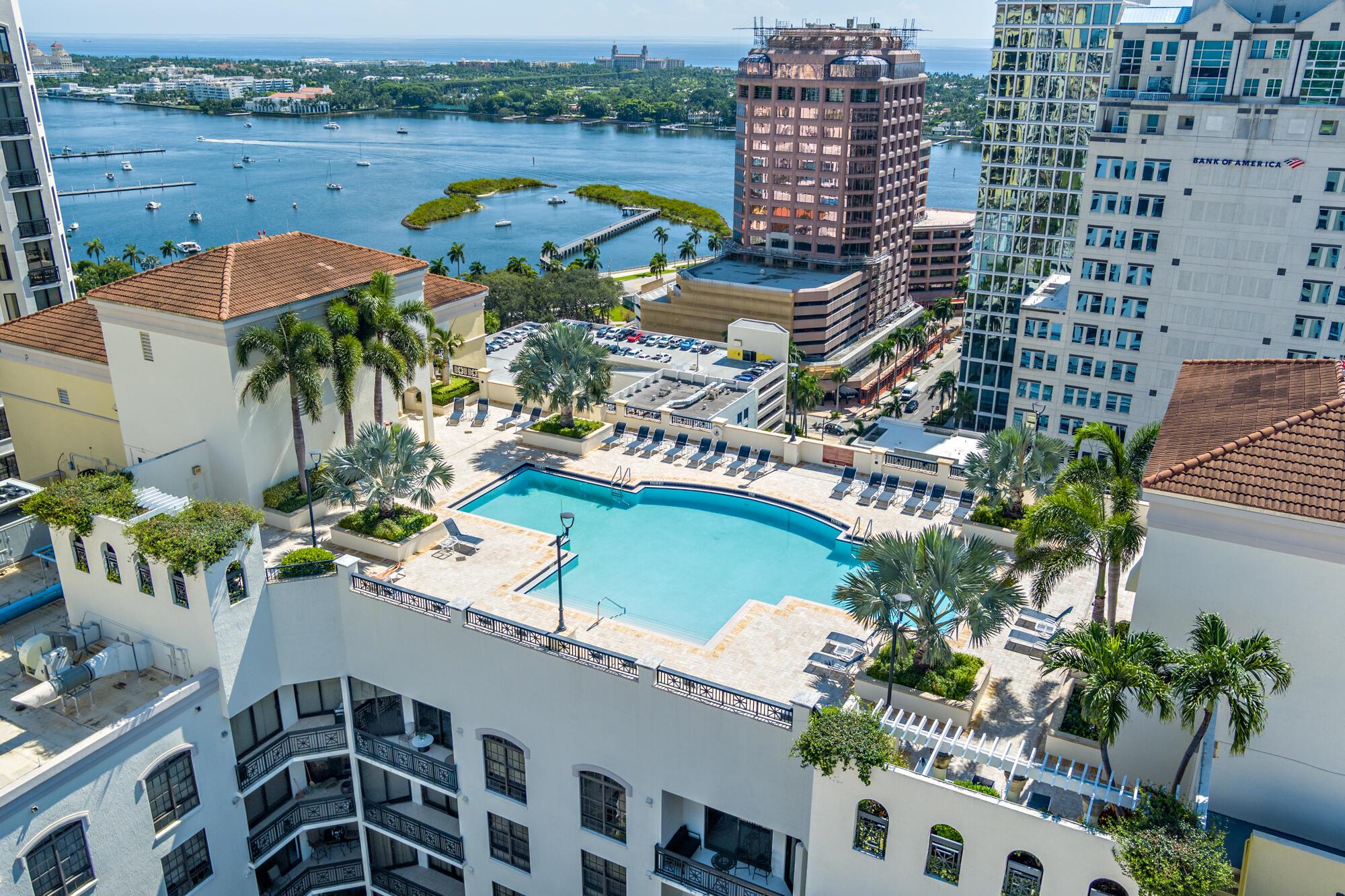 Welcome to your private oasis in the heart of CityPlace, West Palm Beach within the impeccably managed One City Plaza. This stunningly renovated 2BR/2BTH features rich, wood tile flooring, new appliances, an induction stove, California closets, and a spacious split floor plan with separate dining and breakfast bar. Bathrooms are adorned with quartz countertops, Brondell bidets and designer wallpaper. Electric shades, custom lighting, and a wraparound balcony create a serene retreat for you and your pets. Rarely offered: two assigned parking spaces and a storage unit. Enjoy resort-style living with a rooftop pool, new grilling stations, spa, sauna, fitness center, full-time doorman, valet. parking--all steps from vibrant shops, dining and fabulous Palm Beach.