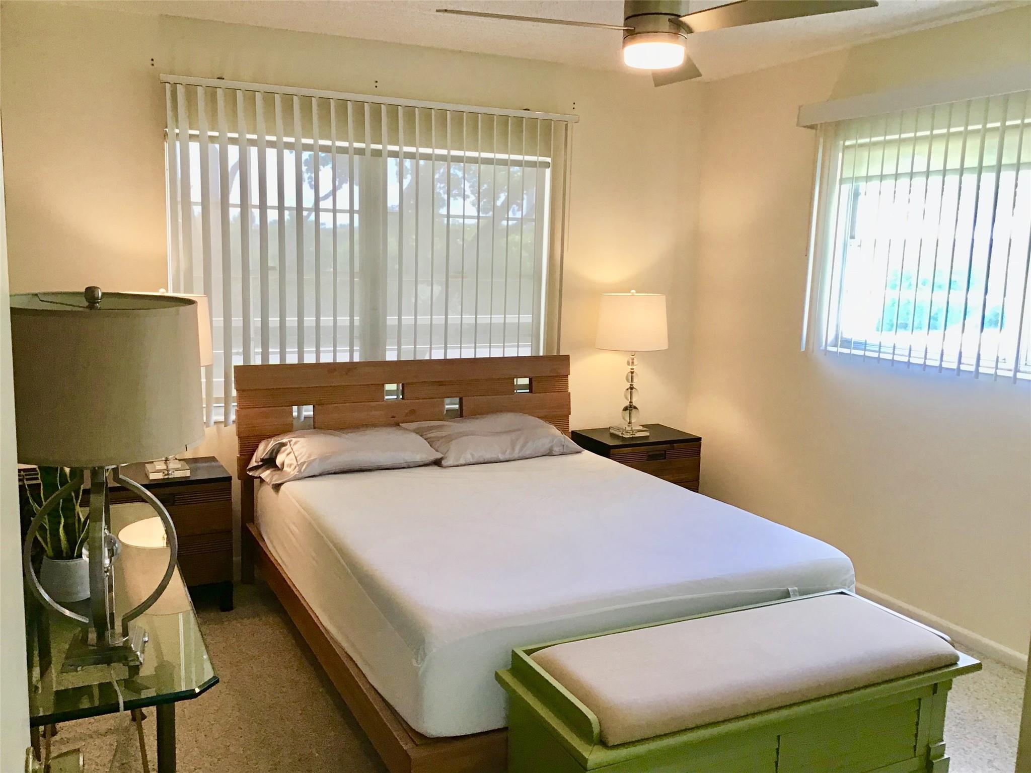 Fully Furnished Corner Second Floor 2 bedroom, 1.5 bathroom condo that gets plenty of sunlight is available for sale. Century village is an active adult 55+ community. Anyone over 18 can buy it, can be rented right away. Features an updated kitchen, walk-in bathtub/shower, good size balcony with the views of lush greenery. Very private and comfortable unit that has everything you need for a nice quiet enjoyment. Building has an elevator, a laundry room on each floor, assigned parking spot with plenty of guest parking spots available. Cable, high speed internet, water, garbage, and access to an award winning clubhouse is included in HOA. Clubhouse has a gym, 2 pools, movie Theater, daily activities, concerts, events, tennis, pickle ball and much more