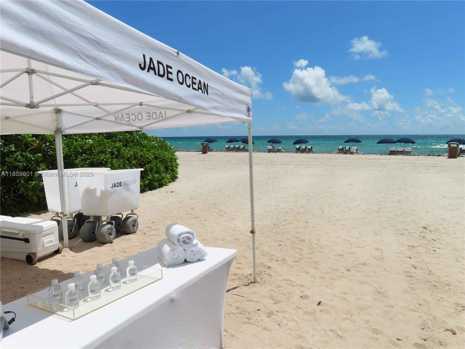 Experience the ultimate coastal lifestyle with breathtaking, direct ocean views and a spacious balcony perfect for relaxing or entertaining. This highly sought-after line offers 1 bedroom plus den and 2 full bathrooms, with the den easily convertible into a second bedroom.Perfect as a beachfront second home, this residence features porcelain floors, laundry room, and private elevator entry directly to your front door, shared by only two lines. From the moment you step into Jade Ocean, you are enveloped in sophistication, elegance, and luxury. Enjoy the fitness center with stunning views of the blue waters of Sunny Isles Beach. The city of luxury. Amenities include full beach service, spa, business center, valet, 24hour concierge, two spectacular pools with cabanas, and private beach access