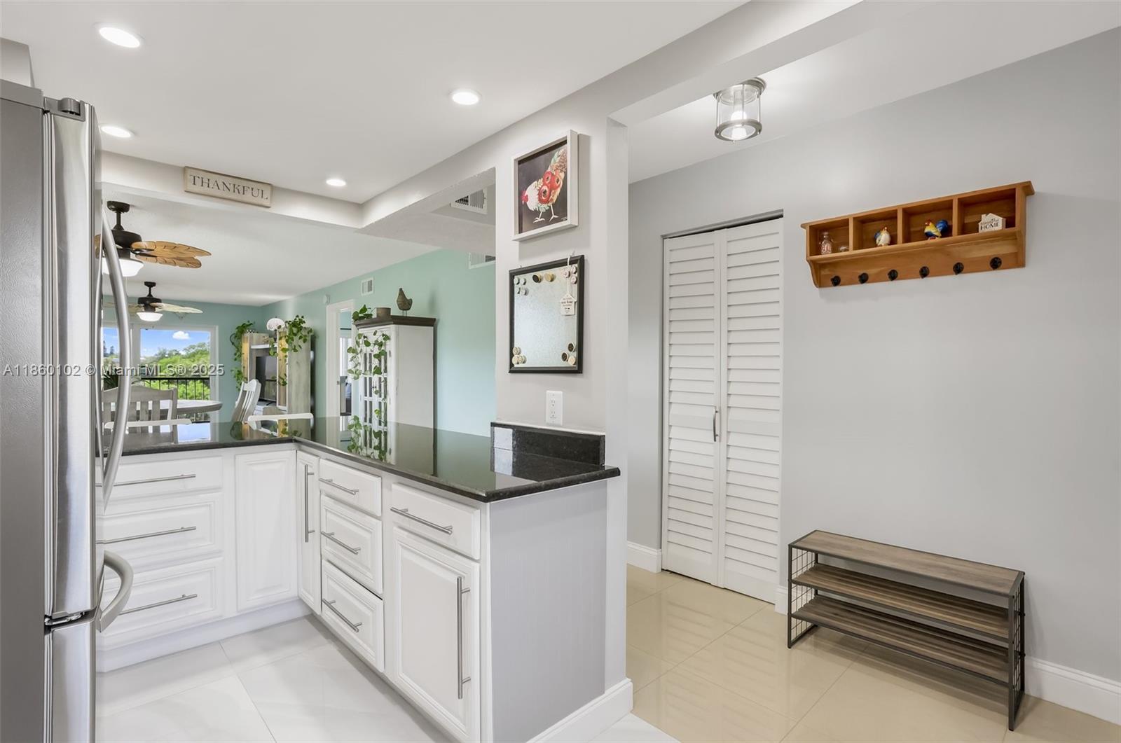 Gorgeous corner unit with stunning water views in strong condo building with reserves and completed SARS compliance. Pristine upgraded open floor plan, this rare beauty comes with a full sized washer & dryer and has it all! New granite countertops & flooring with impact windows throughout. All kitchen appliances just 2 yrs old. Purchase with comfort knowing this building just completed their 50 yr recertification this year w/roofs just 5 years old and re-thatched tiki huts at its resort style pool. NO ASSESSMENTS Enjoy a google nest thermostat and doorbell cameras w/free high speed internet & cable package. Close to it all, including major airports, shopping and highways. Take advantage of this updated and well run building and move in with no worries. A MUST SEE BEAUTY!
