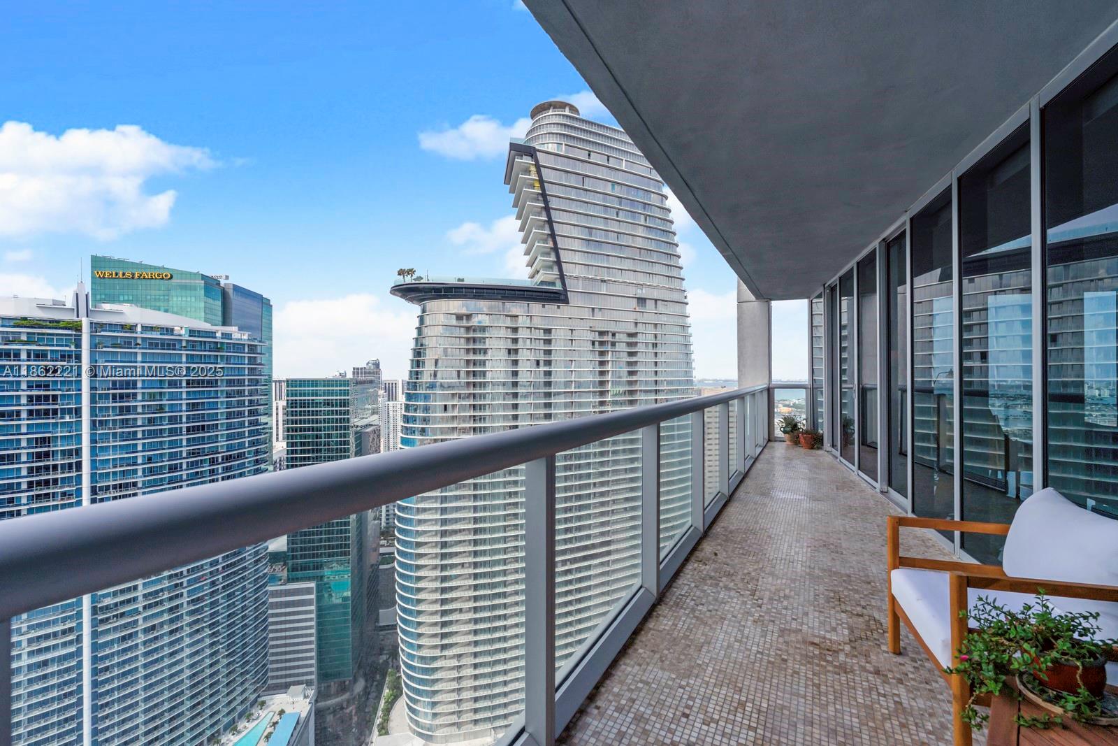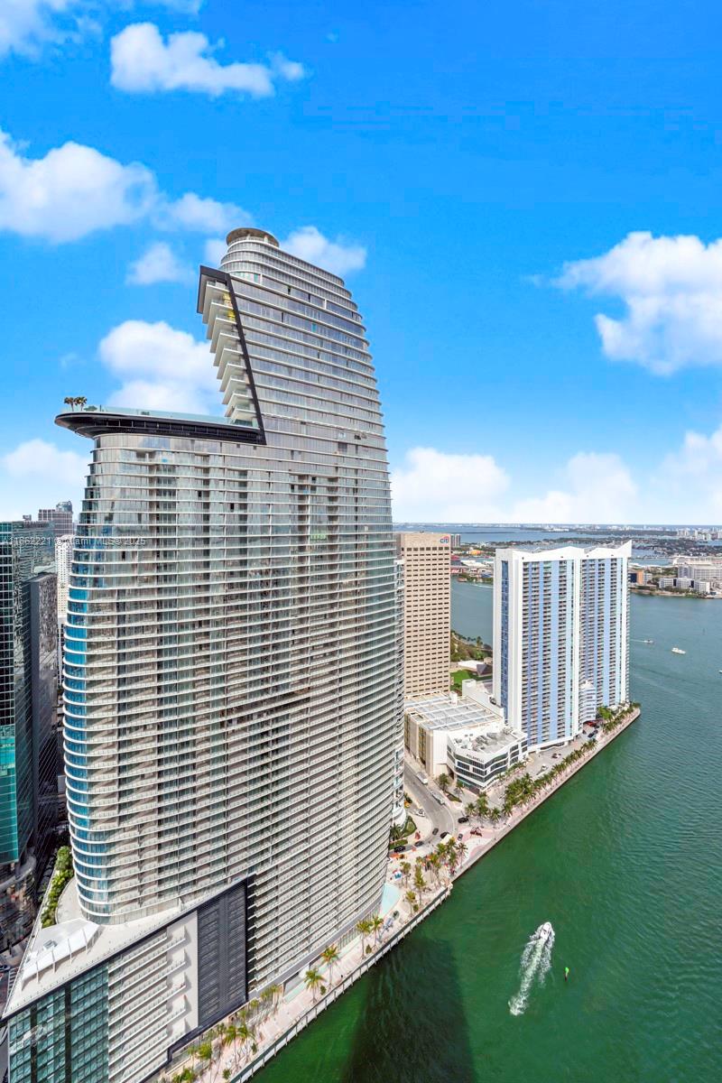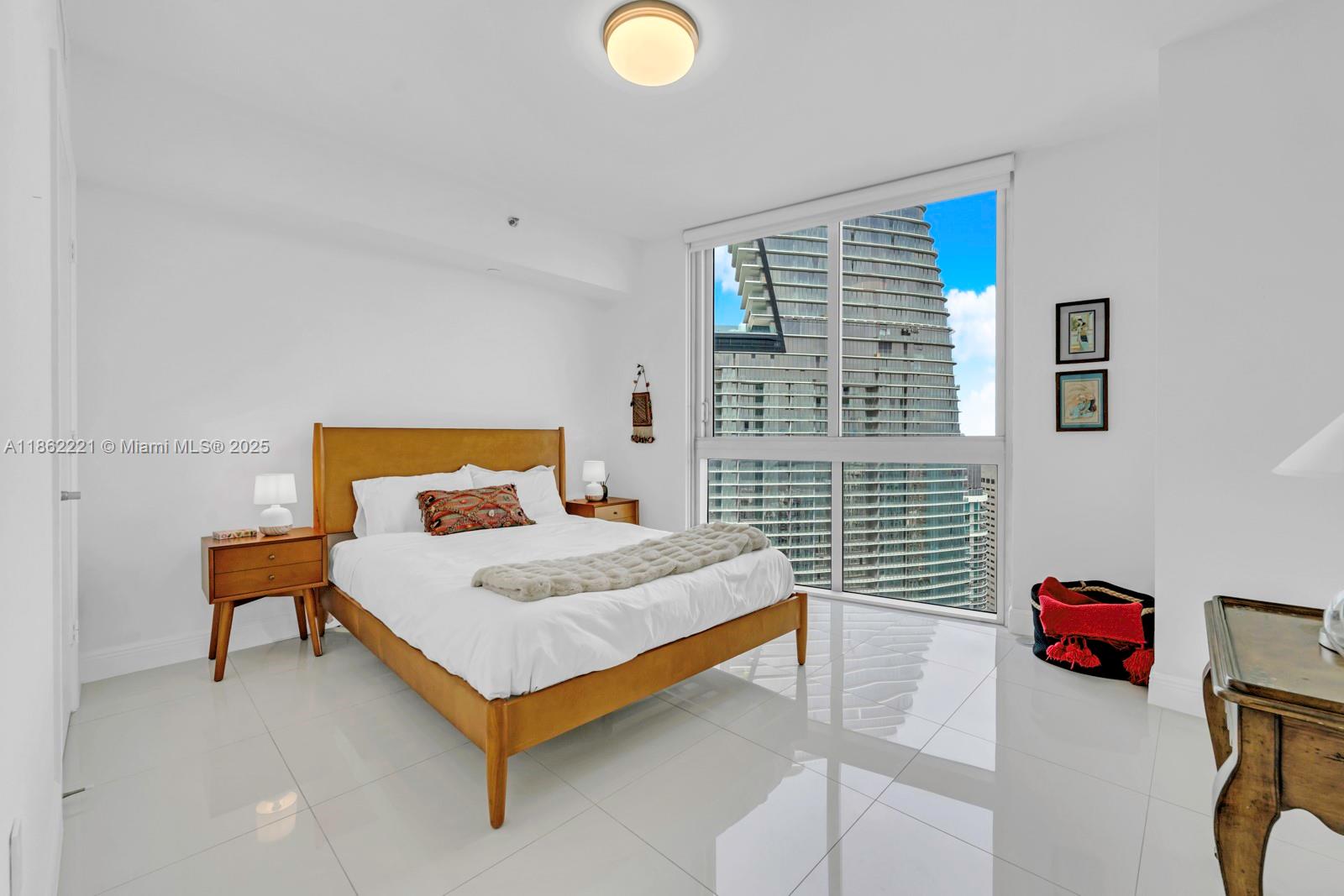 This exceptional 2-bedroom, 2-bathroom corner unit on the 50th floor, offers breathtaking water and city views through floor-to-ceiling impact windows. The residence features elegant Italian white porcelain tile throughout, an open kitchen with premium stainless steel appliances (WOLF/Subzero), custom-built closets, and electric curtains/shades. The master suite includes two walk-in closets for ample storage. ICON Brickell offers residents world-class amenities, including two 5-star restaurants, a state-of-the-art spa, an infinity pool, valet service, 24/7 security, a gym, and a theater.