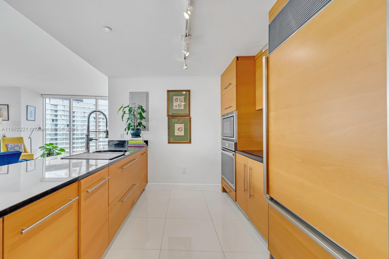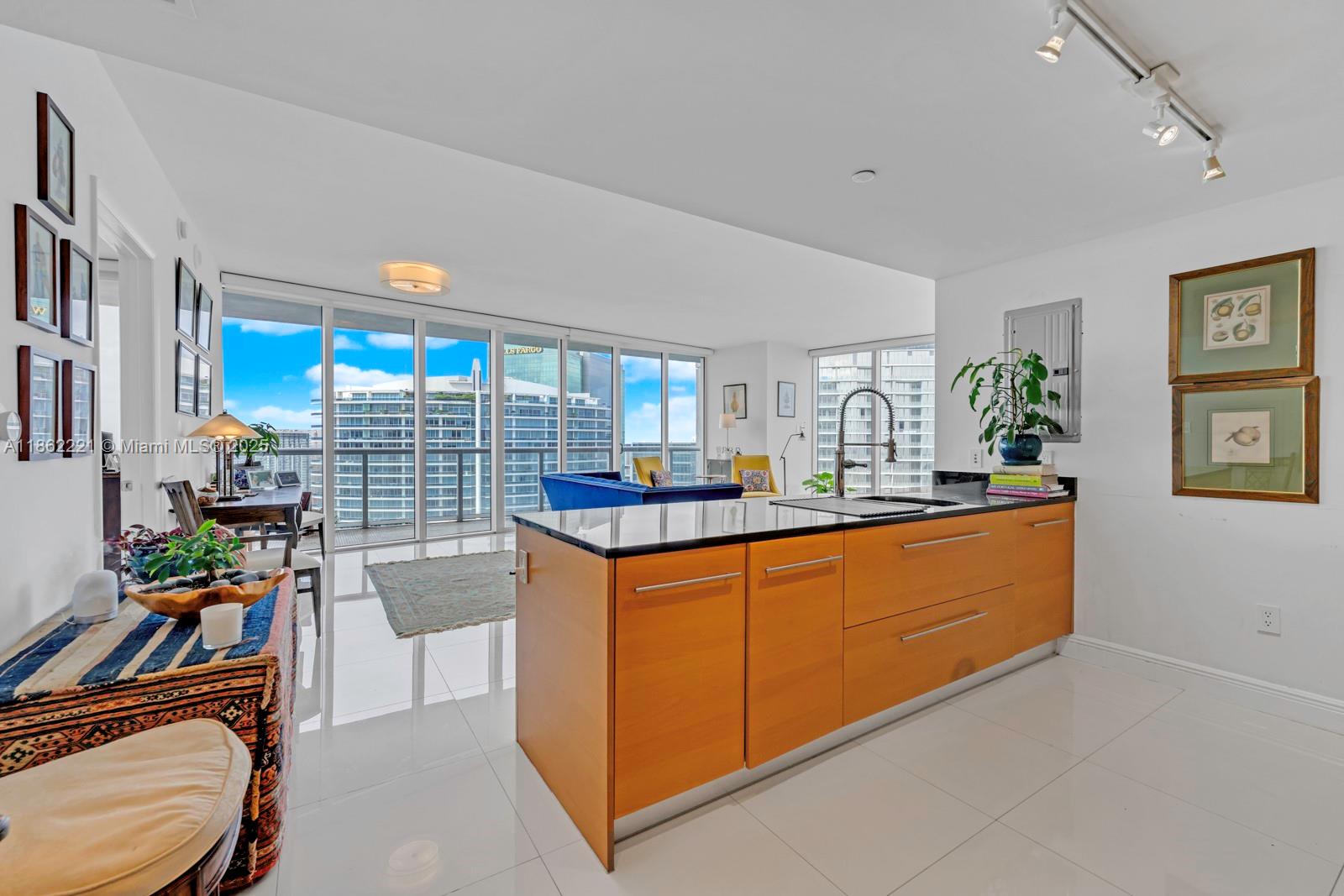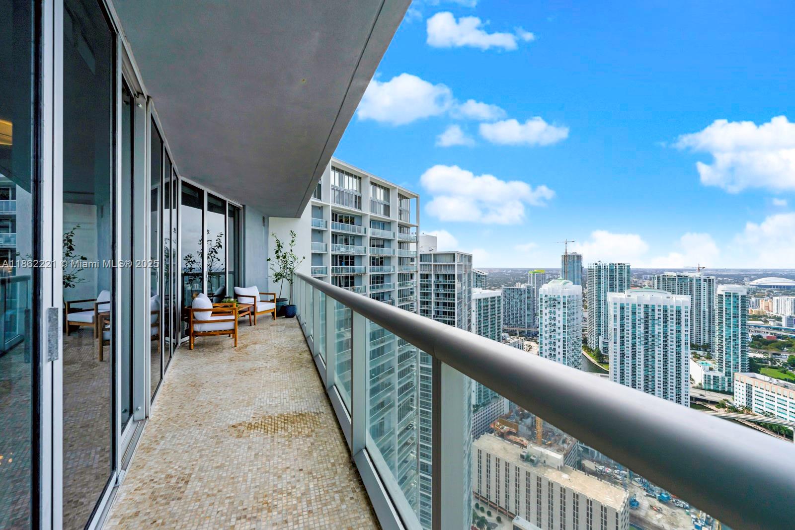 This exceptional 2-bedroom, 2-bathroom corner unit on the 50th floor, offers breathtaking water and city views through floor-to-ceiling impact windows. The residence features elegant Italian white porcelain tile throughout, an open kitchen with premium stainless steel appliances (WOLF/Subzero), custom-built closets, and electric curtains/shades. The master suite includes two walk-in closets for ample storage. ICON Brickell offers residents world-class amenities, including two 5-star restaurants, a state-of-the-art spa, an infinity pool, valet service, 24/7 security, a gym, and a theater.