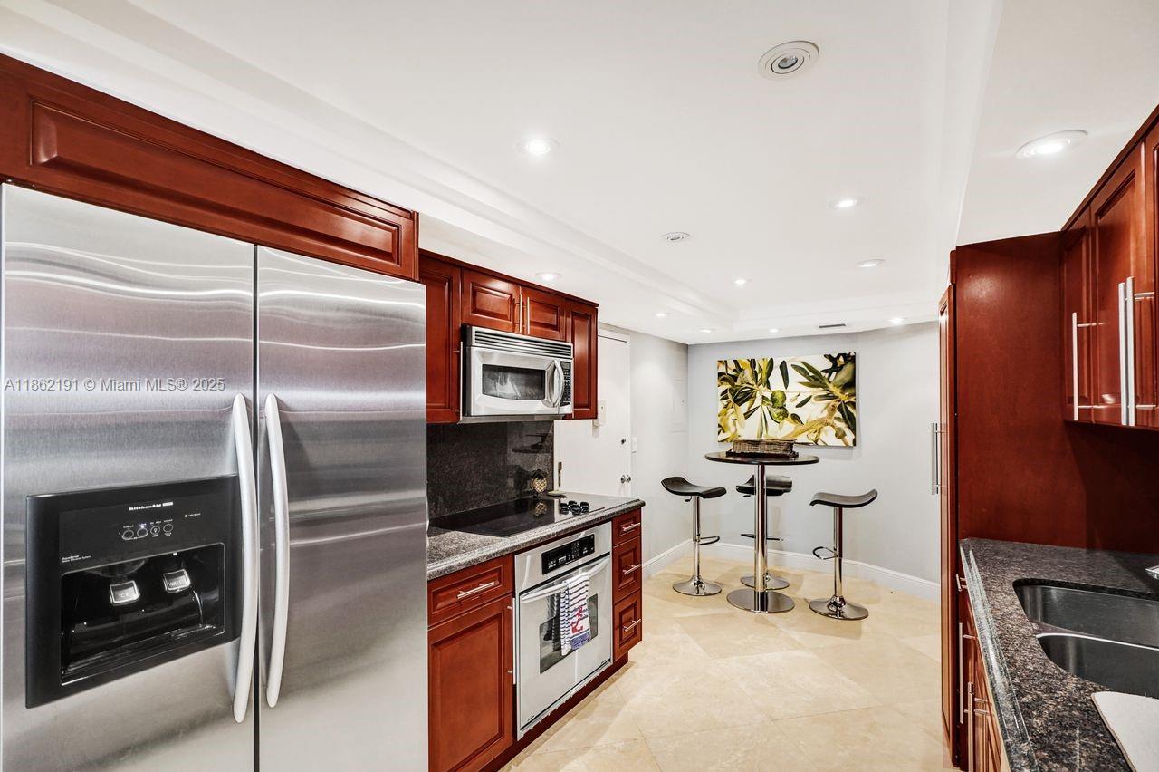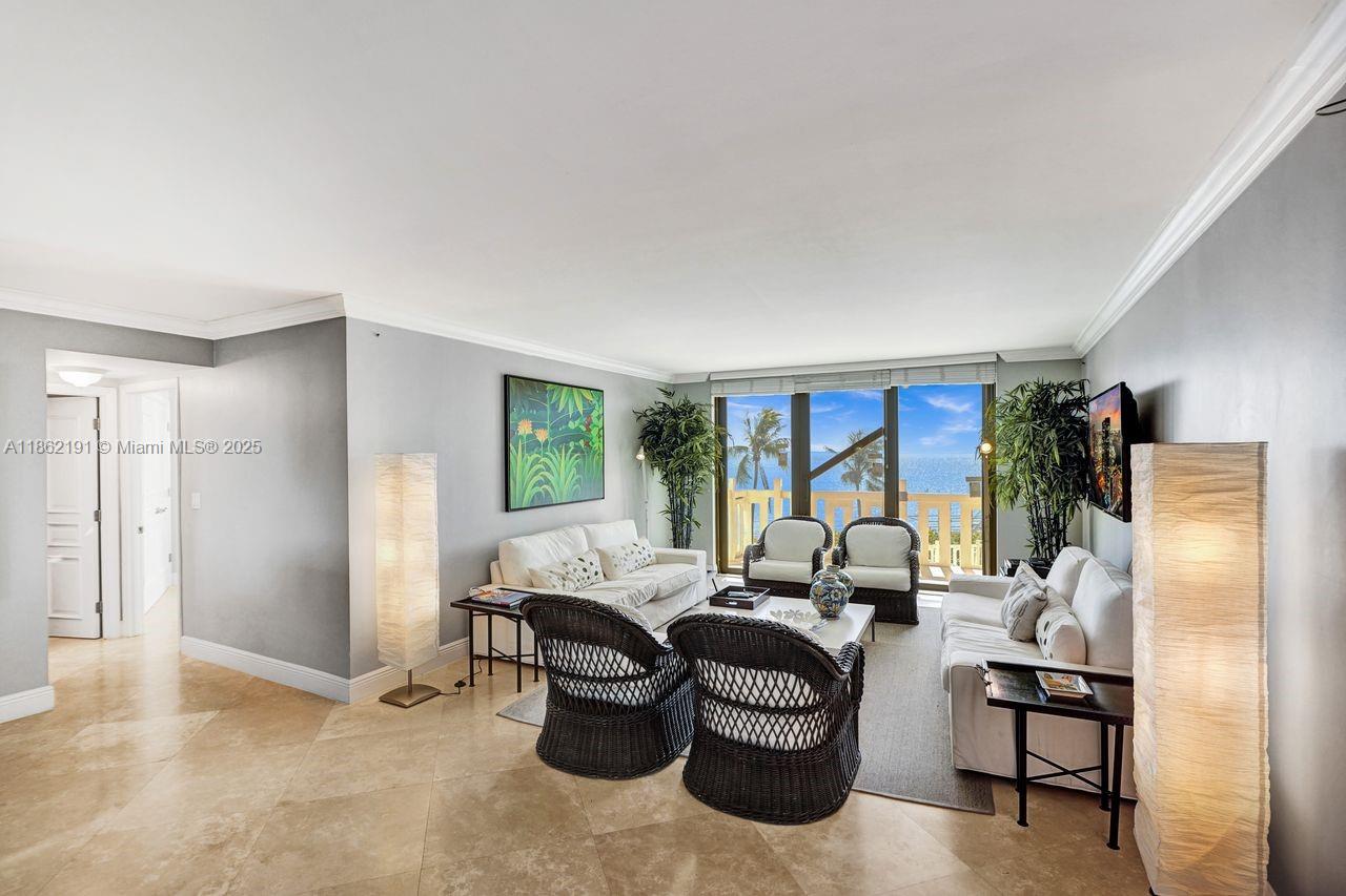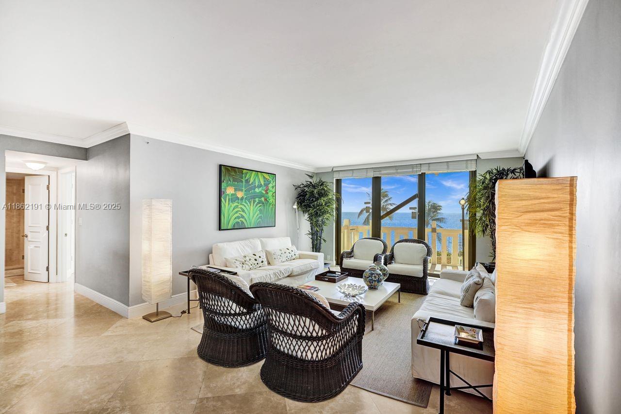 Oceanfront split-bedroom residence with direct ocean views from every room. Features an eat-in kitchen, ample closet space, and natural stone flooring throughout. Beautifully remodeled and equipped with impact-resistant windows and doors. Direct beach access. Easy to show.