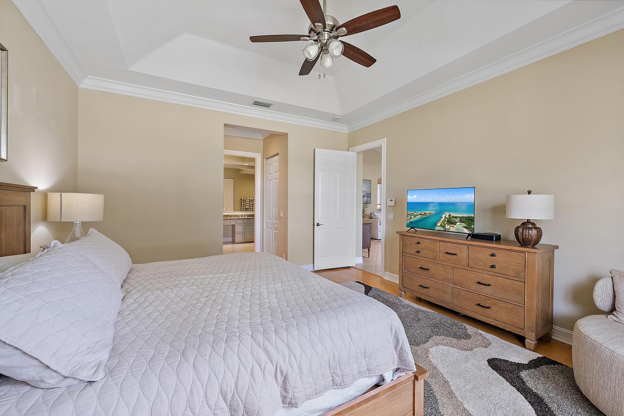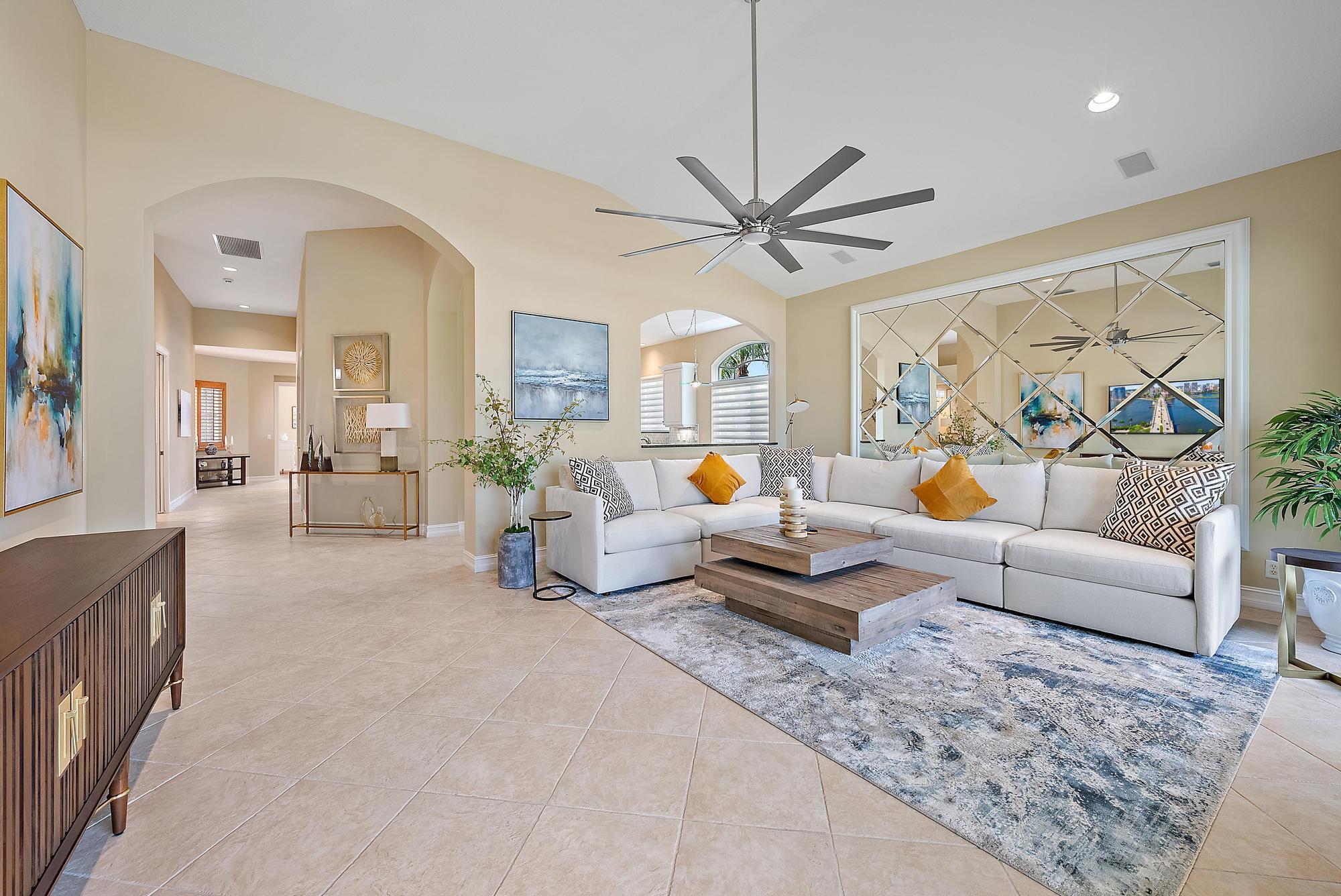 Boasting one of the most picturesque golf and water views in the Club at Ibis, this TURNKEY, designer-done 3BR/3BA+Den upstairs luxury condo is move-in perfect. Located in Orchid Hammock, this 2664 sf condo features a PRIVATE ELEVATOR, plus a private staircase, IMPACT GLASS, soaring ceilings and a private balcony overlooking the 14th and 15th holes of the brand new, Nicklaus-designed Heritage Course. Luxurious moldings, Designer light fixtures, brand new designer window treatments in Primary Suite, Living Room and Kitchen. Sleek automated shades complimented by designer silhouettes. In 2025, brand new furniture and lighting totaling more than $40,000 was procured, which all conveys with the unit. In 2022 a new 50-gallon hot water heater was installed.