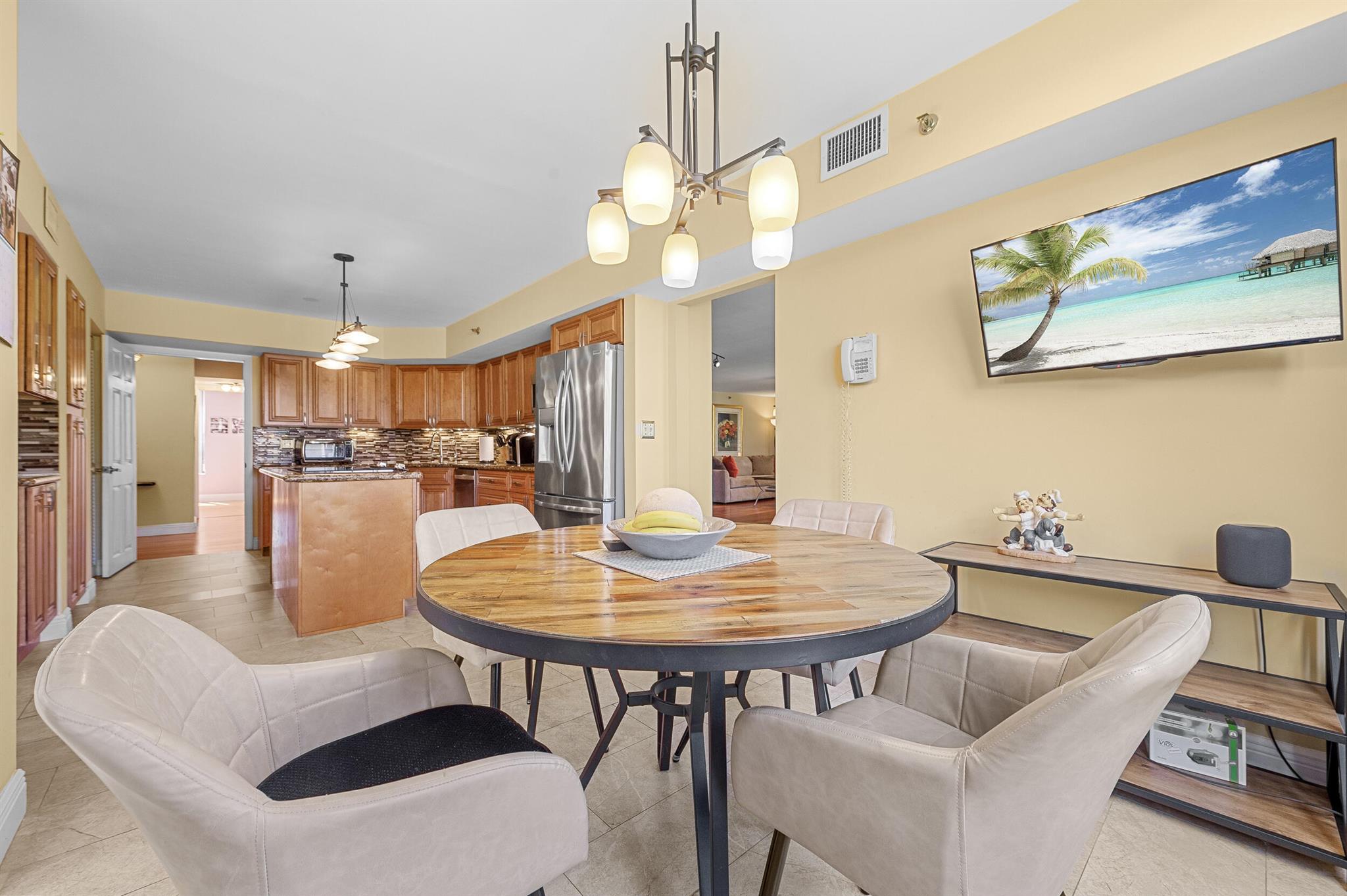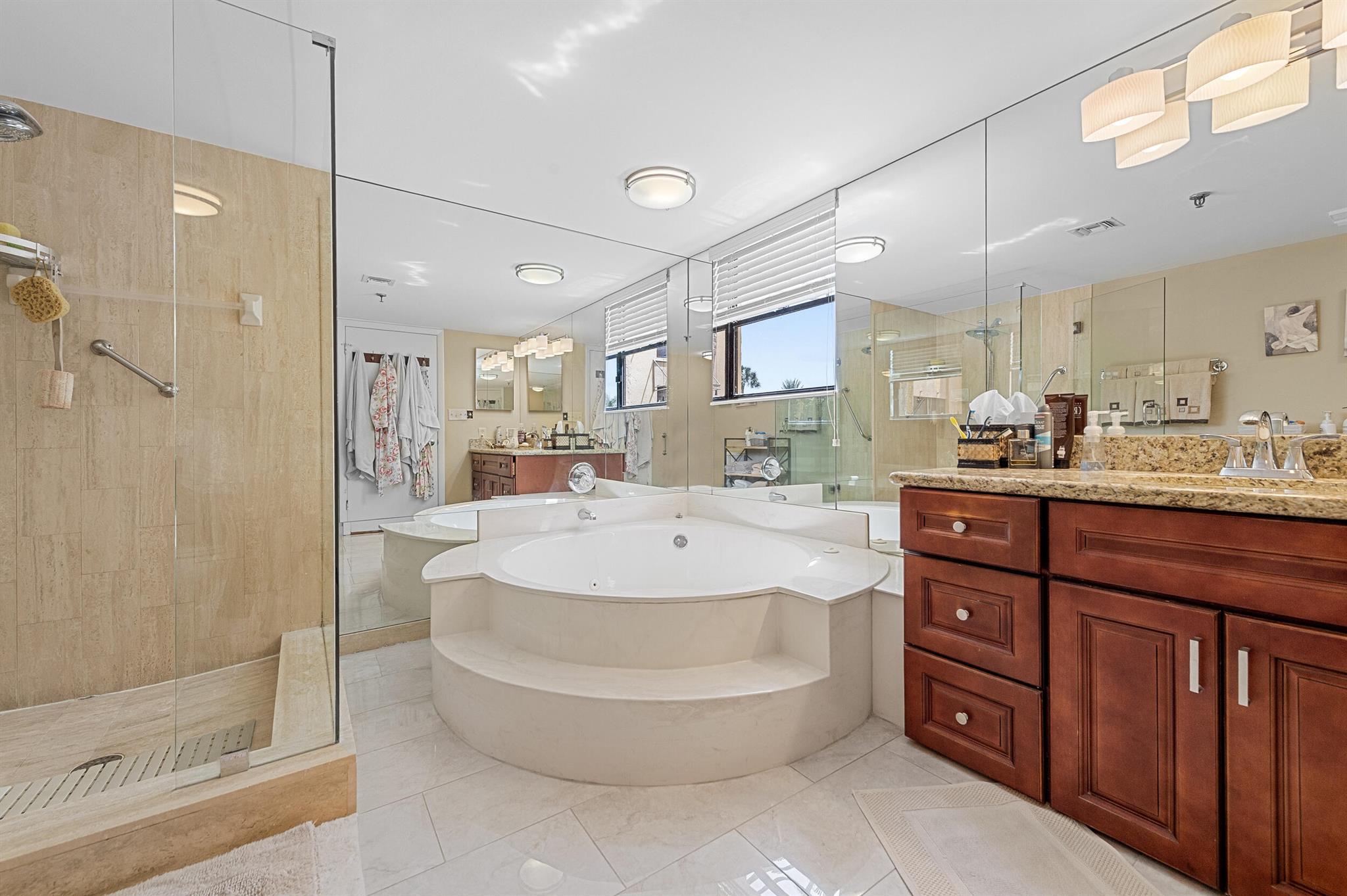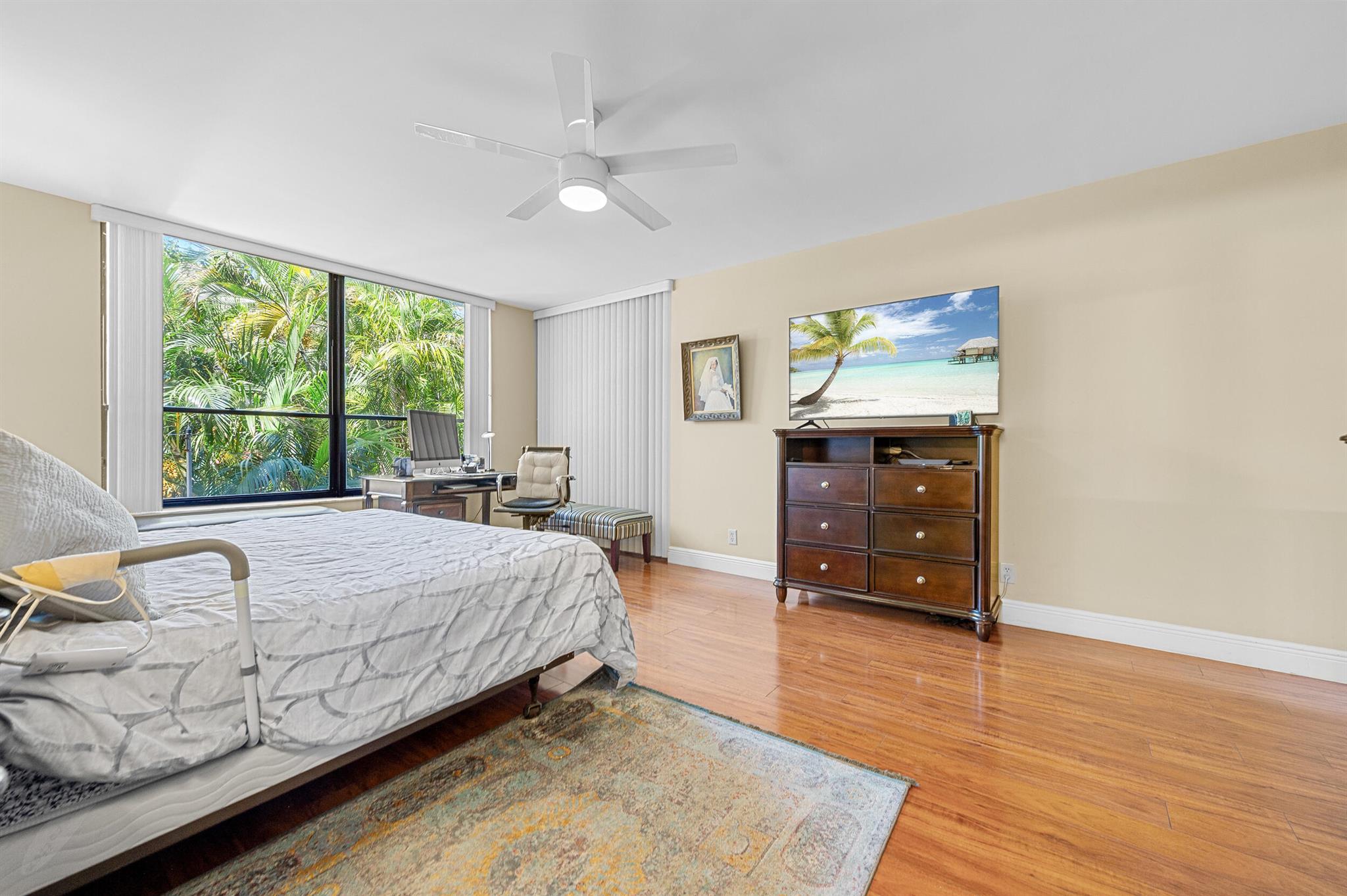 Spacious 3BR/2.5BA condo in the Promenade with the community's largest floor plan! Enjoy tropical garden views from the oversized enclosed terrace, just steps from the clubhouse and pool. Features include wood & laminate floors, smooth ceilings, and a versatile den/3rd bedroom with Murphy bed. The eat-in kitchen offers granite counters, wood cabinetry, stainless steel appliances, walk-in pantry, and pull-out drawers. Primary suite has 2 walk-in closets and an updated bath with dual sinks, vanity, soaking tub & separate shower. Upgrades include newer appliances, 2 ACs, brand-new water heater, updated baths, and laundry with utility sink. Two assigned parking spaces, extra storage, and recent building updates complete this must-see home!