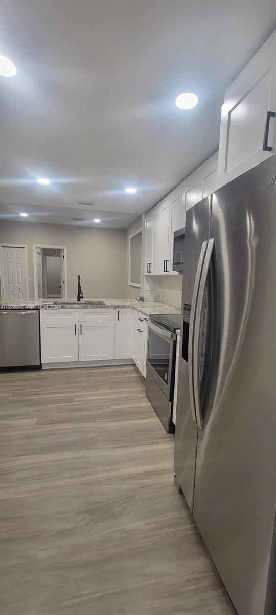Beautifully renovated property is ready for you to move in. It has a bright, open living area with new floors and modern lighting. The kitchen is the heart of the home. It features white cabinets, granite countertops, stainless steel appliances, and a breakfast bar, making it ideal for both cooking and entertaining. The master bedroom is large and comfortable, with plenty of closet space. The other rooms are perfect for family, guests, or even a home office. Bathrooms are updated with stylish finishes. Outside, enjoy a private screened patio. It’s a perfect spot to relax in the mornings or unwind at night. Close to shopping, dining, making daily life easy and convenient. Don’t miss this chance to own a modern and beautiful home! Some pictures have been enhanced