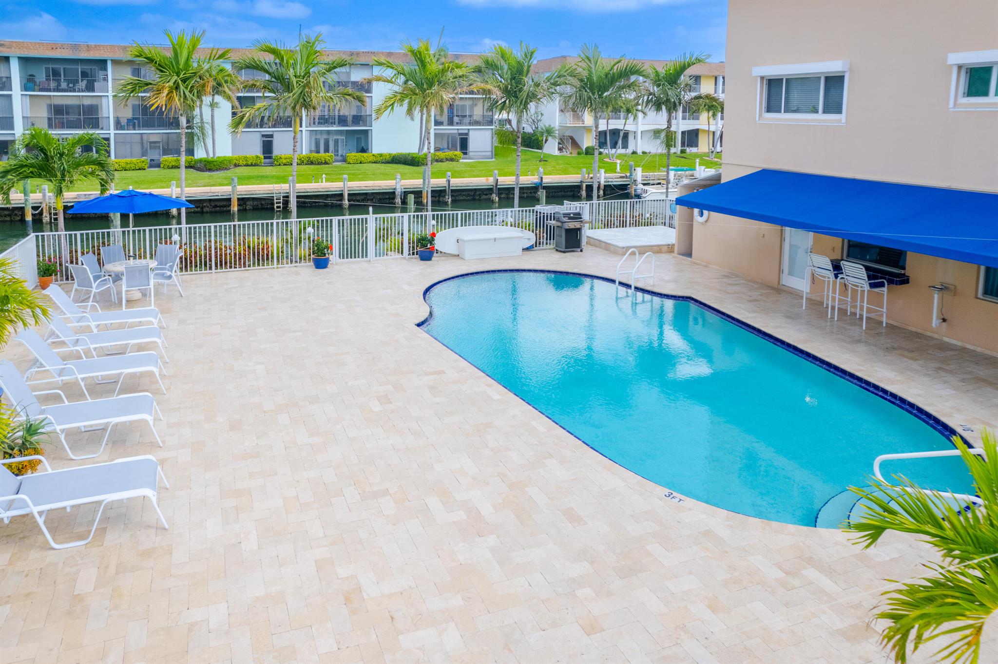 YOUR BOATERS PARADISE AWAITS for UNDER $200K!! This rare waterfront 2BR/2BA, 3rd floor end unit is a hidden gem in the active, 55+ waterfront boating community in North Palm Beach. If you own a boat or desire one, upon availability once an owner, you may lease a slip for only $1.50 per foot!! Features include; complete hurricane impact glass, fresh paint, 2017 AC, 2009 electrical panel, 2024 LG refrigerator, 2025 dishwasher & 2008 stove, 2018 water heater, Whirlpool microwave and ceramic tile flooring throughout. to You will enjoy the breathtaking morning sunrises and evening skyline views of Singer Island off your private balcony or poolside. In addition, you may rent unit after 2 years of ownership. You will LOVE the beautiful intracoastal breezes off your master bedroom screened