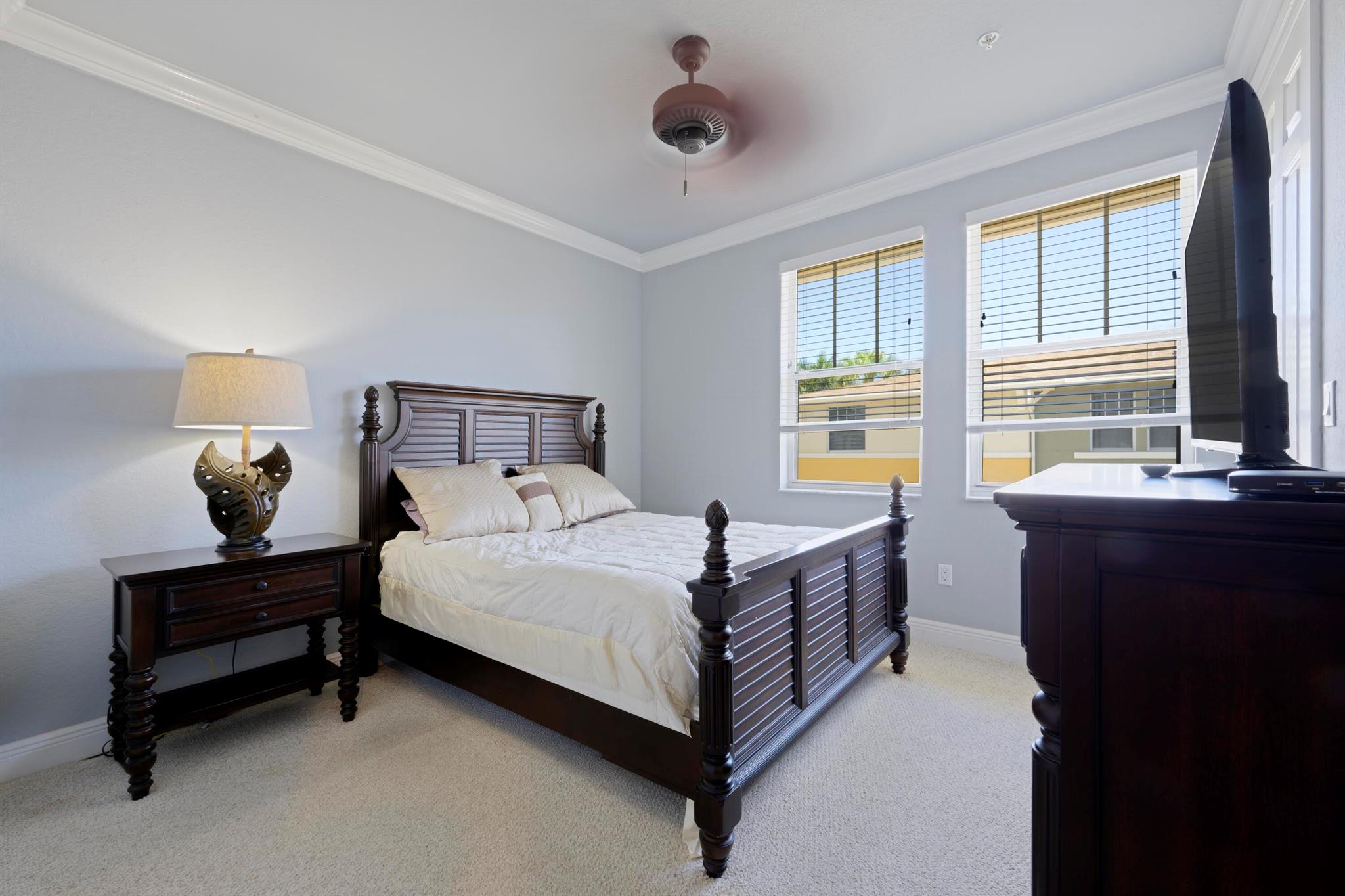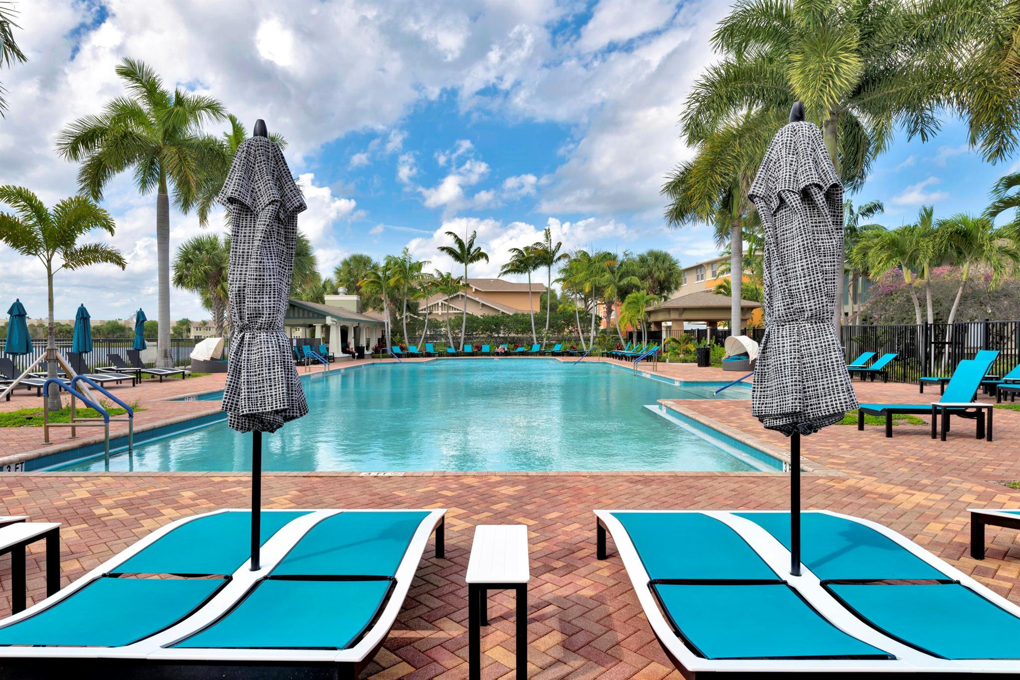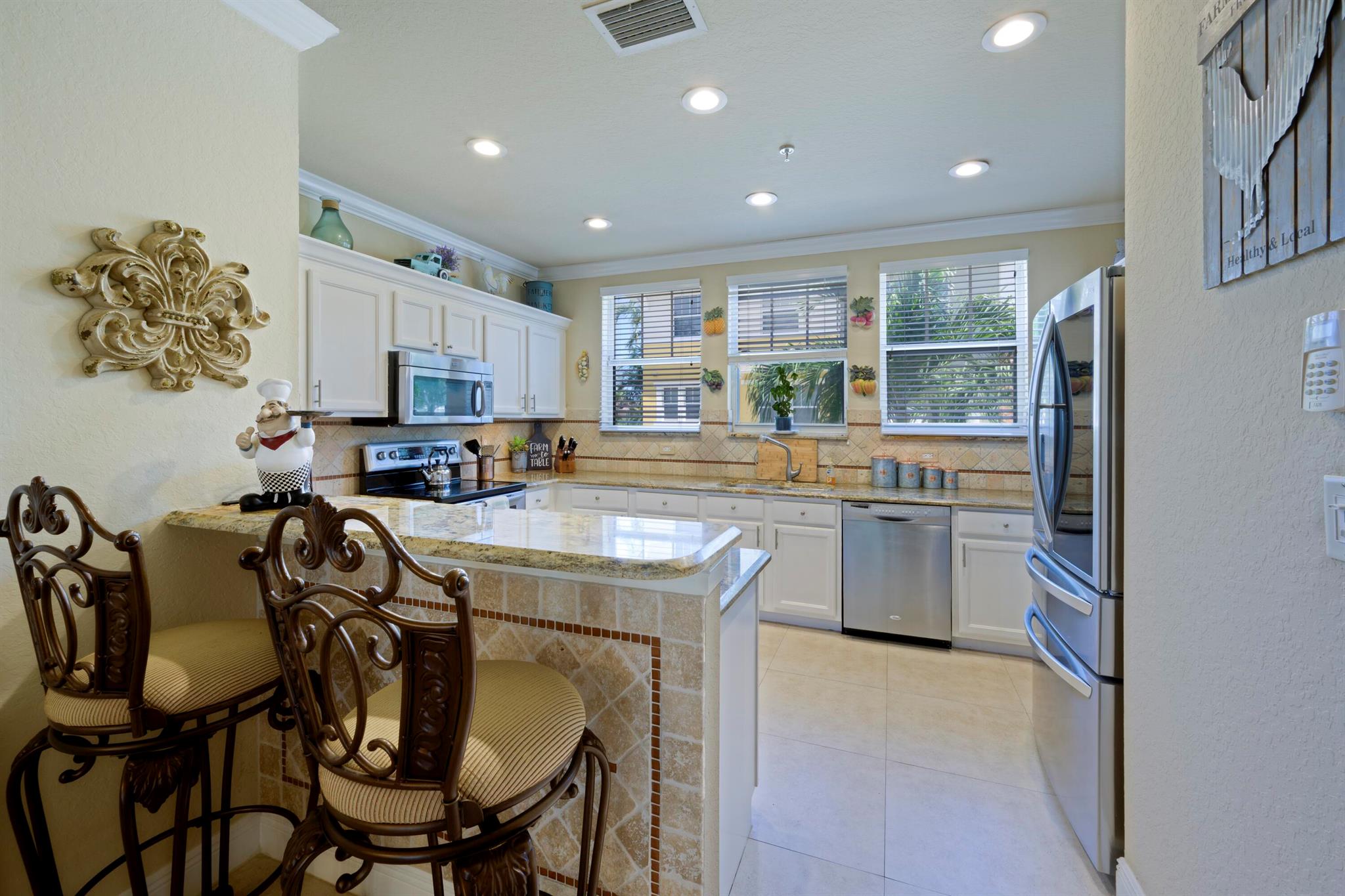 Welcome to resort-style living! This beautifully updated, move-in ready 2BR/2.5BA home offers several updates such as newer carpet and tile, paint, crown moulding, and marble countertops in the kitchen and baths. Updated bathrooms feature premium fixtures and backsplashes, while the kitchen boasts stainless steel appliances. A/C 2020. Flexible space on the first floor. HOA includes water, sewer, cable, Wi-Fi, exterior maintenance, and 24/7 gated security. Enjoy amenities: Large community pool with plenty of lounge chairs, grill stations, clubhouse with a bar, walking/jogging paths, and a newly upgraded gym with locker rooms. Ideally located near beaches, shopping, dining, PBI Airport, I-95, and downtown WPB. Schedule your private tour today!