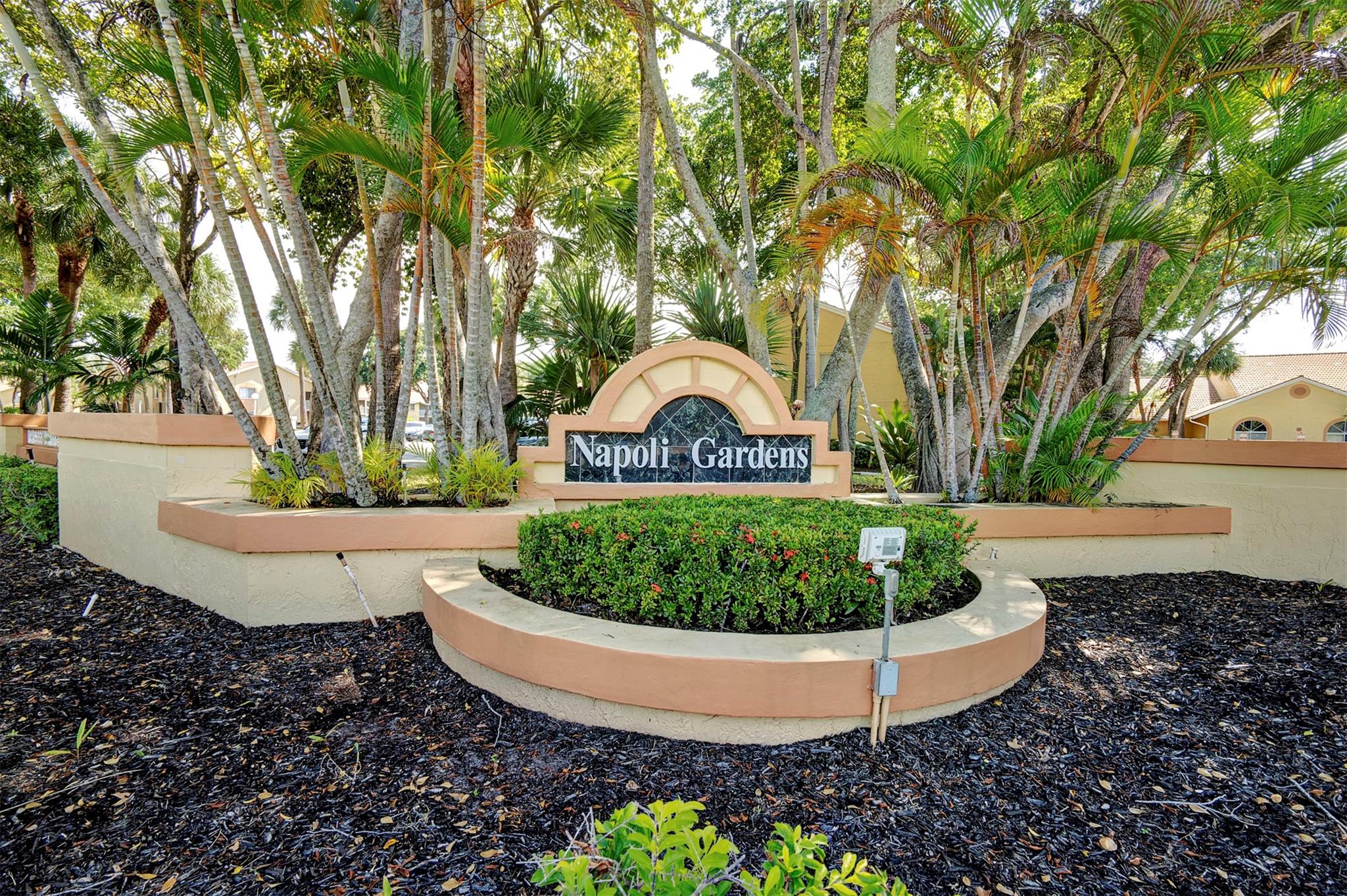 This Condo Qualifies for Low Down Payment! Step into beautiful and airy FIRST FLOOR unit in the desirable Napoli Gardens. Completely open concept with kitchen overlooking the living area. Wood-look tile throughout the main living/kitchen area and laminate in the bedroom. FULL SIZE washer and dryer, AC 2020, walk-in closet, and a private patio with storage closet and NO back neighbors. Small nook perfect for a desk or breakfast table. Resort-style amenities including pool, jacuzzi, tennis courts. PET FRIENDLY (1 pet up to 40lbs, no aggressive breeds). Close to majors highways, shopping plazas, schools, etc. Investor-friendly, can rent immediately. Healthy association and low HOA. Vacant and easy to show! *Note that some photos are virtually staged*