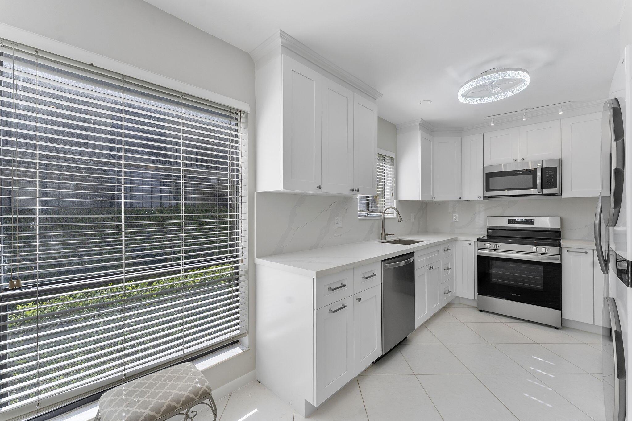 Beautifully remodeled and move-in ready, this ground-floor 2-bedroom, 2-bathroom condo offers modern comfort and convenience in the heart of East Boca Raton. Featuring an in-unit laundry and a spacious screened-in patio, this residence combines style and function for easy living. The kitchen has been tastefully updated with gorgeous quartz countertops, all-new soft-close cabinetry, and brand-new stainless-steel appliances. Enjoy a pet-friendly community. Ideally located near FAU, Mizner Park, major highways, and just 5 minutes north of Downtown Delray Beach, you'll have easy access to top-rated public schools, dining, shopping, and entertainment.