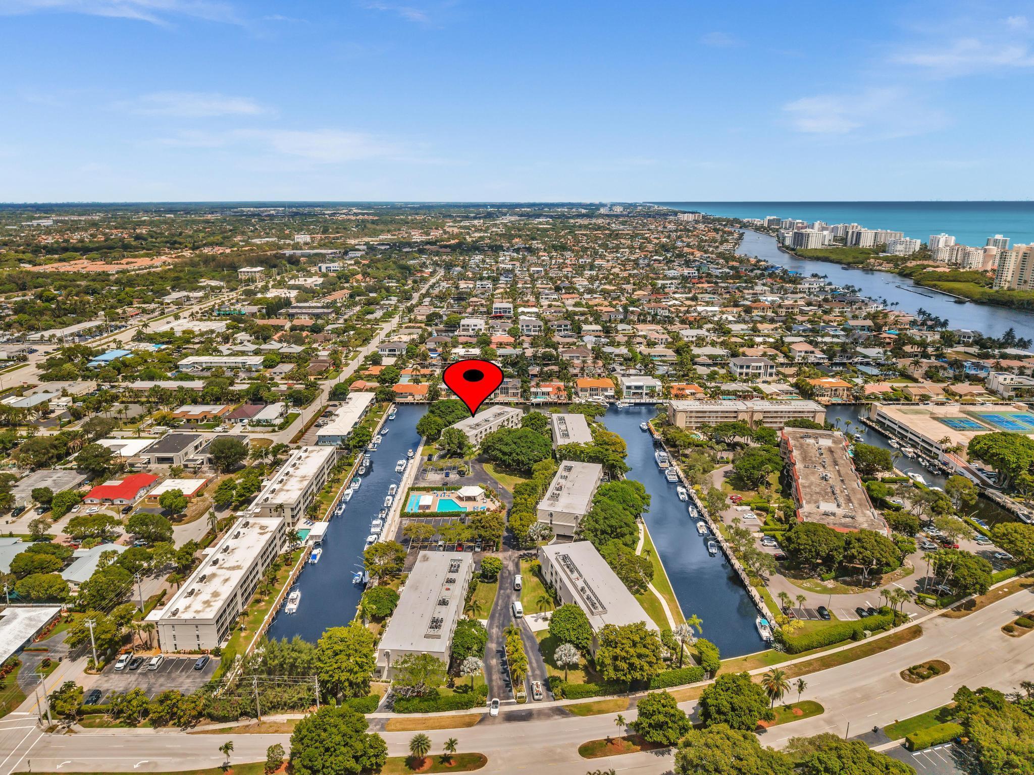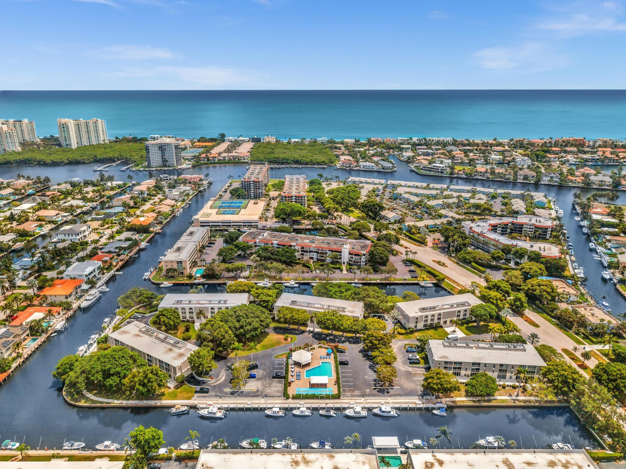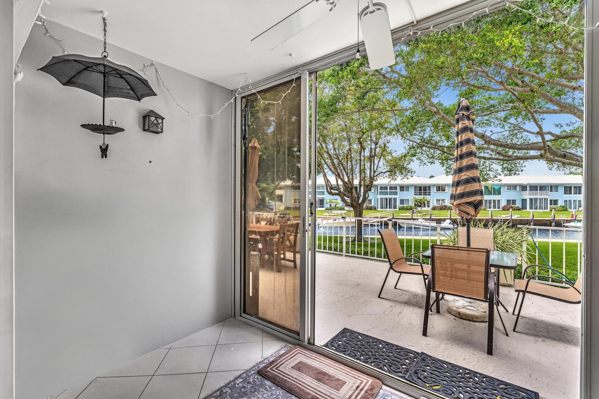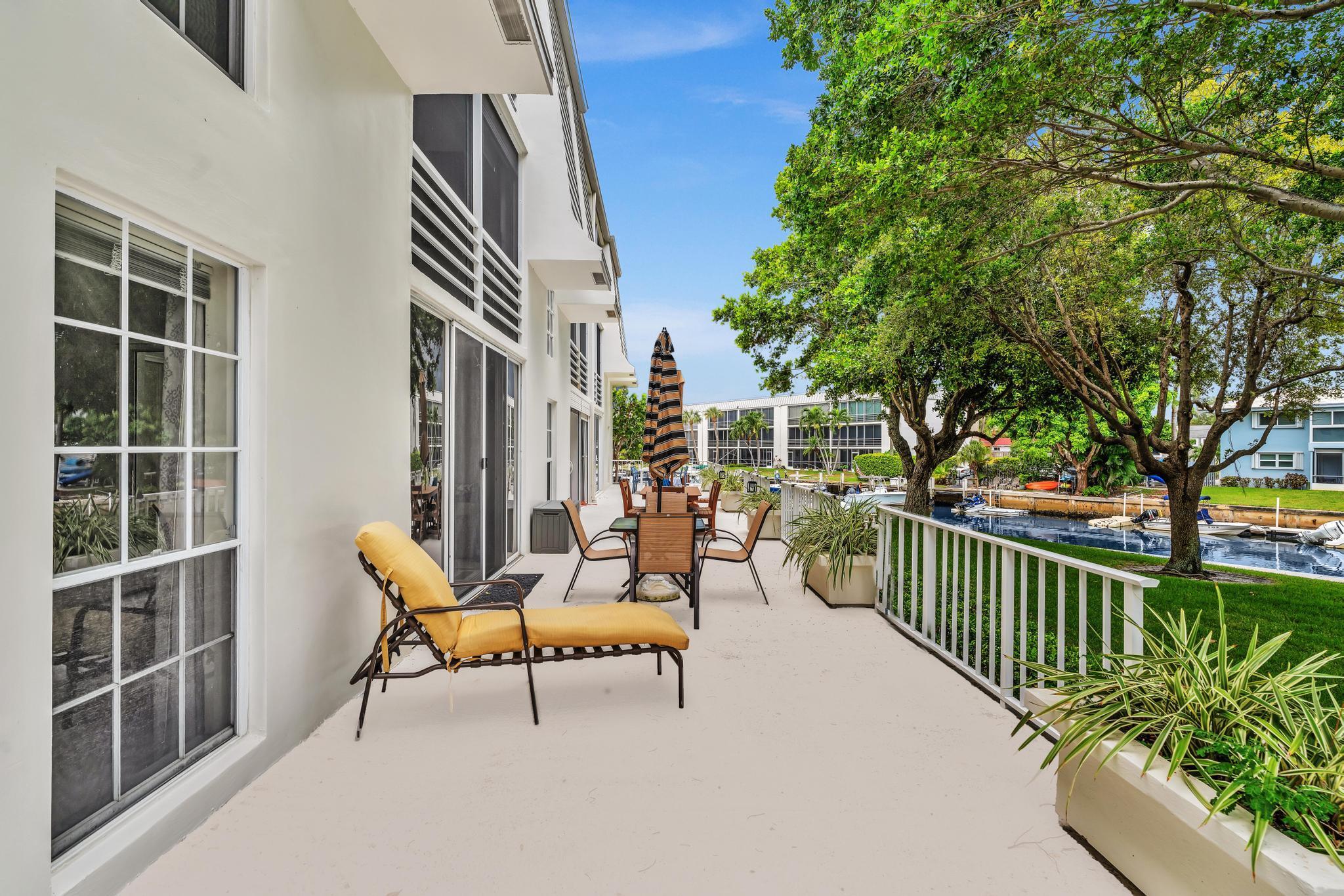 This beautiful East of US-1 unit features a water view with access to the Intracoastal and Ocean, no fixed bridges. Rare first floor unit with exclusive walk out area, with boat dockage available once you get on the list. Up to 25-foot boat. Awesome west view of canal, with mature trees canopy in a very desirable neighborhood to call home. 2025 New A/C unit. French Village sits on seven acres and features a serene walking path were you can watch the boats go past or gaze at luxury homes. Equidistant to Ft Lauderdale and Palm Beach airports. Close to Boca Raton and Delray Beach downtown areas, for the best of both worlds. 1 bedroom and 1.5 baths. Tiled living areas, carpeted bedroom. Extra storage, garage parking with convenient elevator access. Just completely renovated pool.