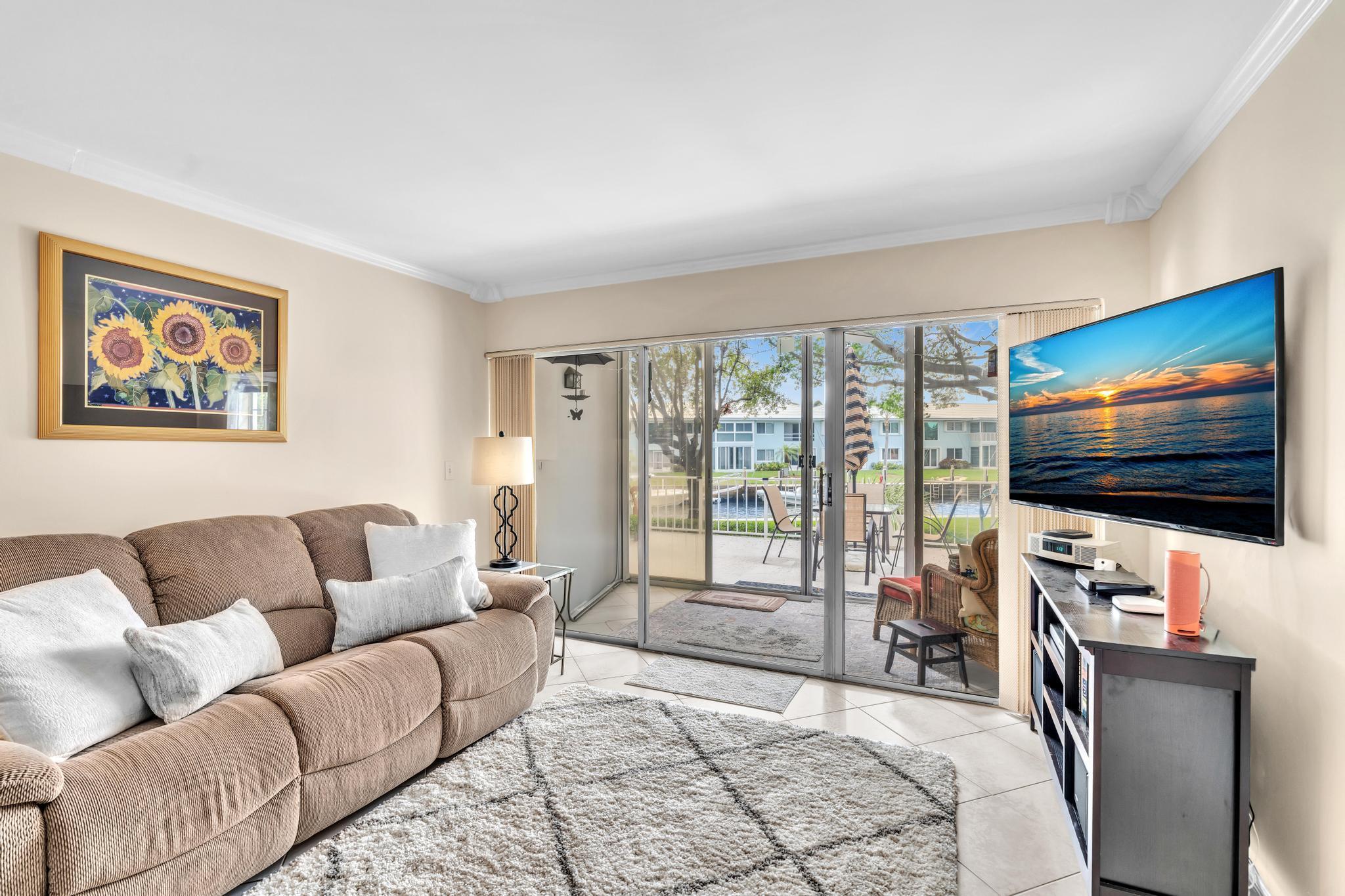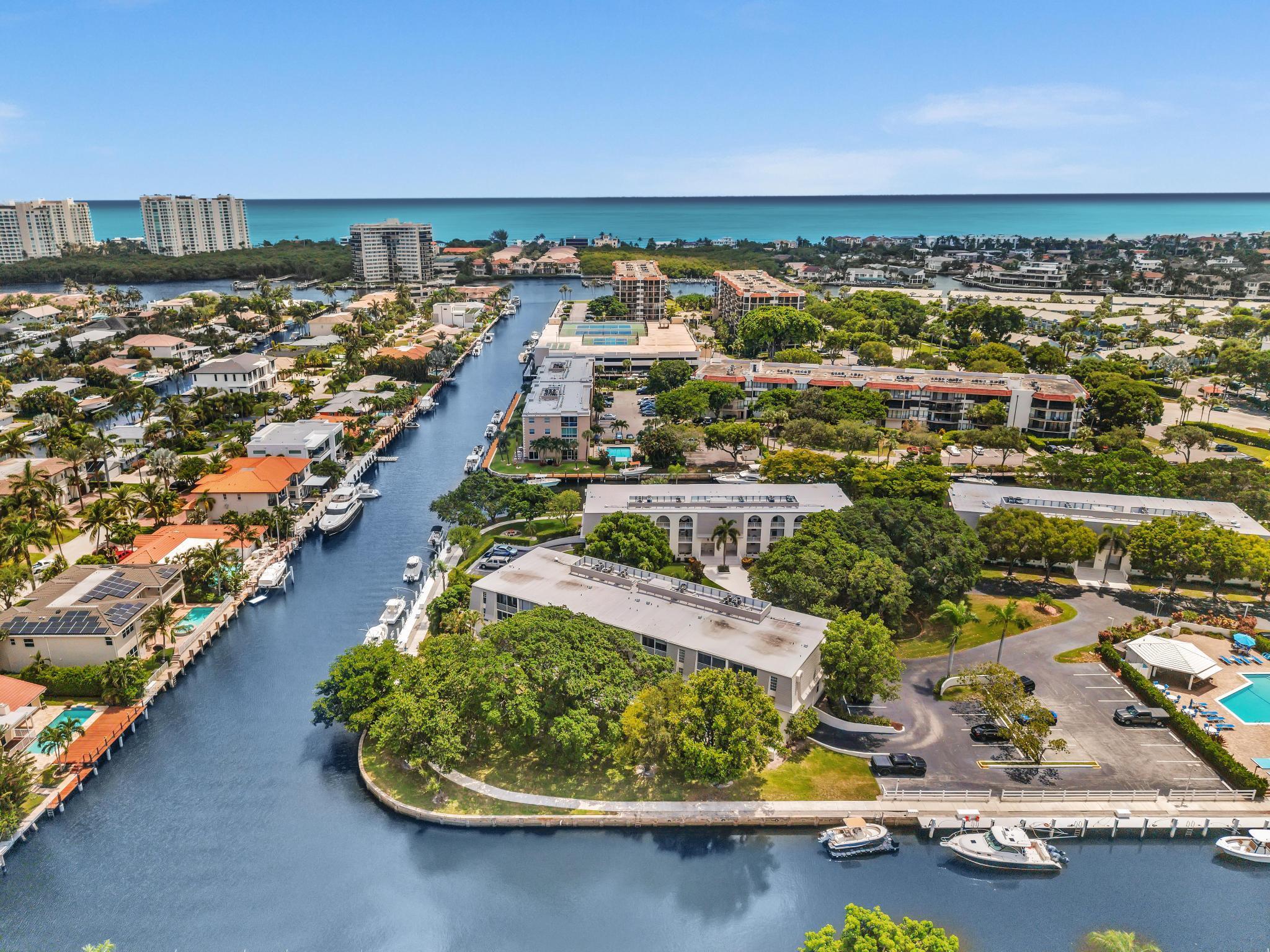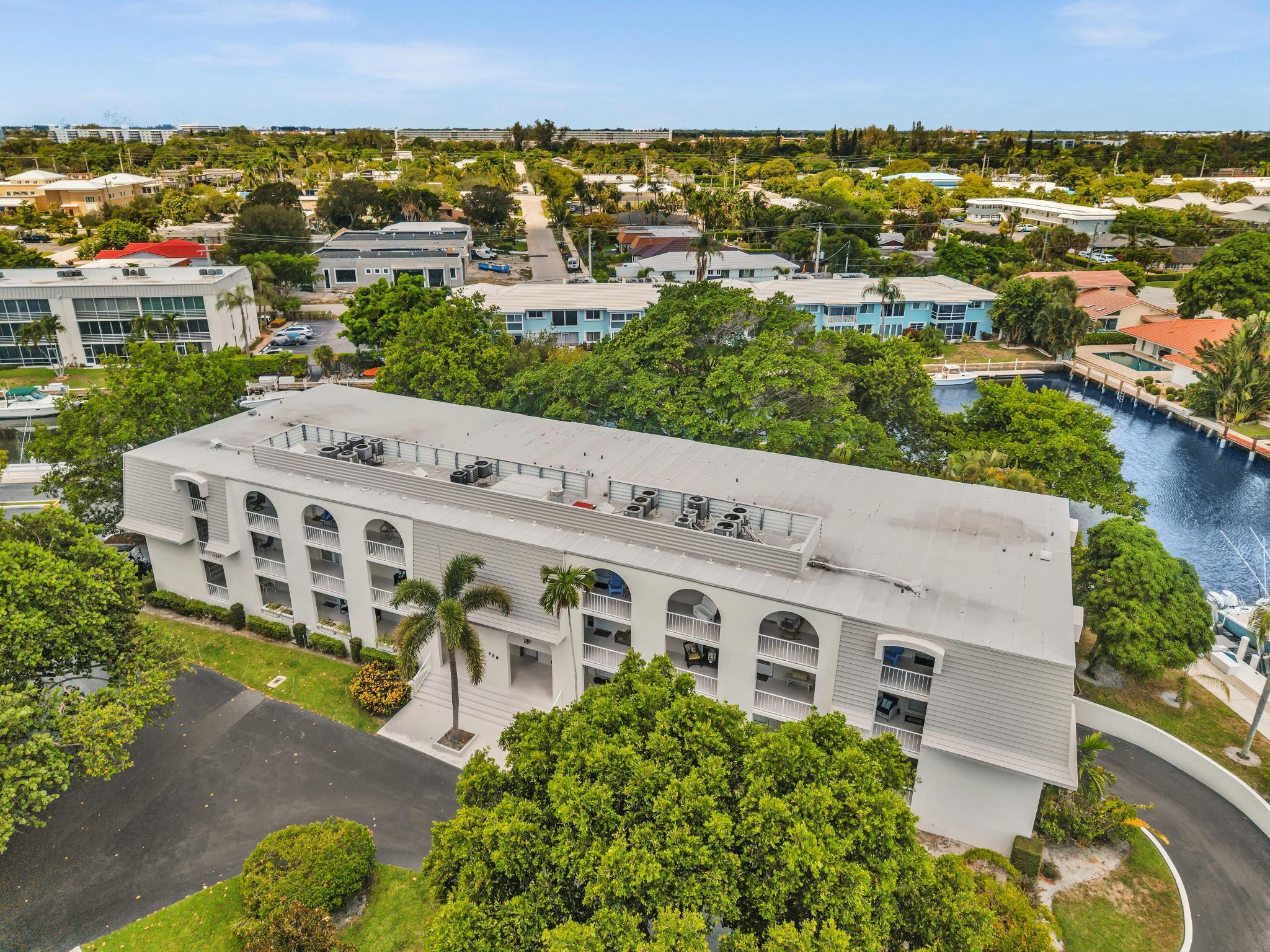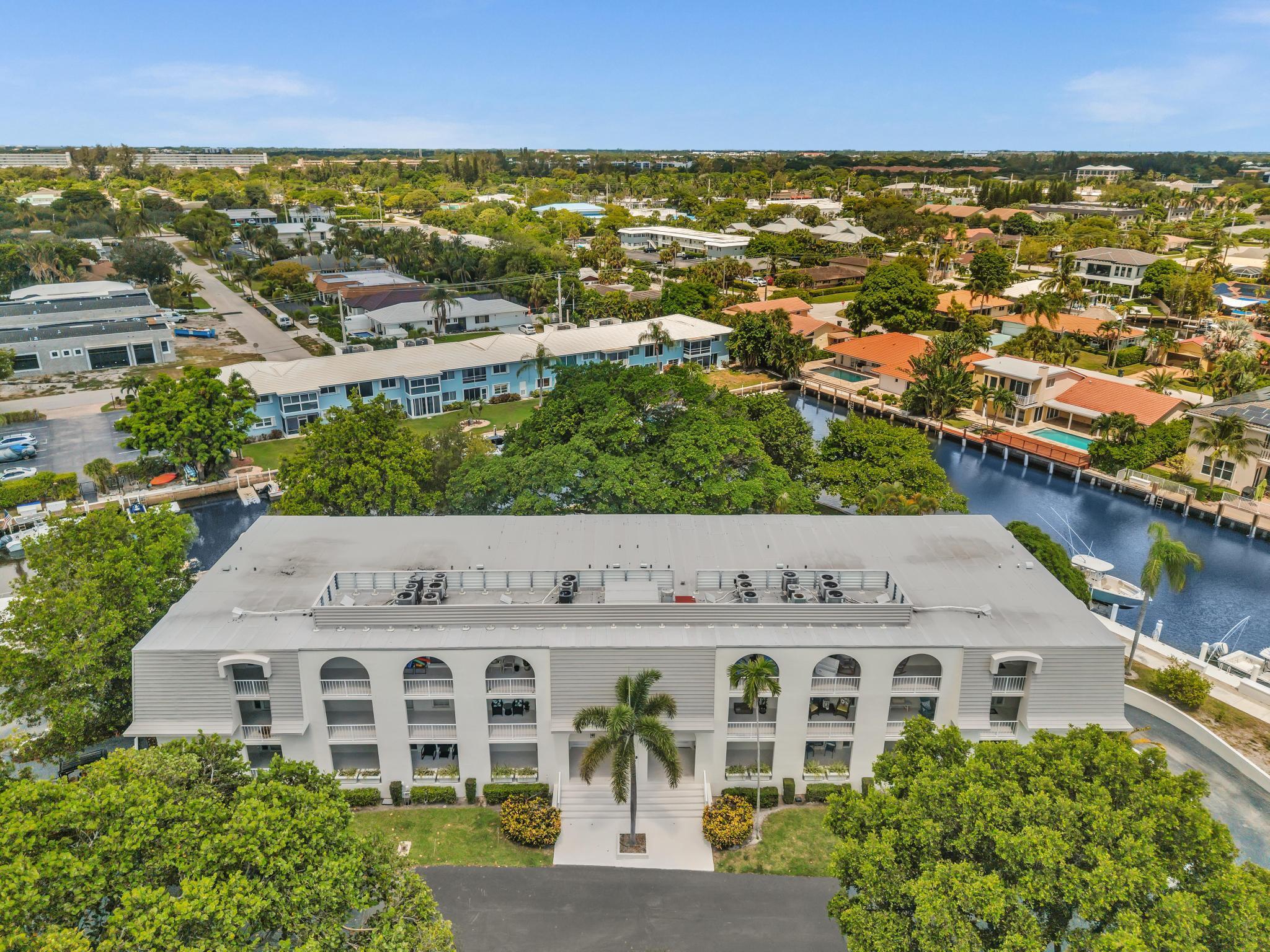 This beautiful East of US-1 unit features a water view with access to the Intracoastal and Ocean, no fixed bridges. Rare first floor unit with exclusive walk out area, with boat dockage available once you get on the list. Up to 25-foot boat. Awesome west view of canal, with mature trees canopy in a very desirable neighborhood to call home. 2025 New A/C unit. French Village sits on seven acres and features a serene walking path were you can watch the boats go past or gaze at luxury homes. Equidistant to Ft Lauderdale and Palm Beach airports. Close to Boca Raton and Delray Beach downtown areas, for the best of both worlds. 1 bedroom and 1.5 baths. Tiled living areas, carpeted bedroom. Extra storage, garage parking with convenient elevator access. Just completely renovated pool.