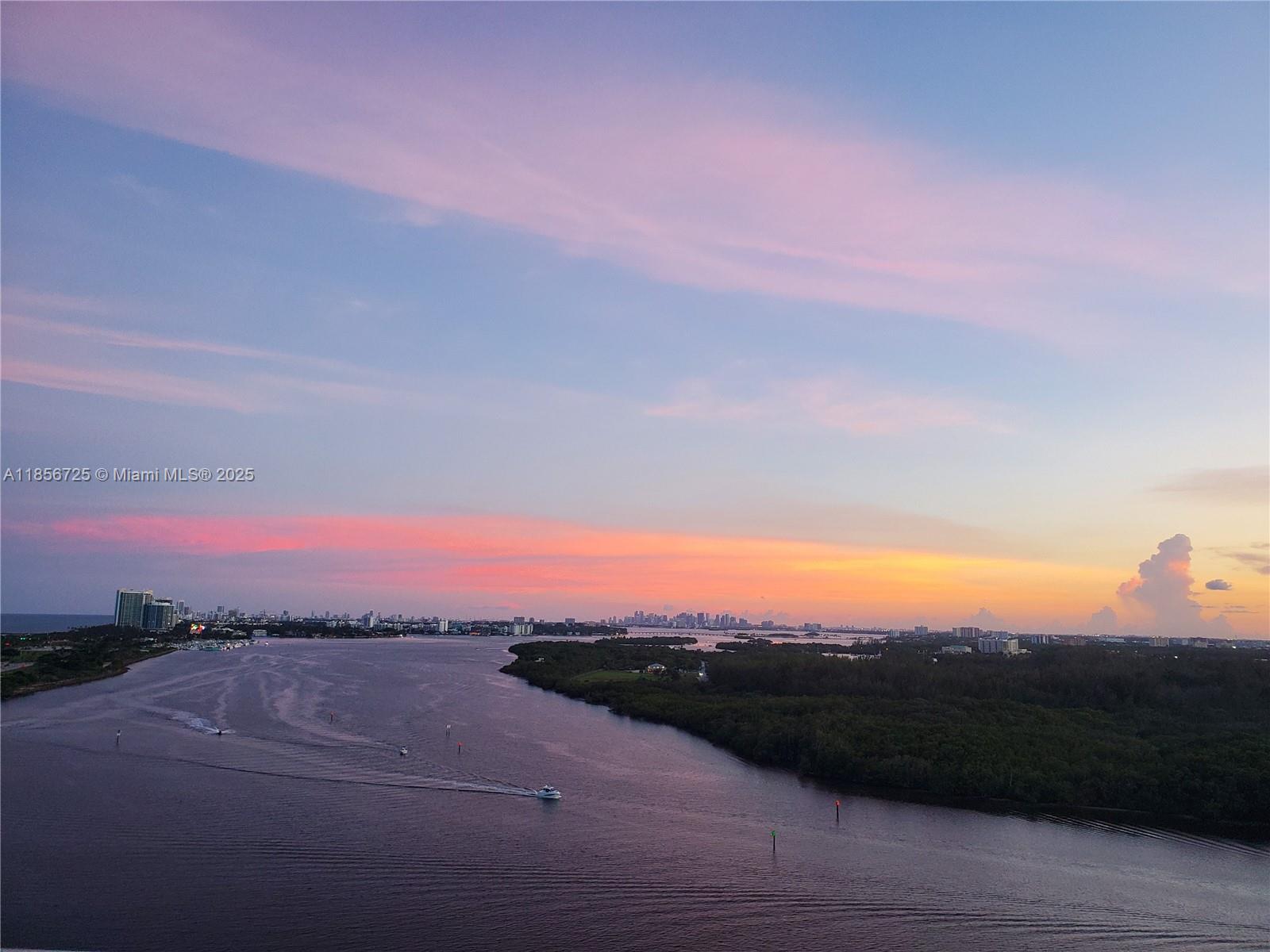 Exceptional water views of the Intracoastal, ocean, Oleta River State Park, and city skyline. Enjoy both sunrise and sunset from your living room and bedroom. Just across the street from the beach, with a marina right in front of the building. Conveniently located near Fort Lauderdale and Miami International airports, golf courses, banks, restaurants, and major highways. Covered assigned parking, plus guest and valet parking. A large storage room and common laundry room are on the same floor. Building amenities include a gym, sauna, hairstyling salon, library, billiard room, fantastic heated pool, two tennis courts, and a bike room. HOA includes fiber internet, cable TV, hot water and pest control. Spa salon at next building. Guard-gated 24/7 with front desk attendants and security cameras